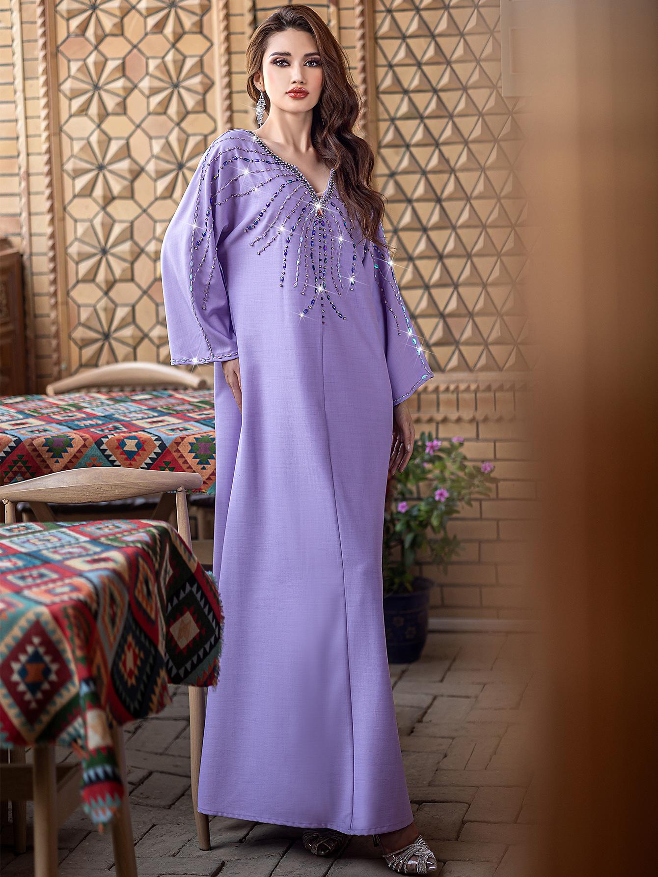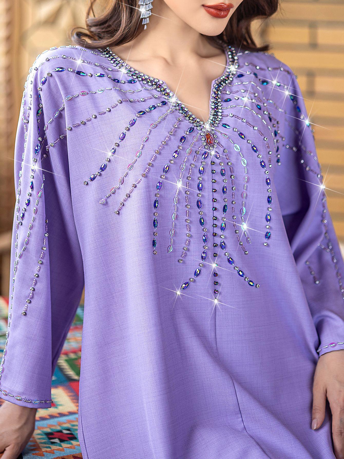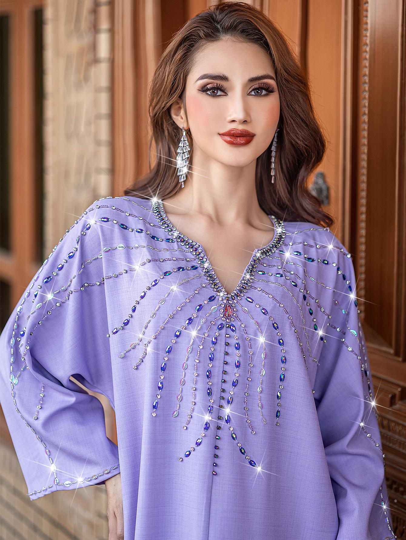 BA5149 Nuevo Vestido Lila Púrpura de Alta Resistencia Cosido a Mano con Pedrería