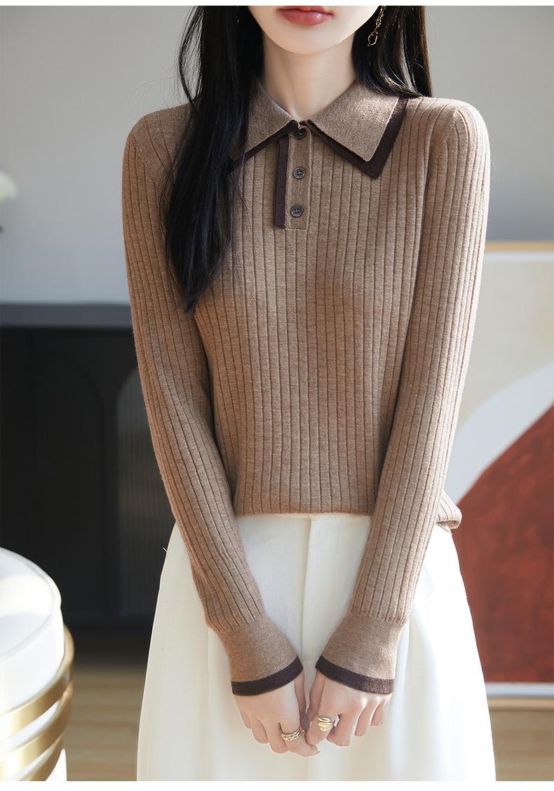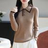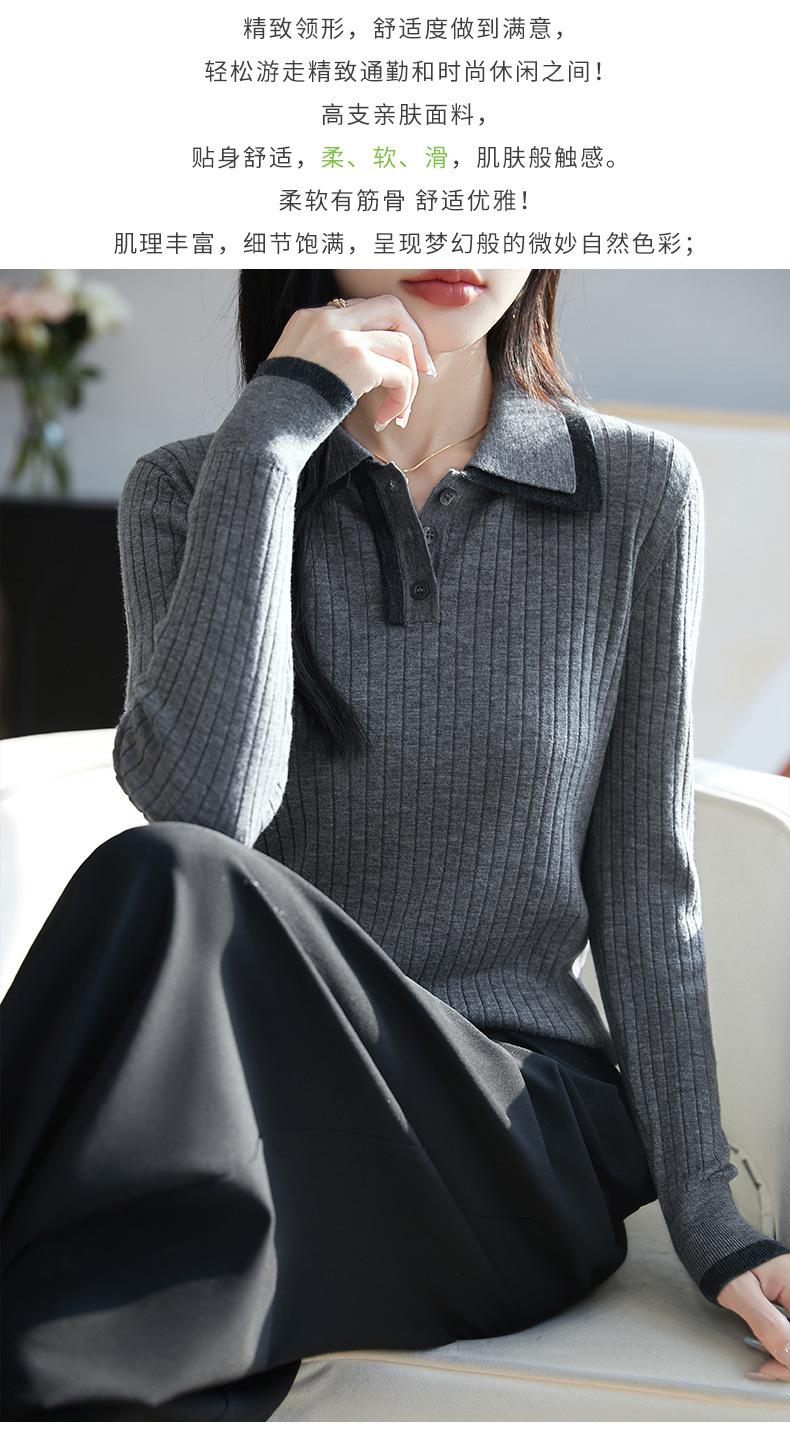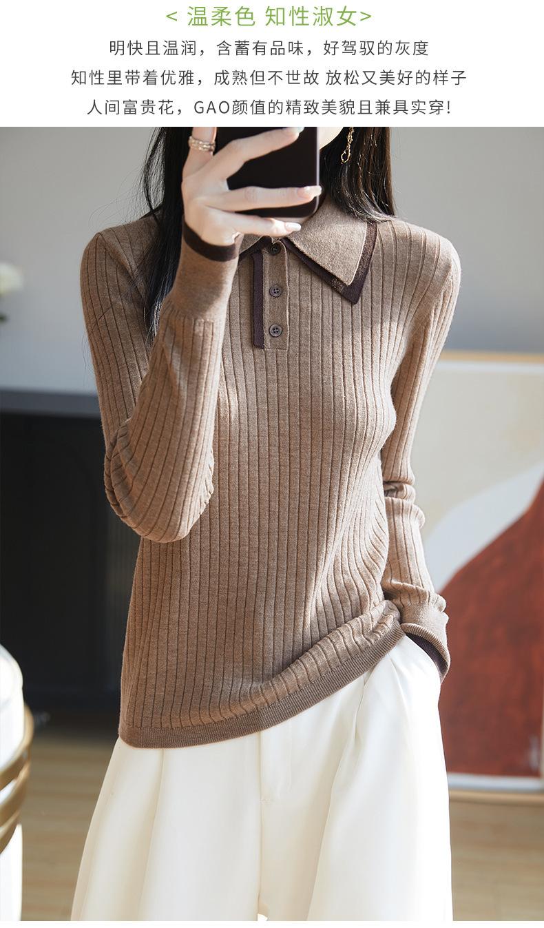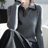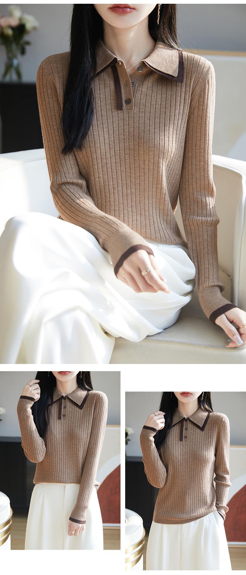 2025 Primavera y Otoño Nuevo Suéter de Estambre con Cuello Polo para Mujer Solapa Ajustado Suéter Tejido Camisa Base Top Interior