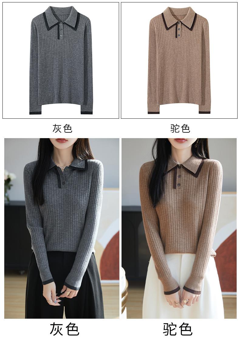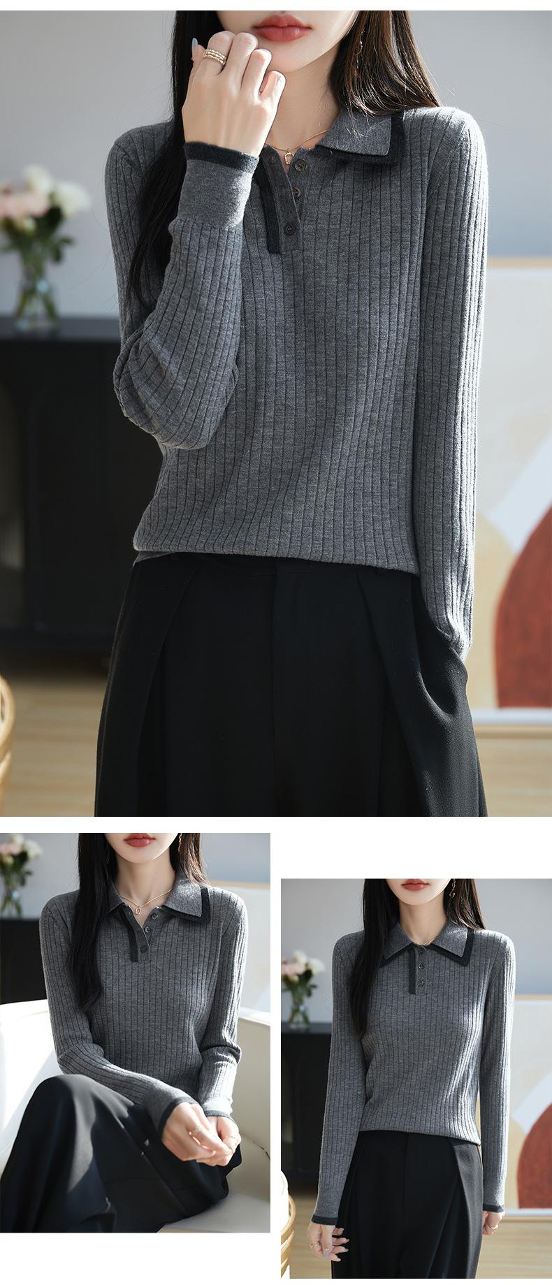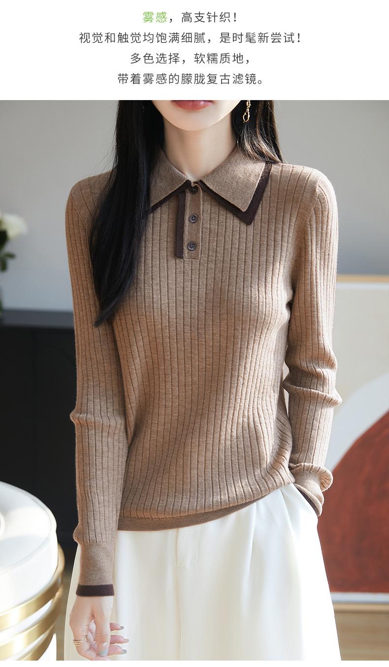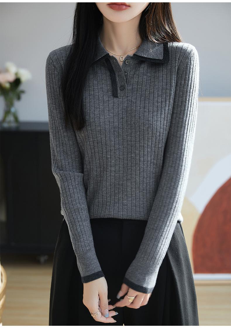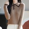 2025 Primavera y Otoño Nuevo Suéter de Estambre con Cuello Polo para Mujer Solapa Ajustado Suéter Tejido Camisa Base Top Interior