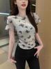 Playera de Manga Corta con Estampado de Mariposa para Mujer 2025 Verano Nuevo Ajuste Slim Americano Retro Sexy Top Corto Ins