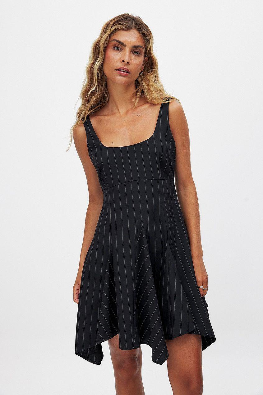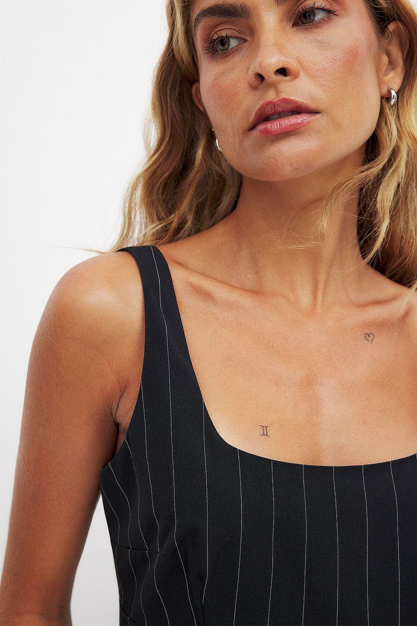 Europeo y Americano 2025 Nuevo Vestido de Tirantes Rayado Ajustado Sexy de Moda con Cuello U y sin Mangas para Mujer