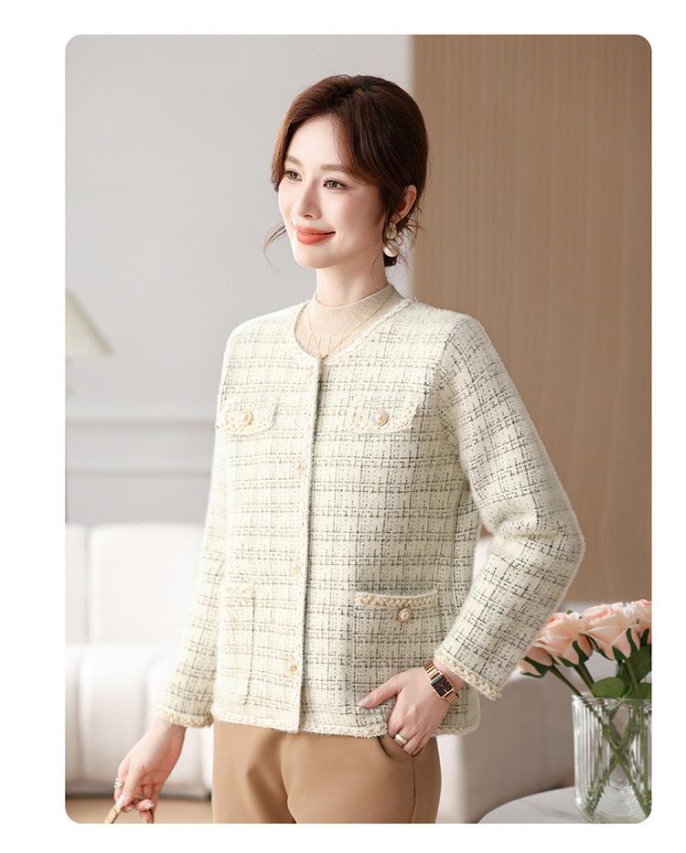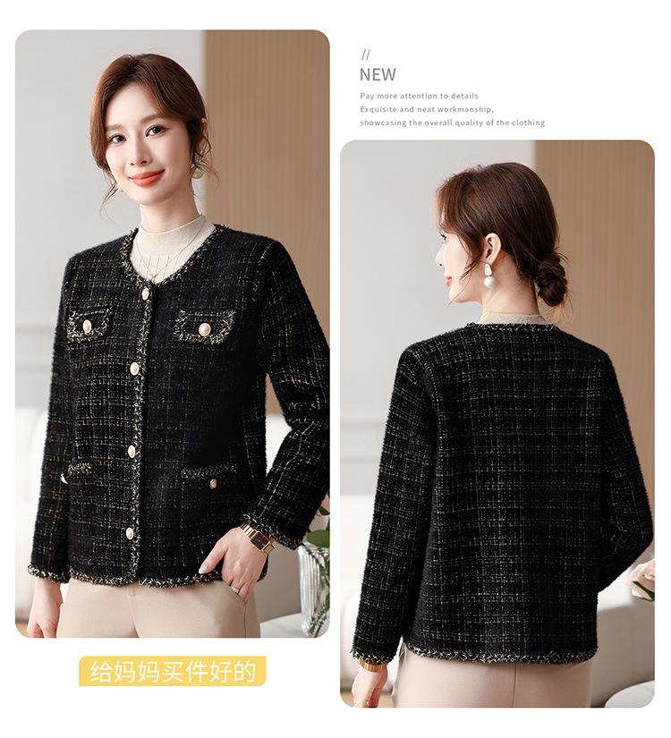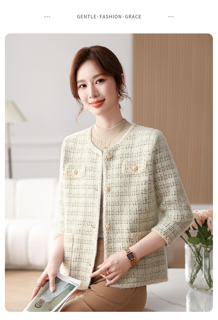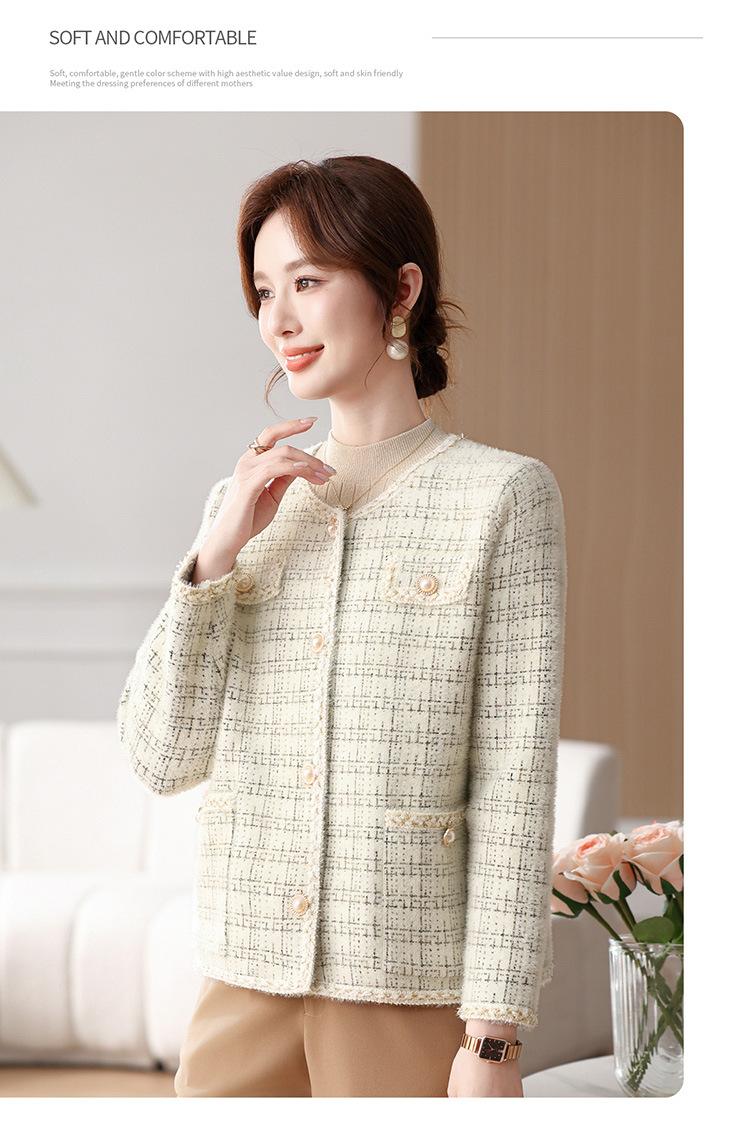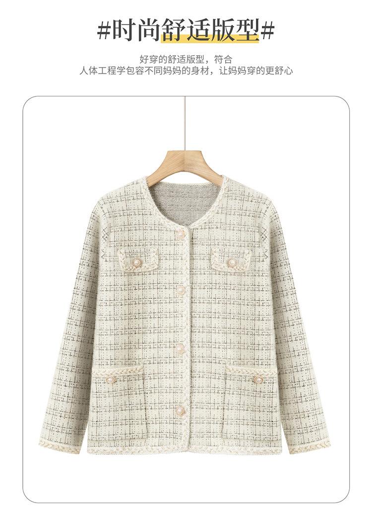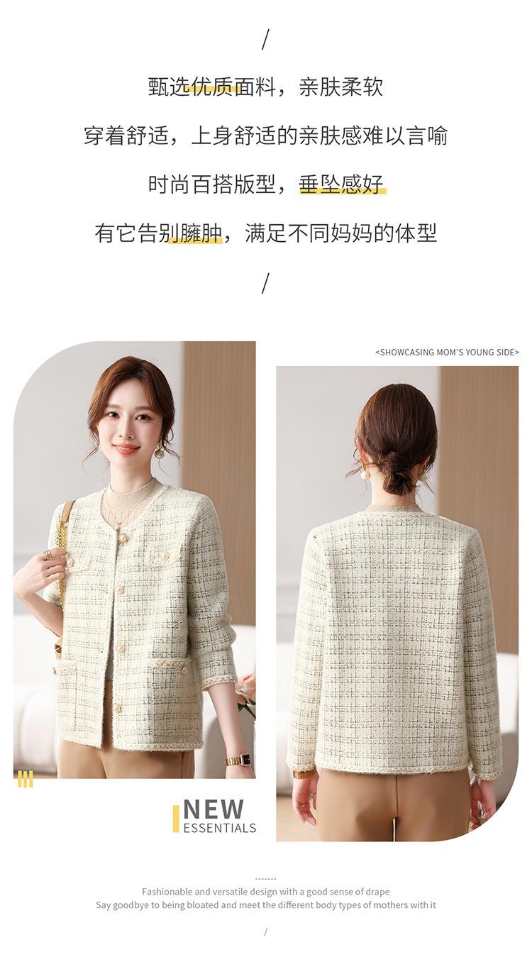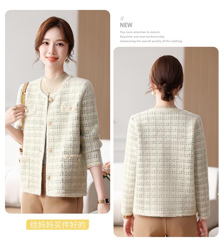 Cárdigan de Primavera para Madre Joven 2025 Nuevo Tweed Estilo Chanel Corto Elegante Abrigo para Mujeres de Mediana Edad y Mayores