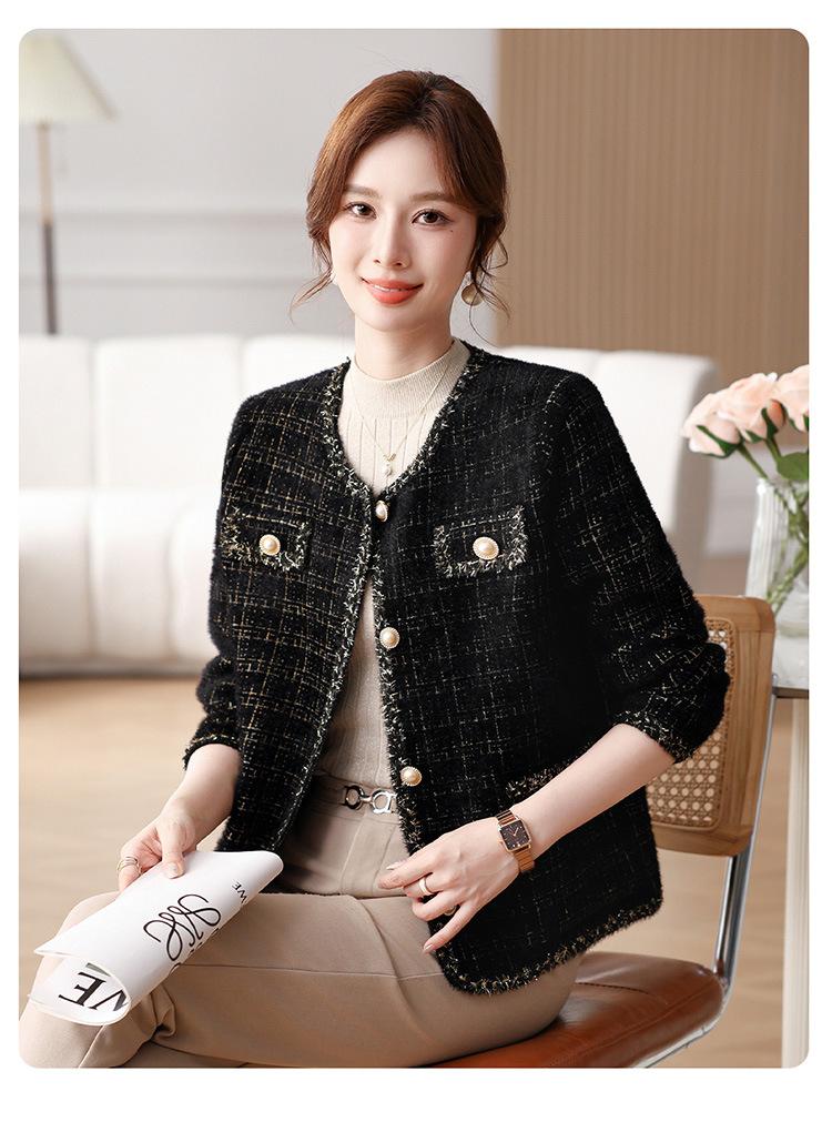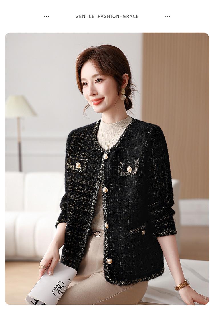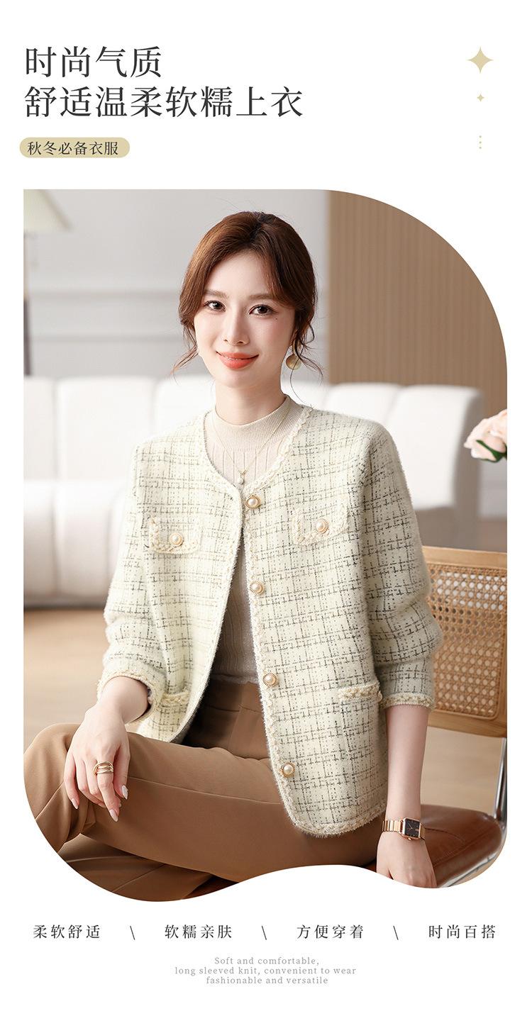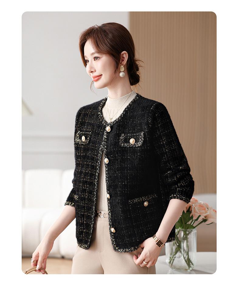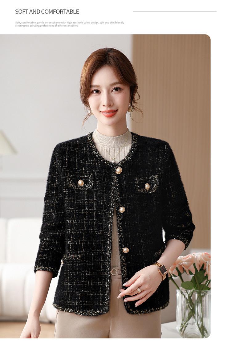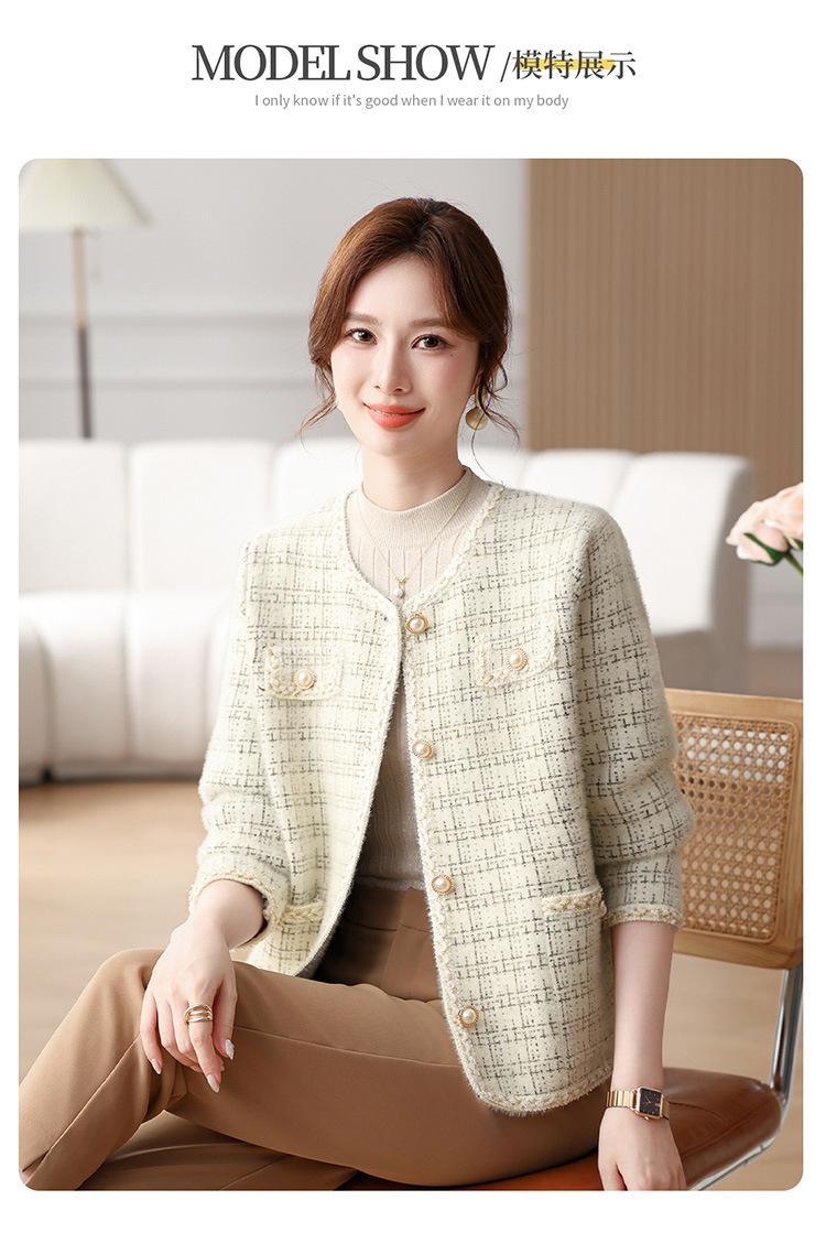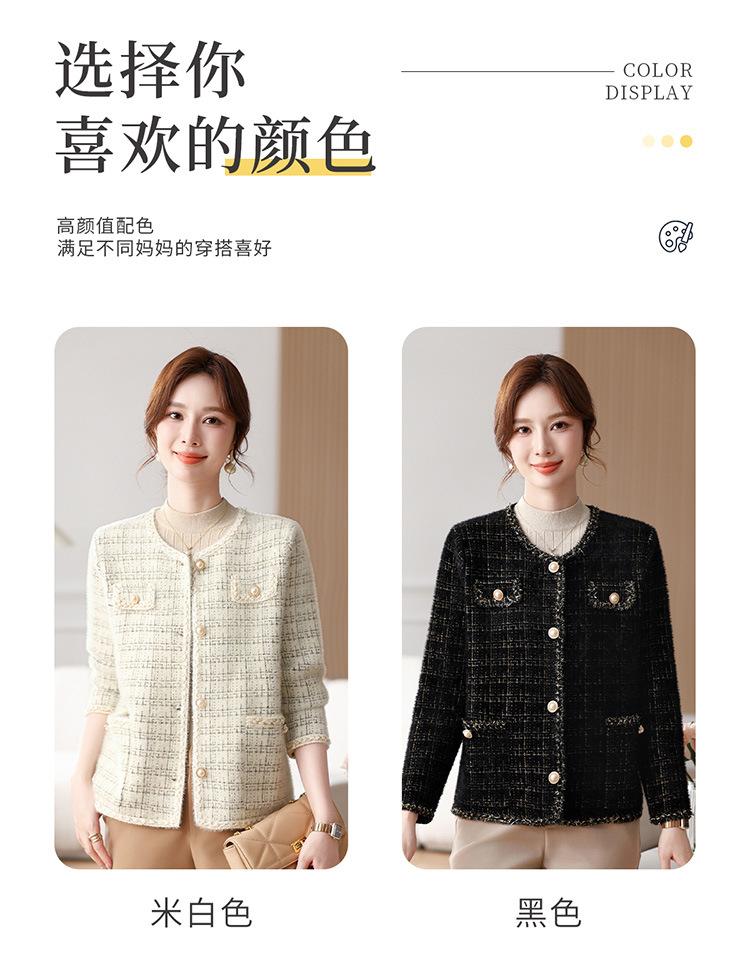 Cárdigan de Primavera para Madre Joven 2025 Nuevo Tweed Estilo Chanel Corto Elegante Abrigo para Mujeres de Mediana Edad y Mayores