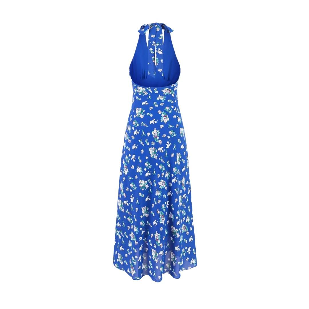 Vestido Largo Floral Sexy 2025 Verano Espalda Descubierta Estampado Nuevo Vestido Ajustado Cintura Alta Vestido Halter Chica Hot