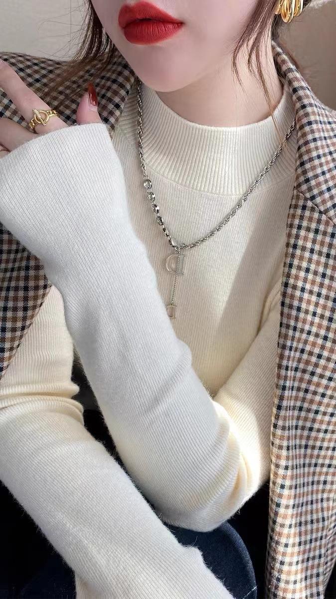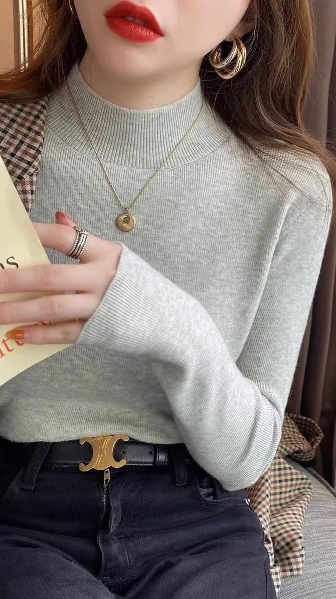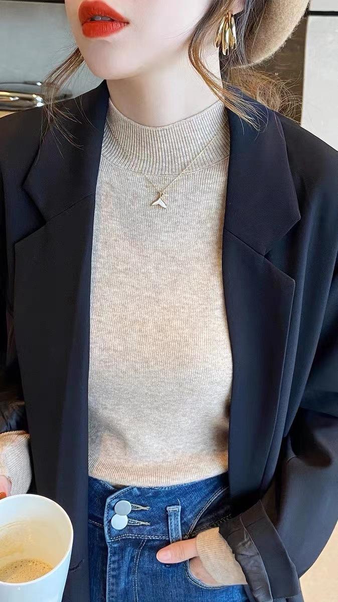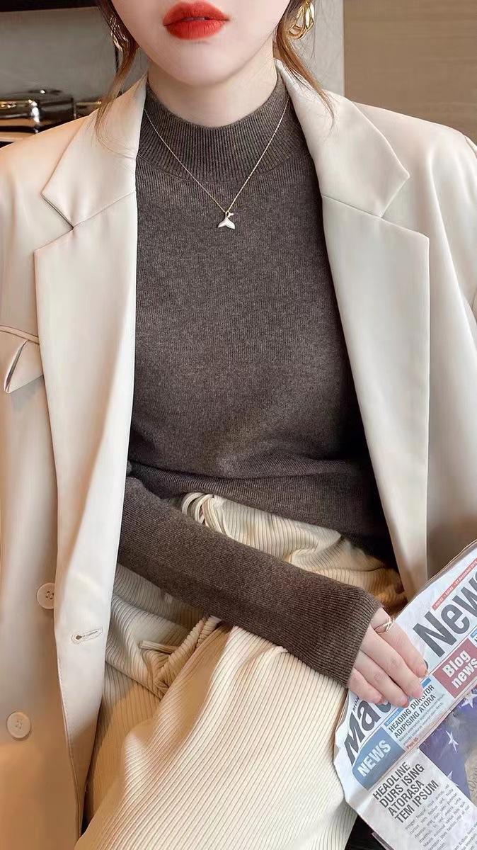 Suéter de cuello alto para mujer 2024 primavera y otoño nuevo estilo extranjero que reduce la edad jersey de manga larga ajustado para llevar debajo top