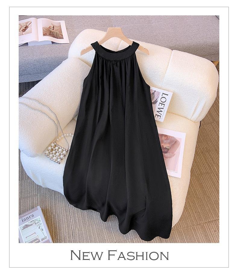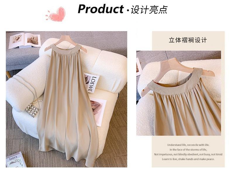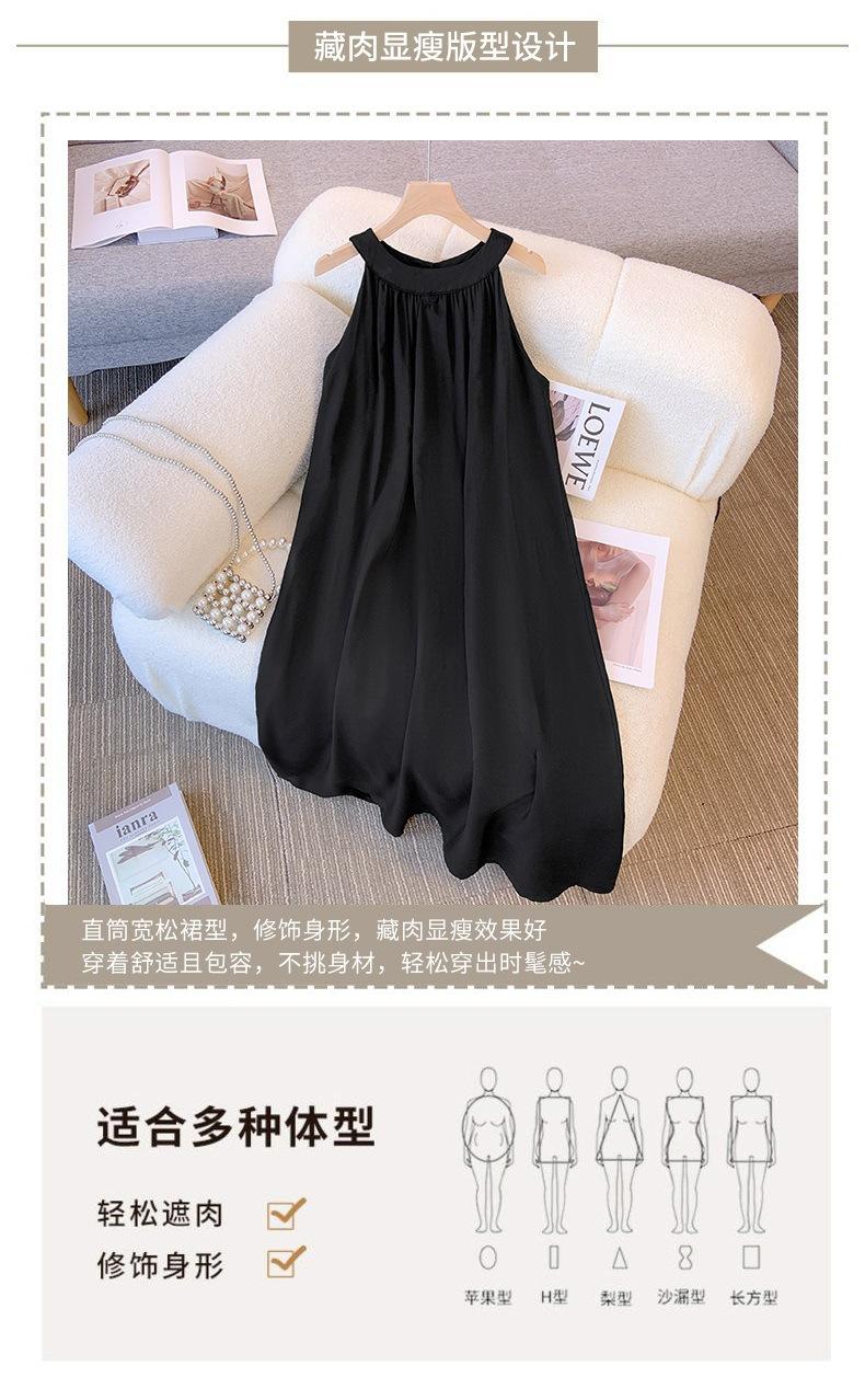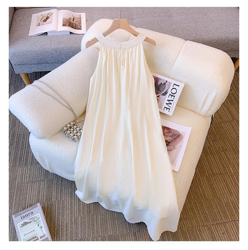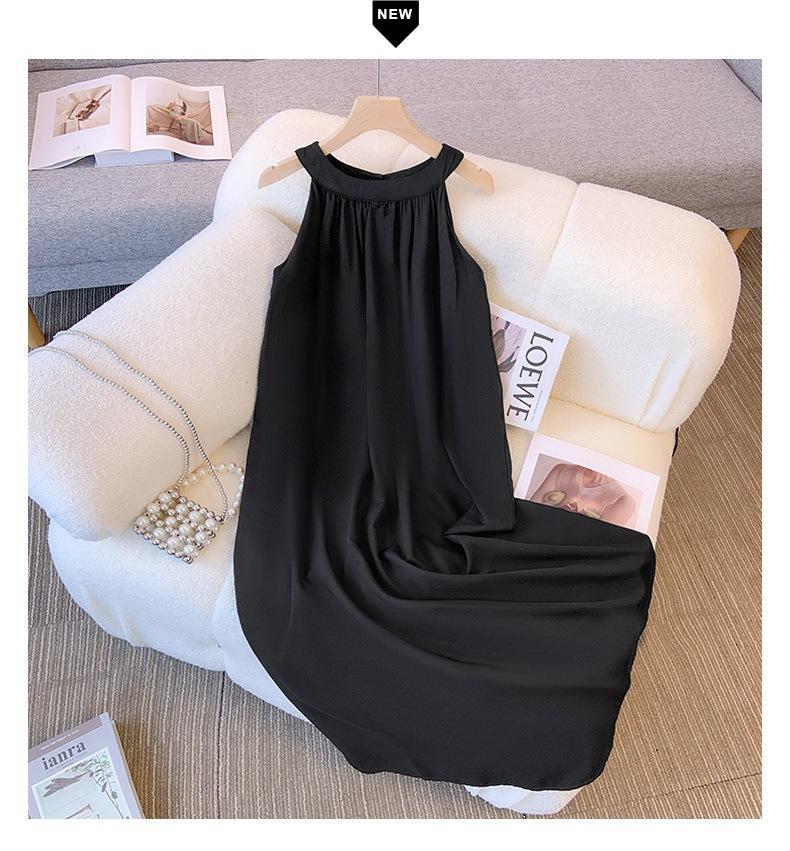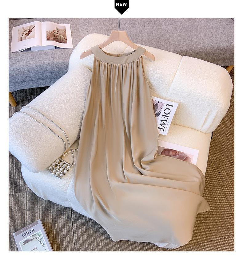 Vestido sin mangas con cuello halter para mujer, pequeño, suave, elegante, holgado, adelgazante, para vacaciones en la playa, vestido de hada, línea A, vestido largo