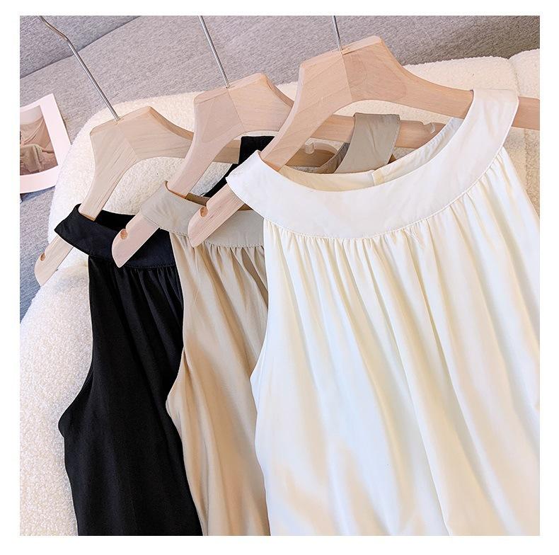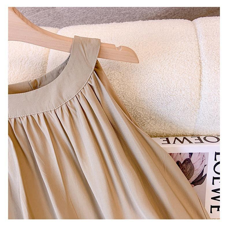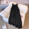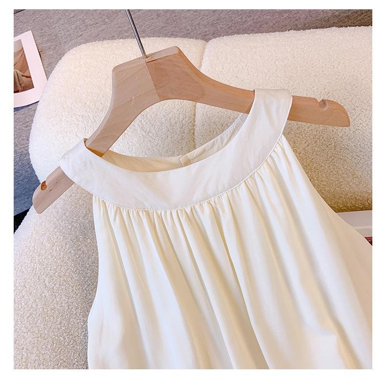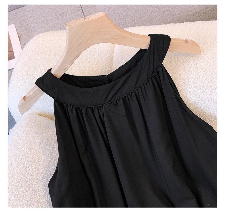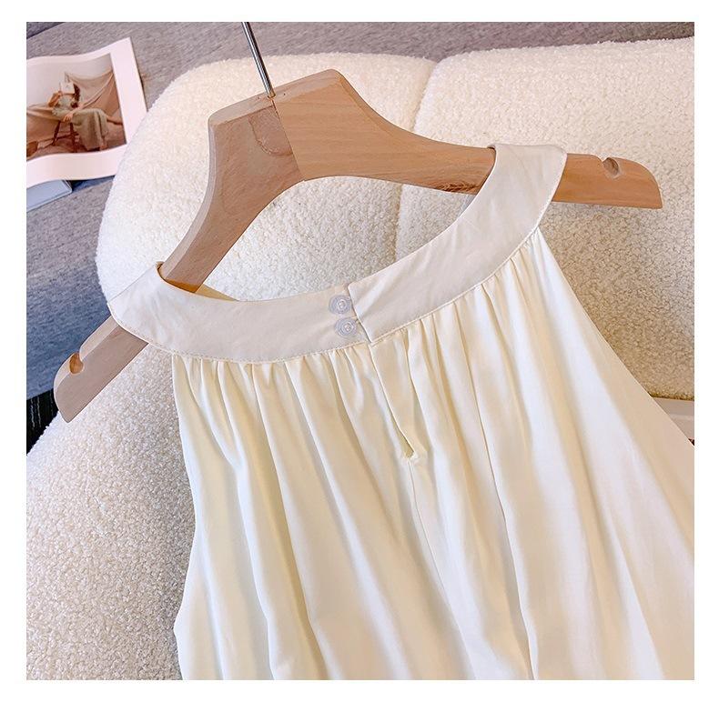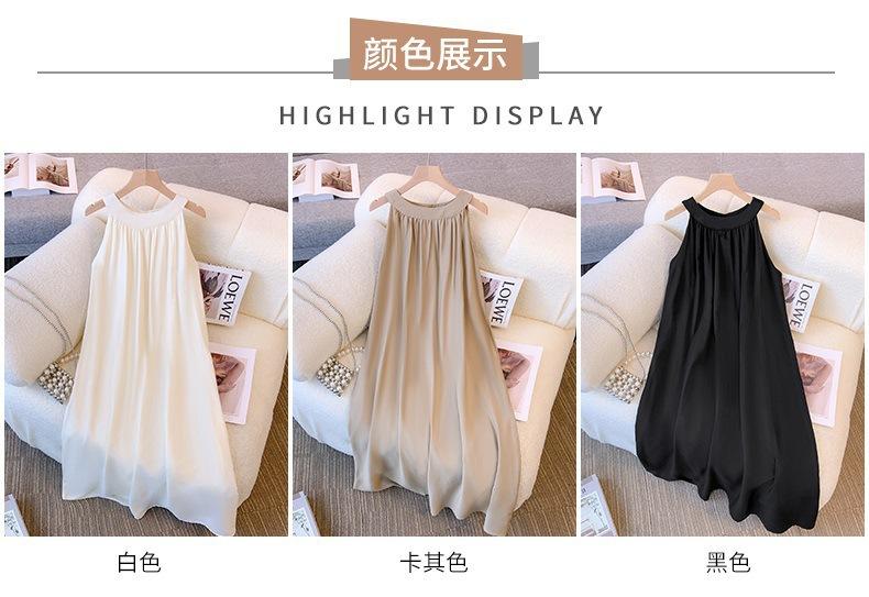 Vestido sin mangas con cuello halter para mujer, pequeño, suave, elegante, holgado, adelgazante, para vacaciones en la playa, vestido de hada, línea A, vestido largo