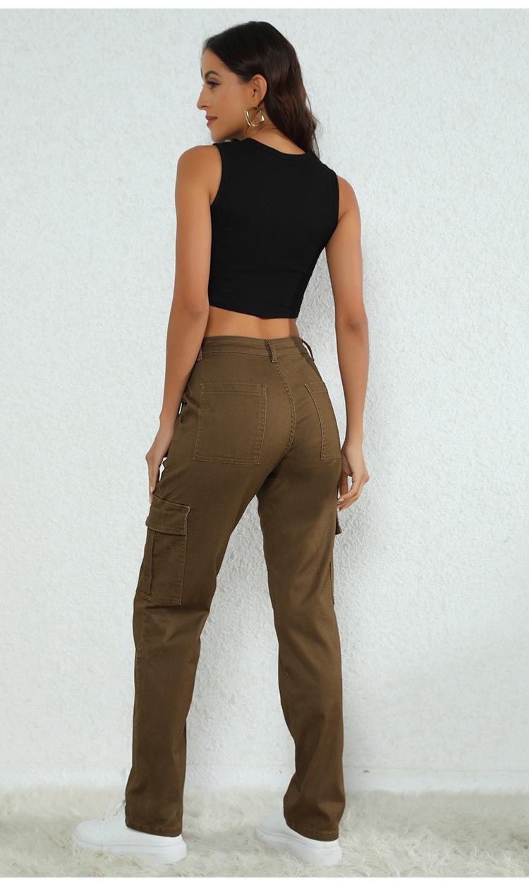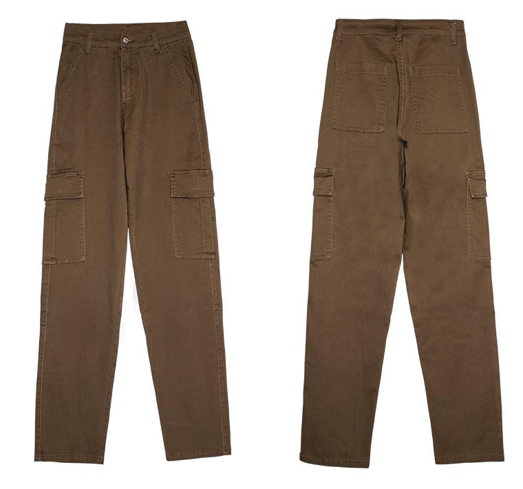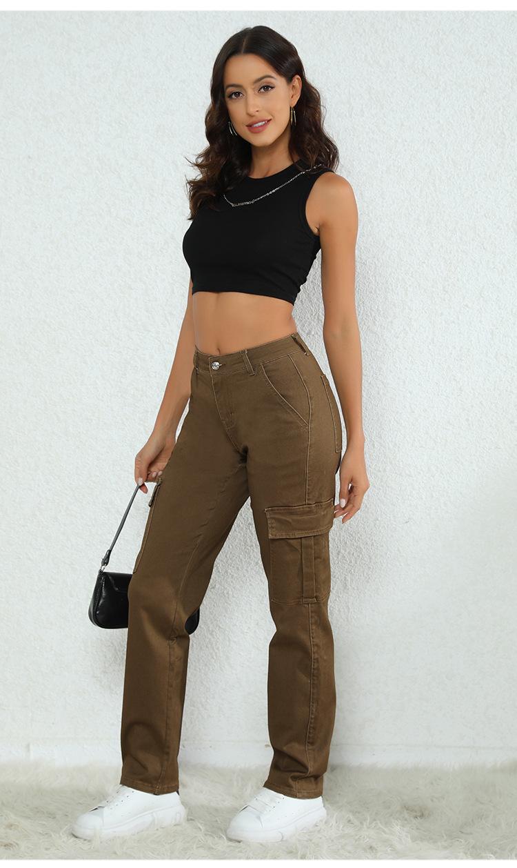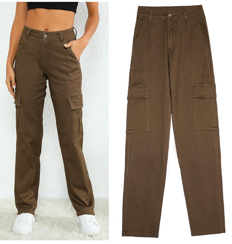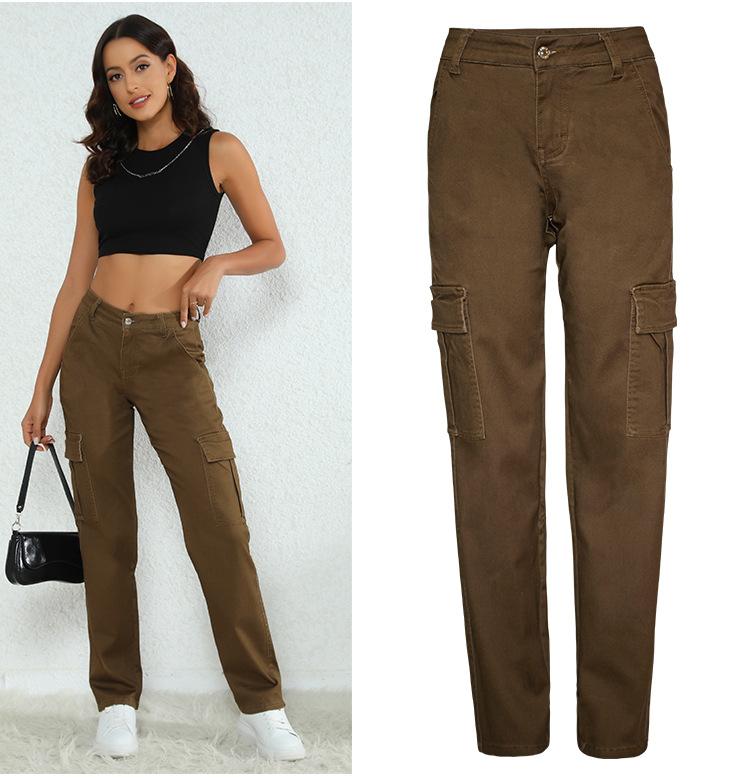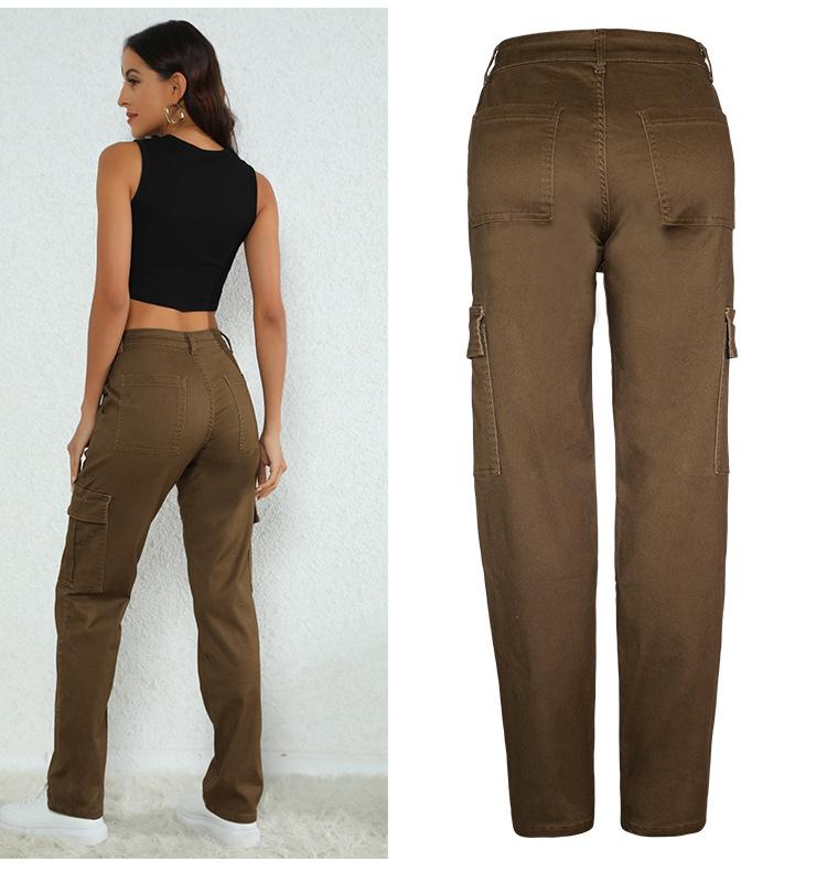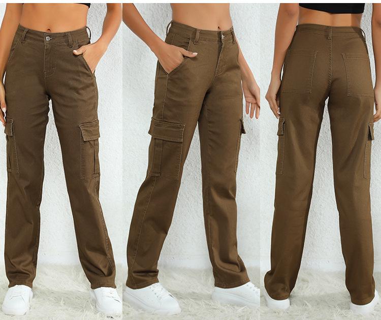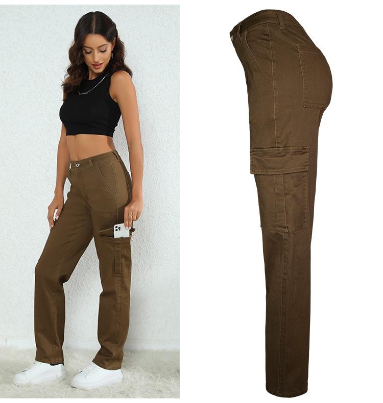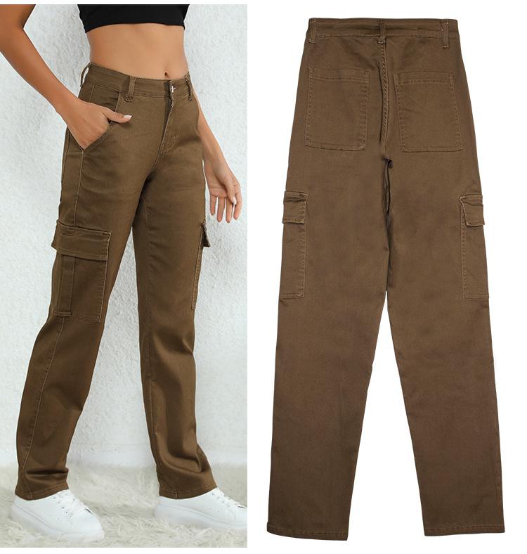 Jeans de Cintura Alta Europeos y Americanos para Mujer, Pantalones Rectos de Primavera y Otoño, Jeans de Trabajo Holgados con Bolsillos Grandes