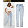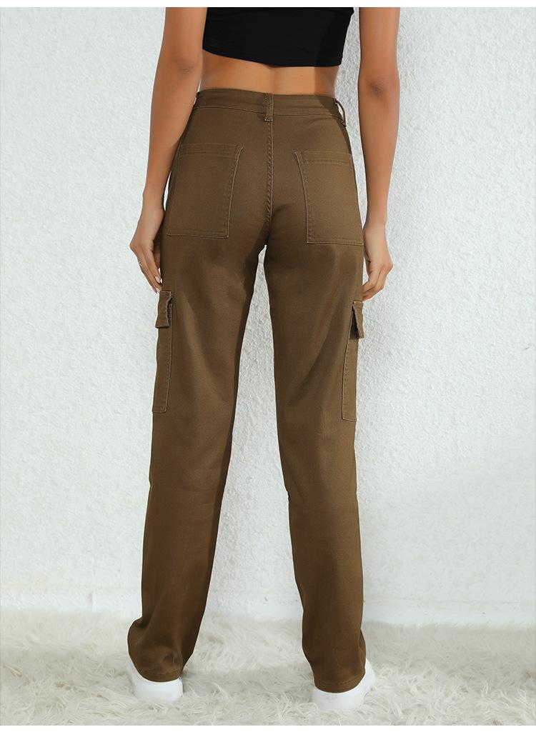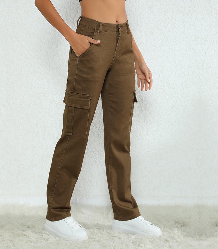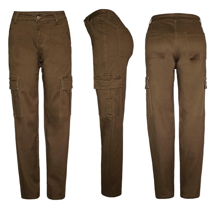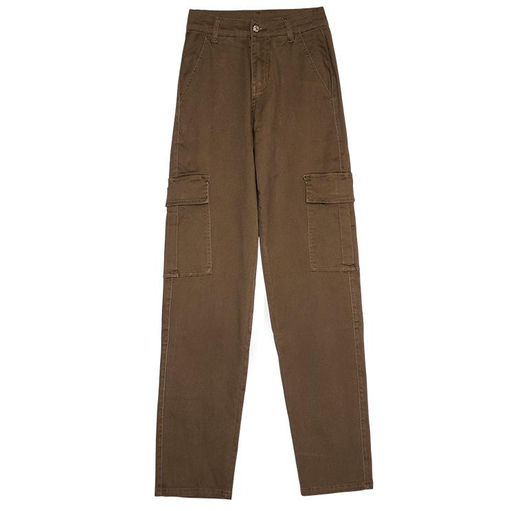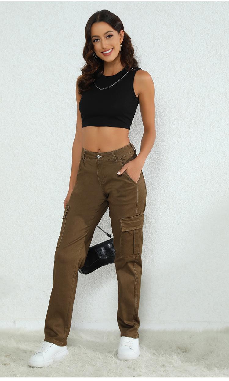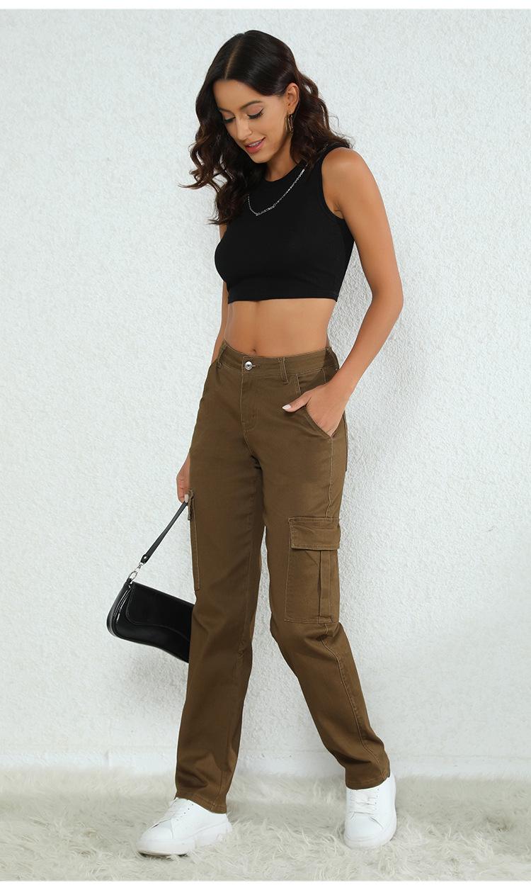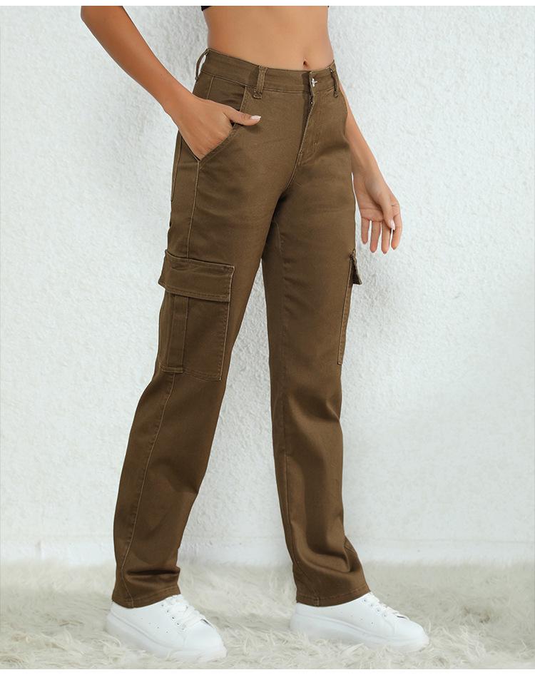 Jeans de Cintura Alta Europeos y Americanos para Mujer, Pantalones Rectos de Primavera y Otoño, Jeans de Trabajo Holgados con Bolsillos Grandes