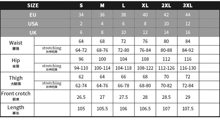 S=european code 34, foreign xs, american code 2, M=european code 36, foreign s, american code 4, L=european co...