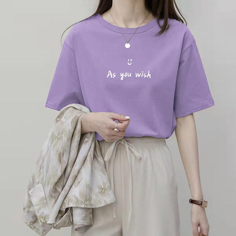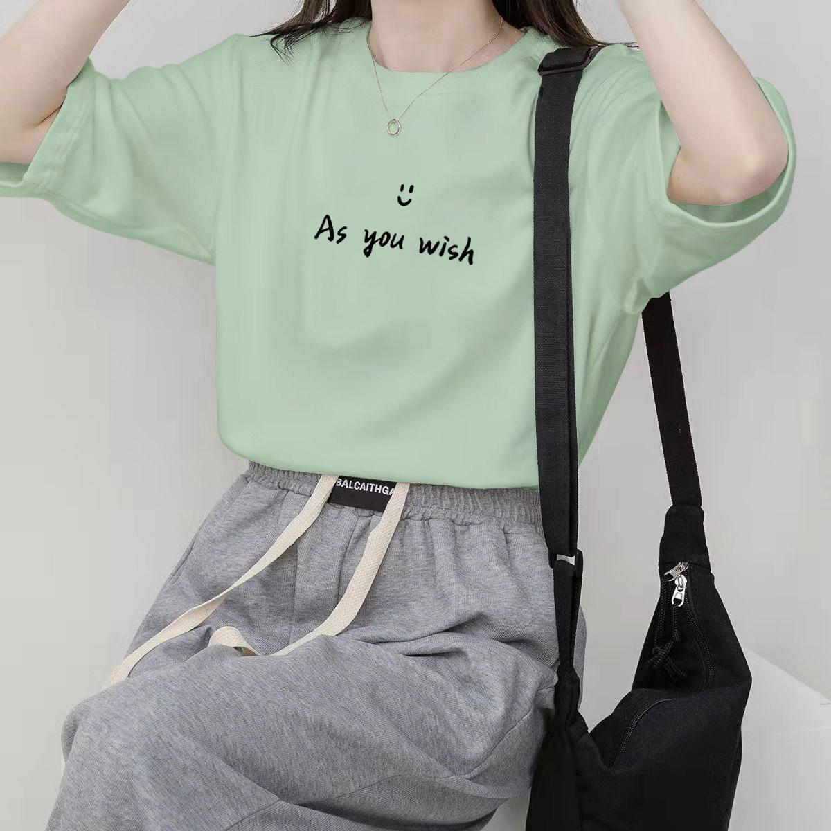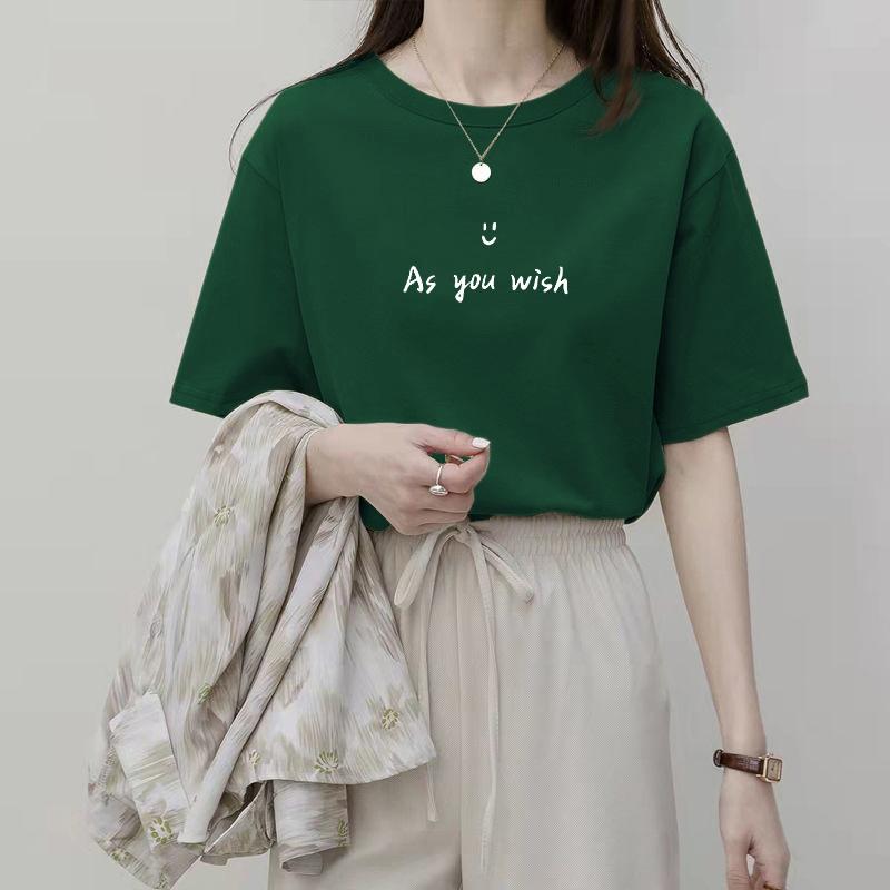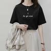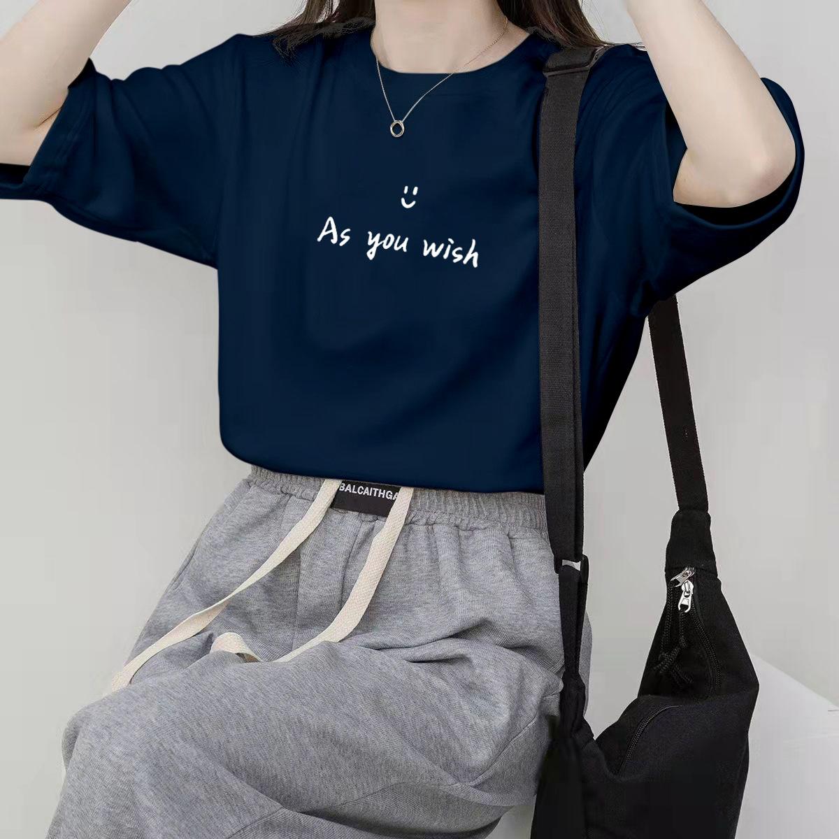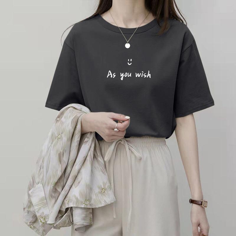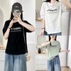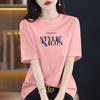 Camiseta de Verano de Algodón 100% de Manga Corta 2025 Nueva Talla Grande Cuello Redondo Holgada Moderna Letra Casual Top Hombro Derecho