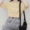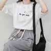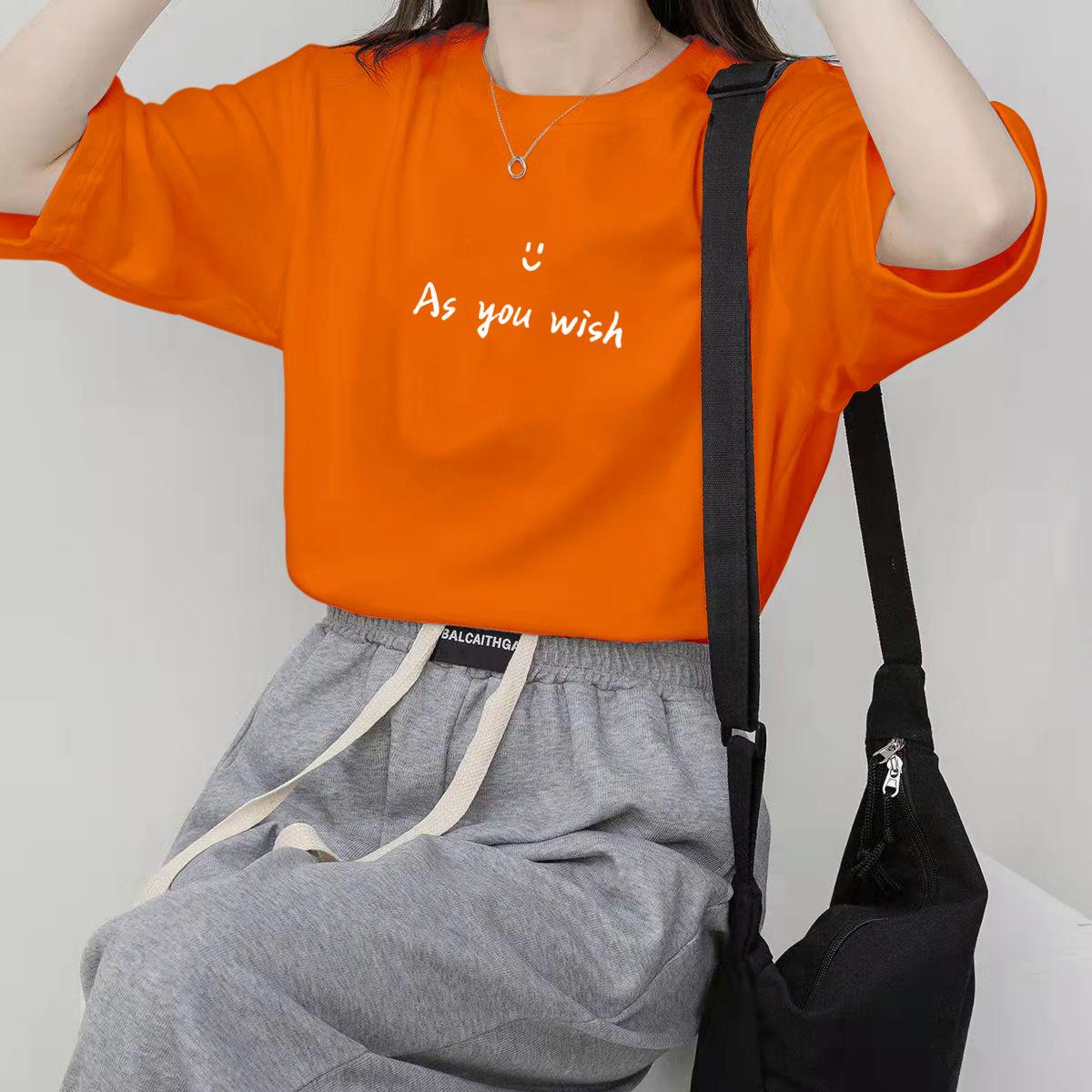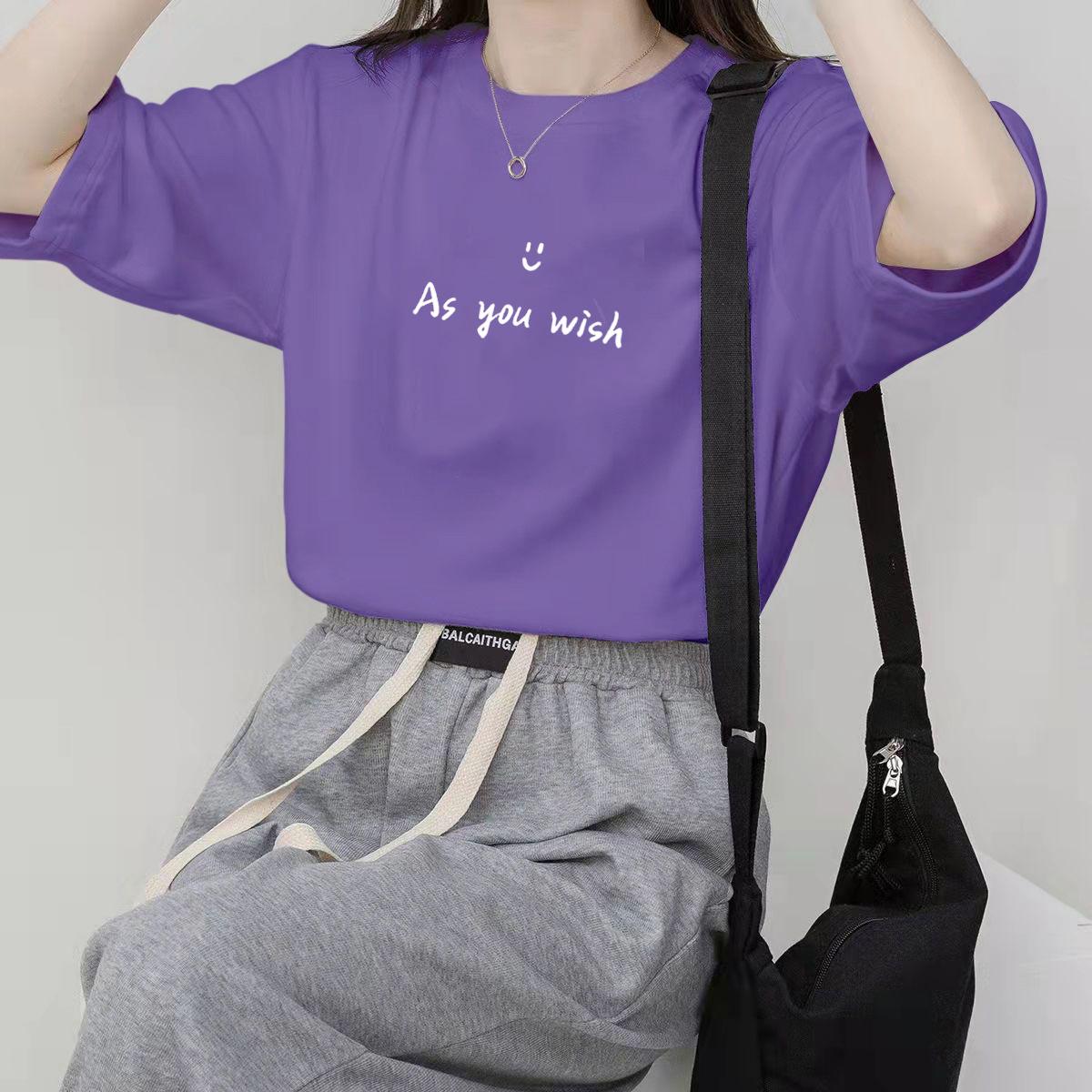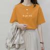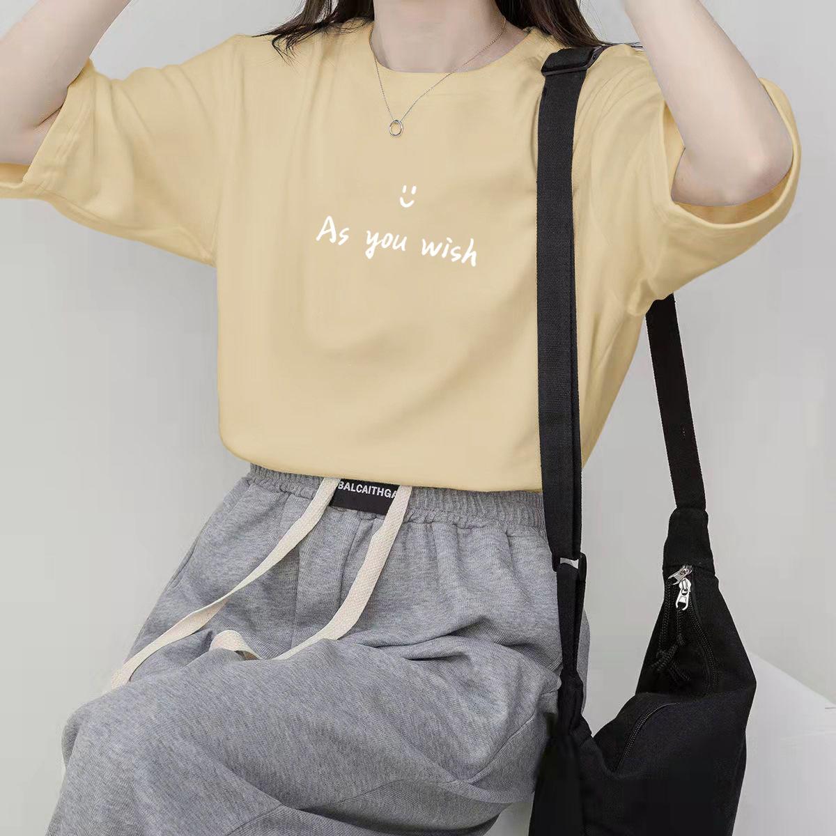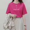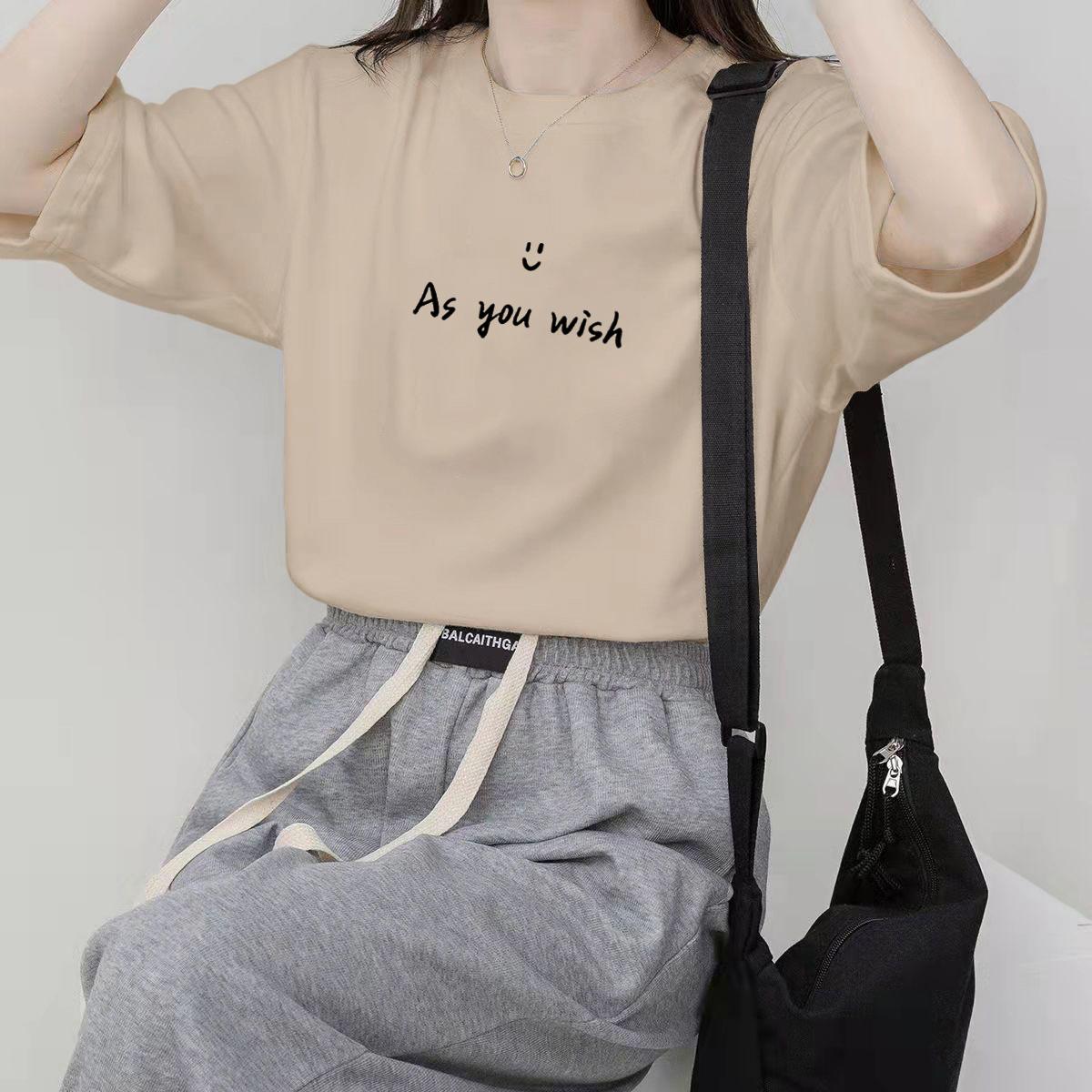 Camiseta de Verano de Algodón 100% de Manga Corta 2025 Nueva Talla Grande Cuello Redondo Holgada Moderna Letra Casual Top Hombro Derecho