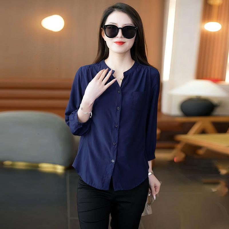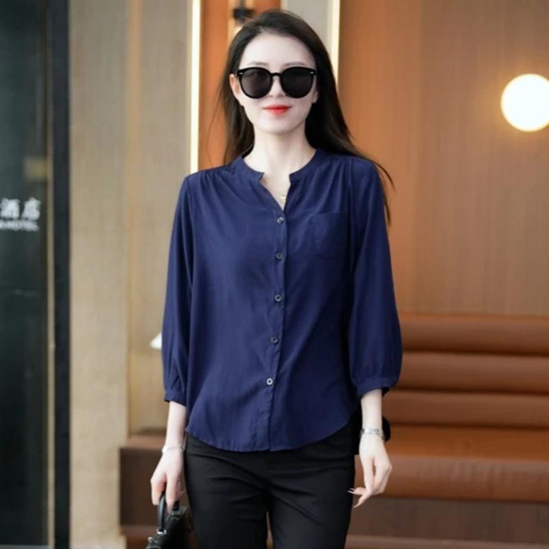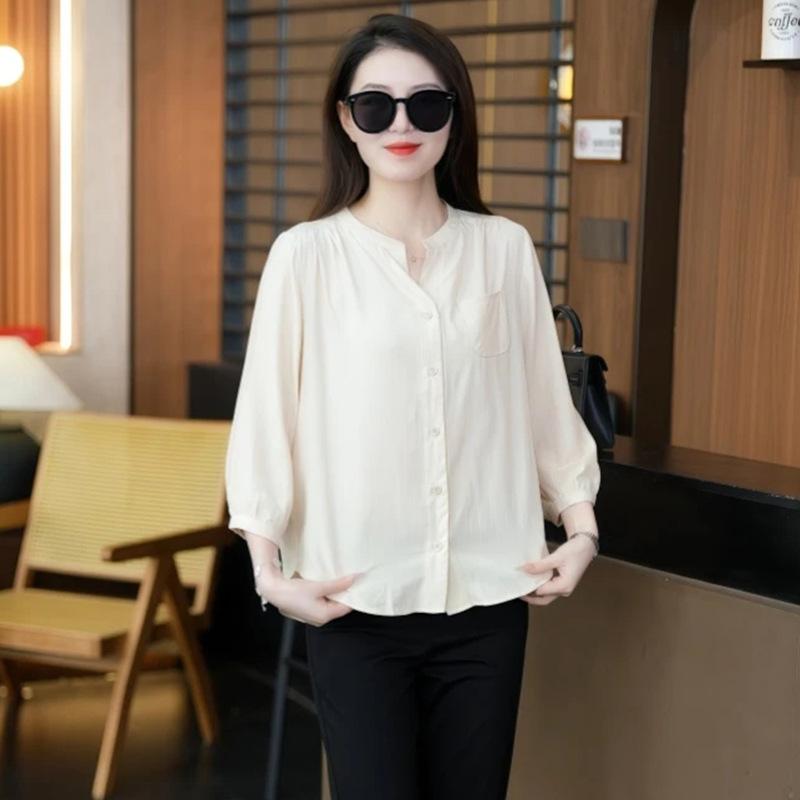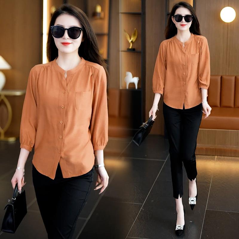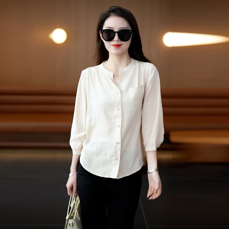 Camisa de Moda para Mujer 2025 Verano Nueva Llegada Estilo Occidental Look Delgado Pequeña Casual Combinable Camisa Top de Siete Mangas Trendy