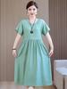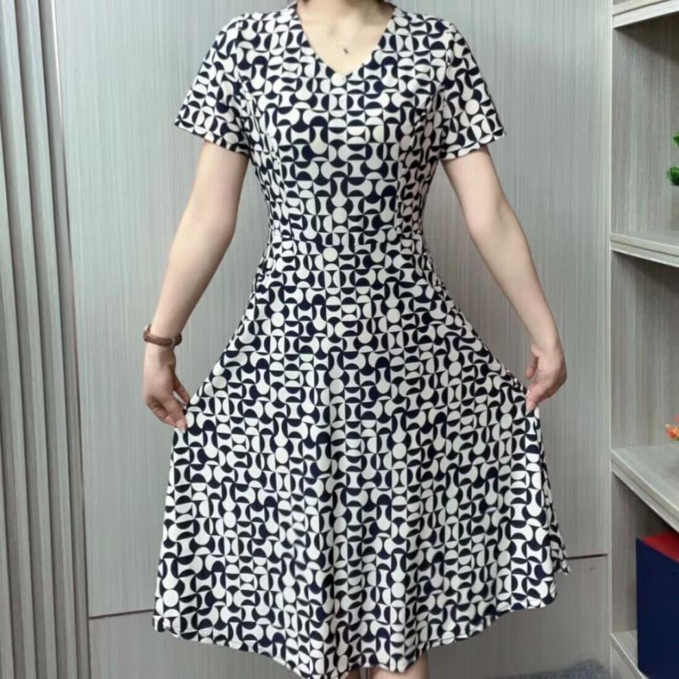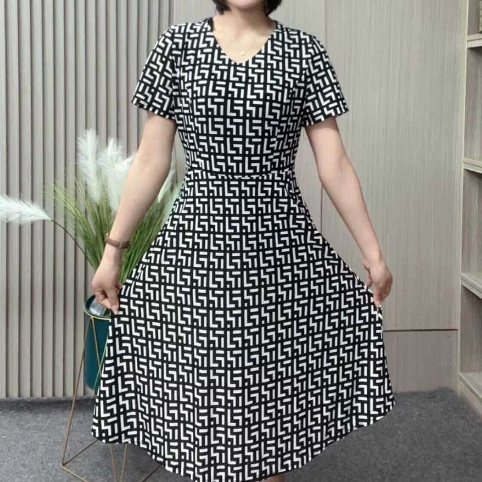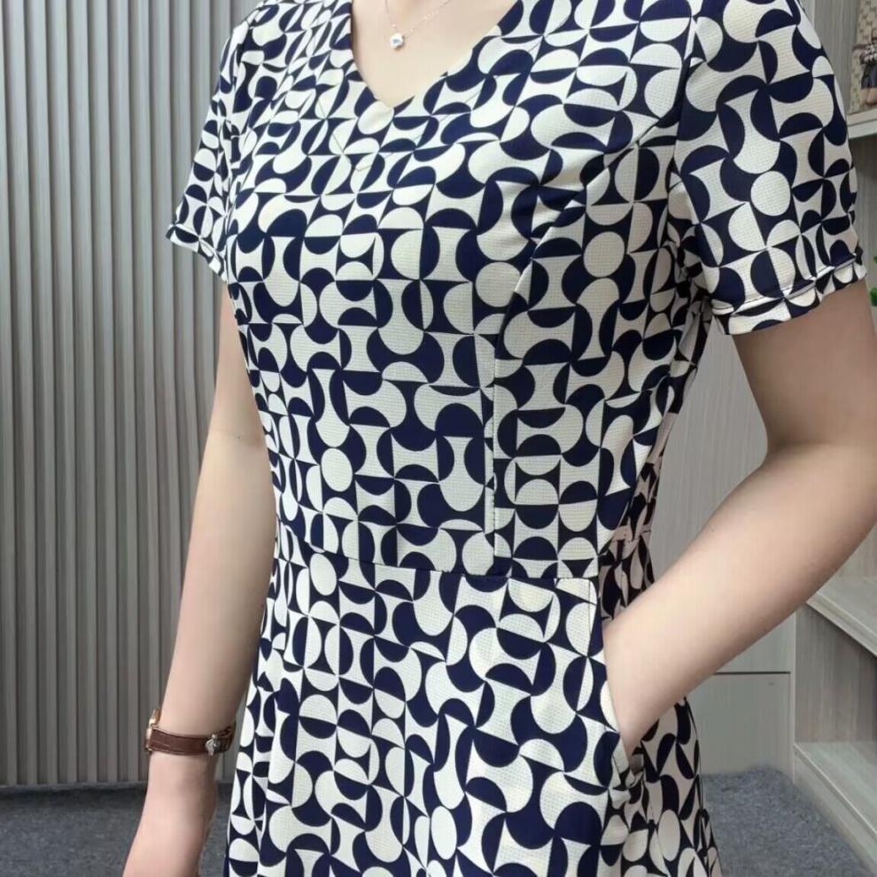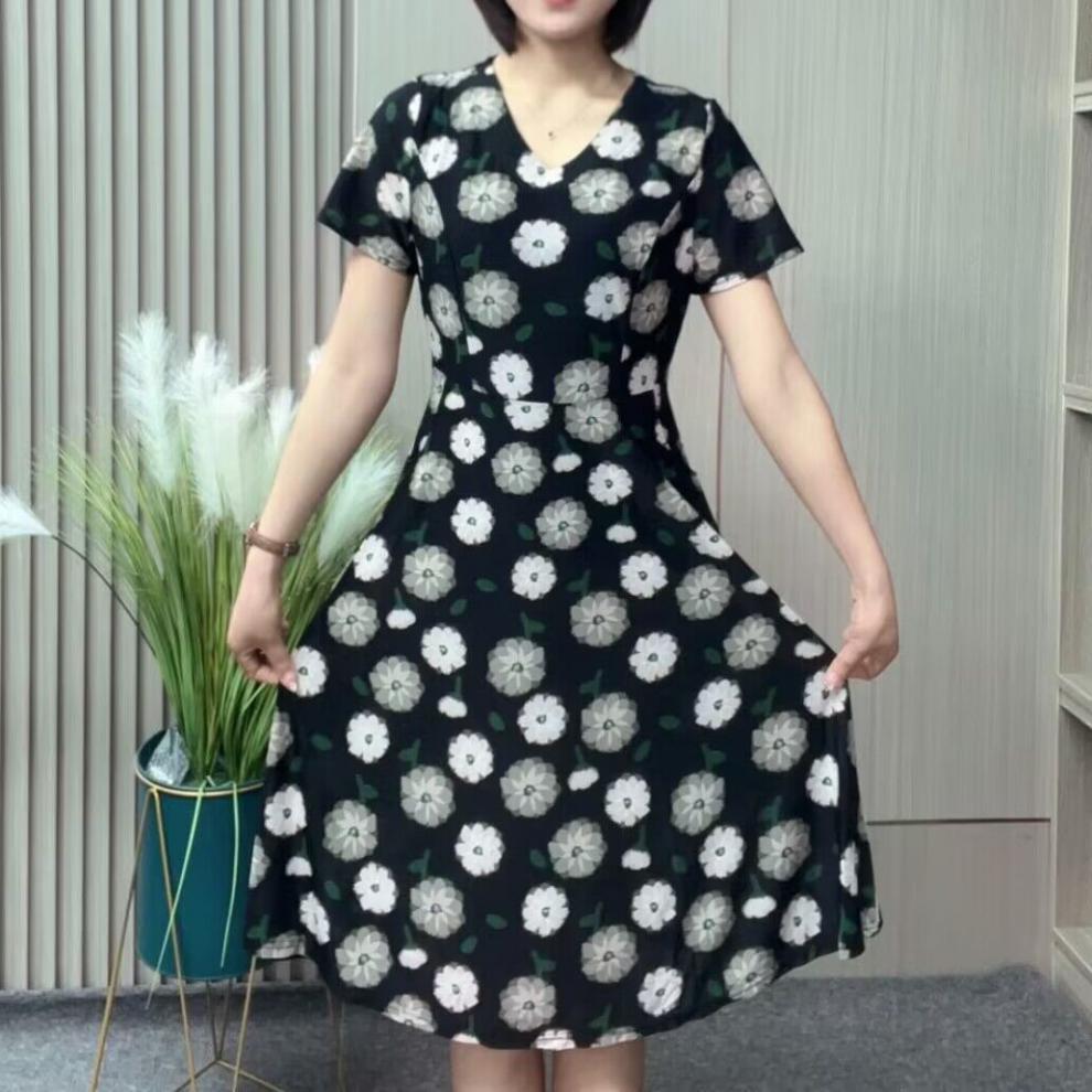 Vestido de alta gama para mujer de manga corta de seda helada verano nuevo estilo cubre vientre adelgazante combinable falda cubre carne vestido elegante de madre