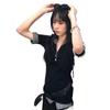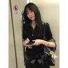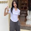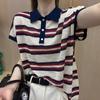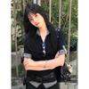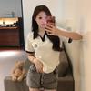 Shanli Dadi Contraste de Color Cuadros Costuras Polo Camiseta de Manga Corta para Mujer Verano Nuevo Dulce y Picante Falso