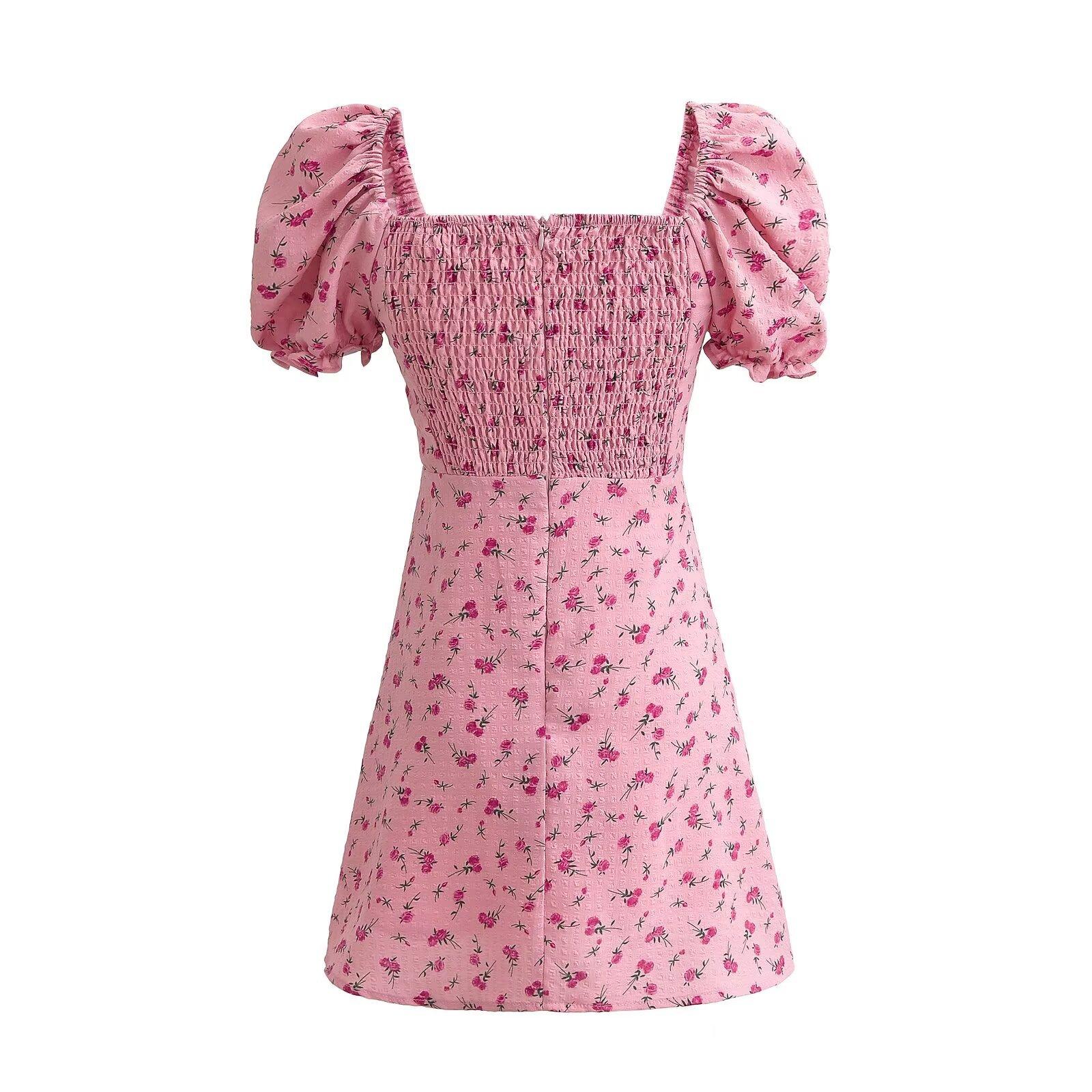 Ropa de Mujer Verano 2024 Nueva Estilo Europeo y Americano Moda Casual Sencillo Rosa Rosa Vestido Corto