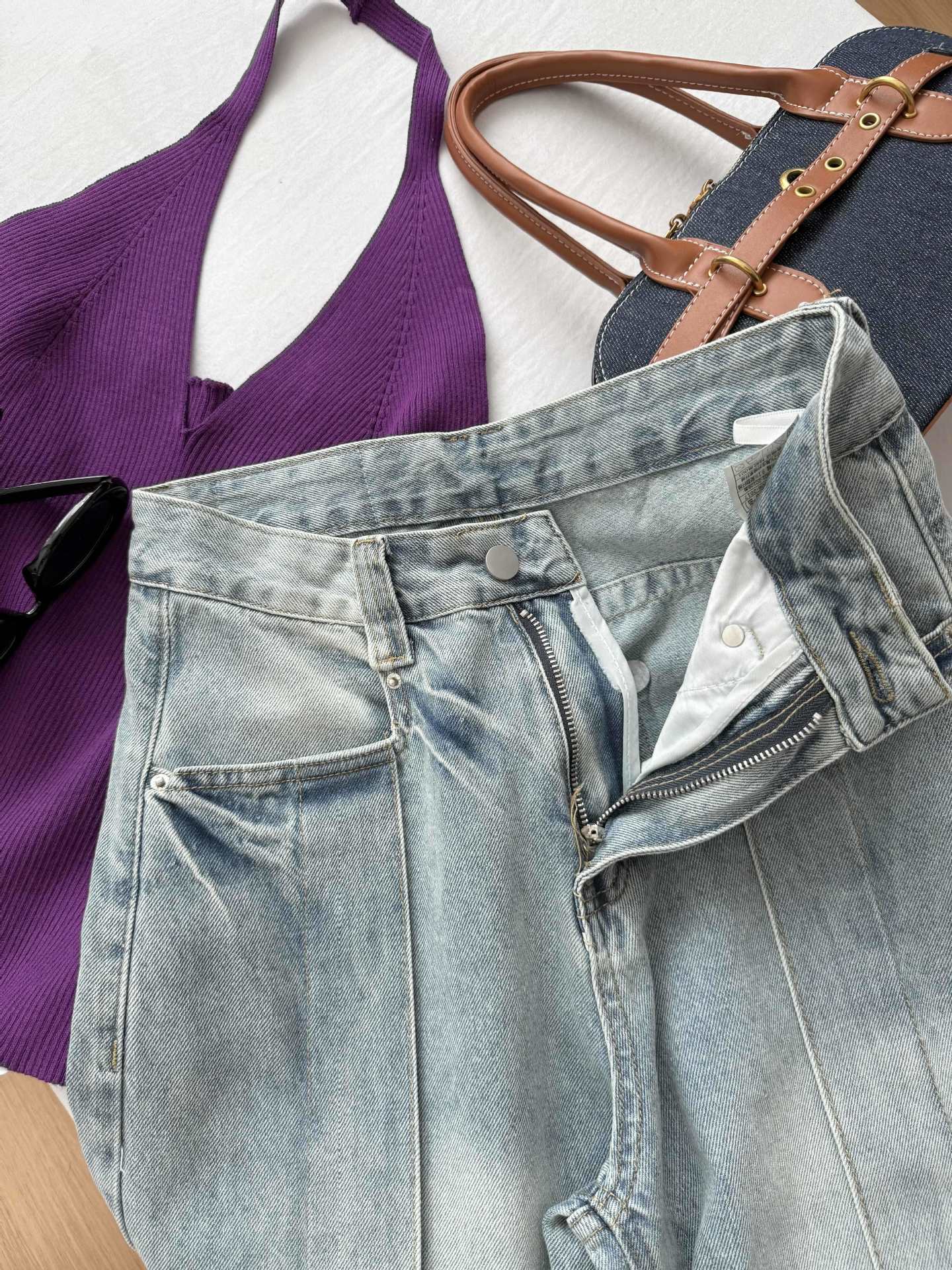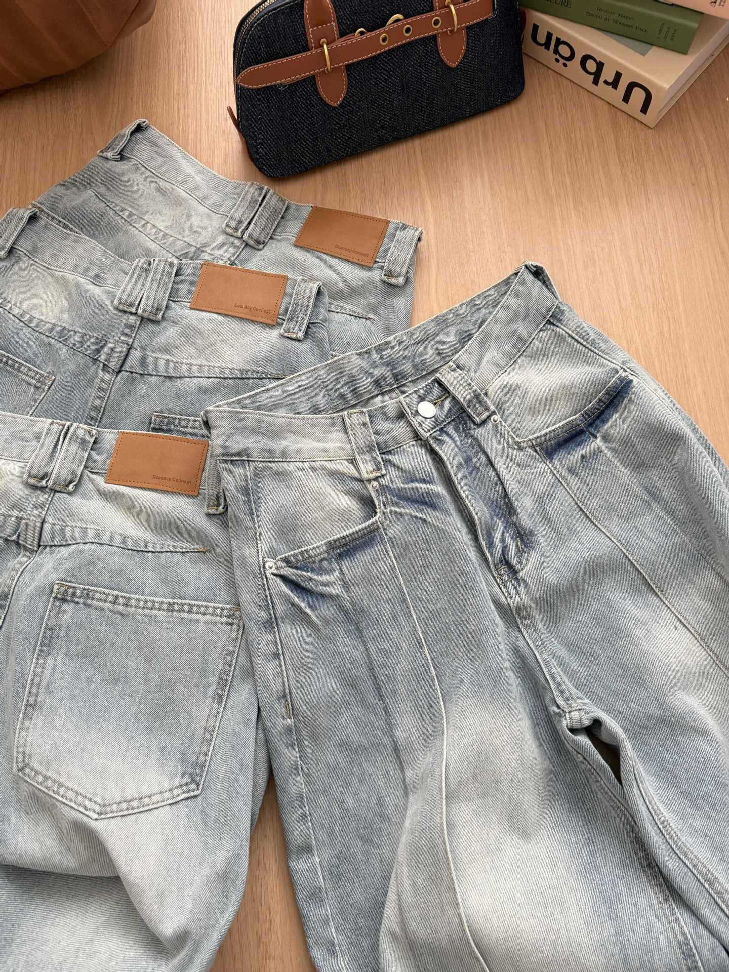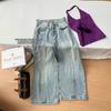 Denim Plan Sentido del Diseño de Industria Pesada Jeans Clásicos Lavados Pantalones Casuales de Primavera para Mujer