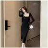 Traje de Chica Caliente Vestido de Primavera para Mujer Encaje de Lazo Ajustado Top Chaleco Corto Halter Conjunto de Dos Piezas Apilado