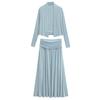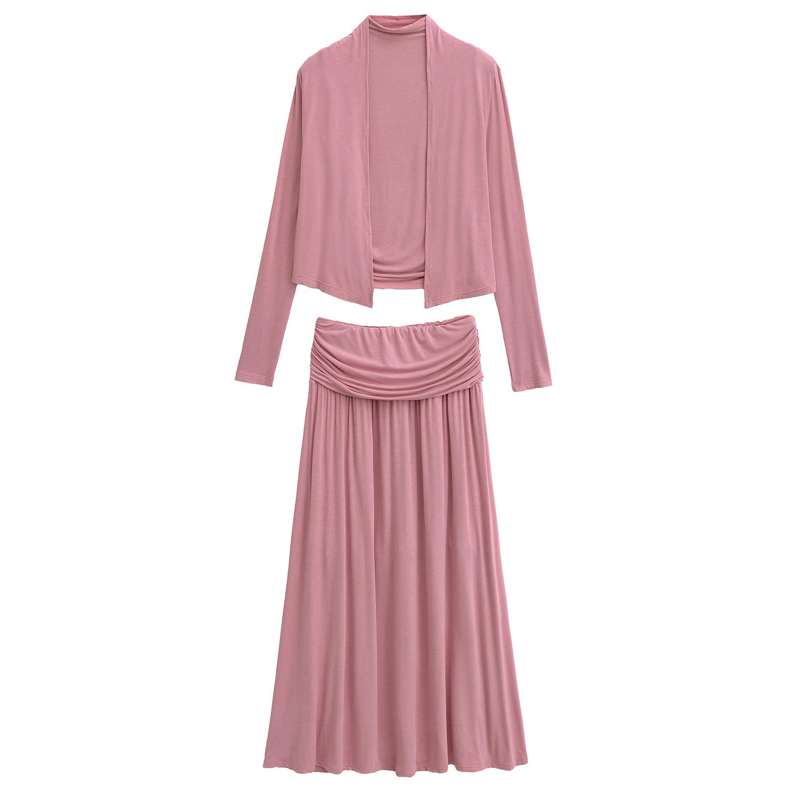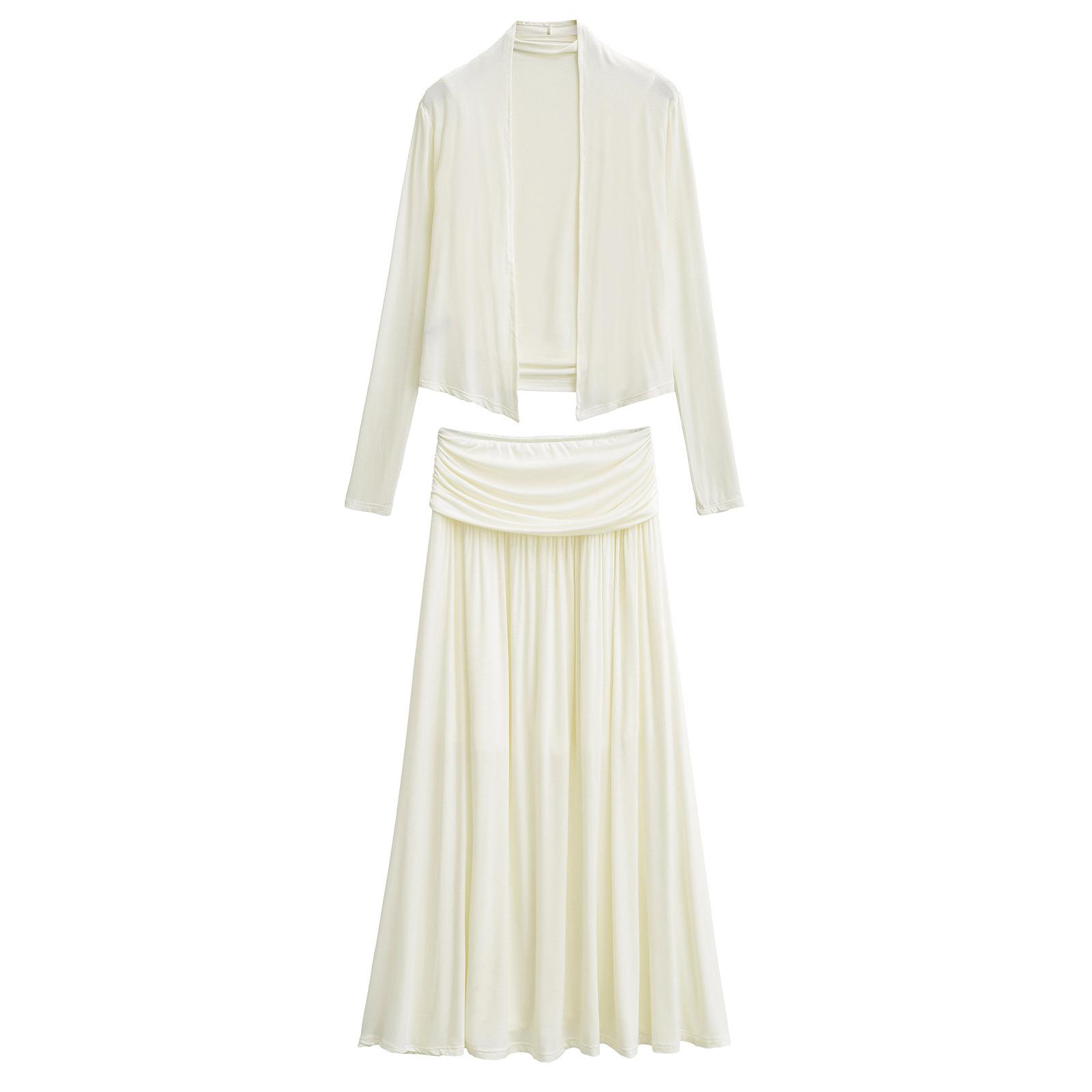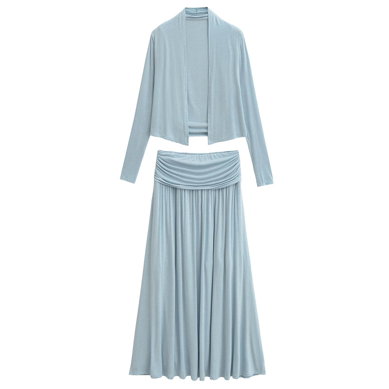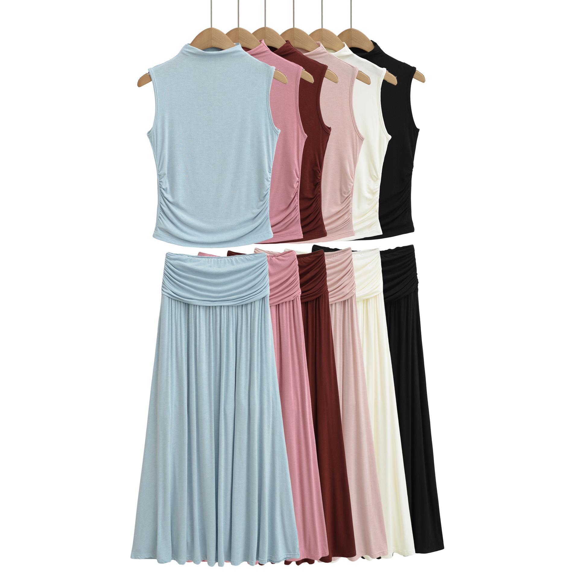Set de Tres Piezas de Protección Solar de Verano 2025 Nuevo Top Chaleco de Cuello Medio Alto + Cárdigan de Manga Larga + Falda Media de Cintura Elástica