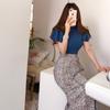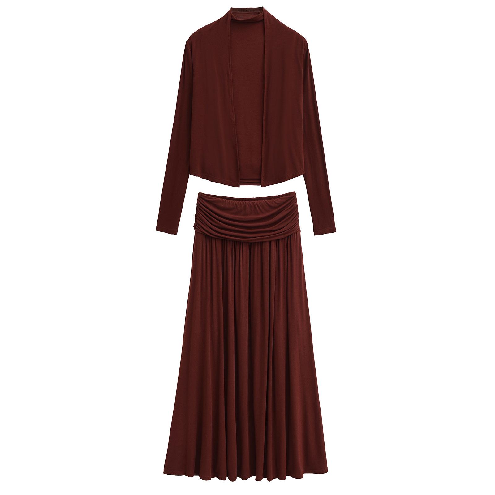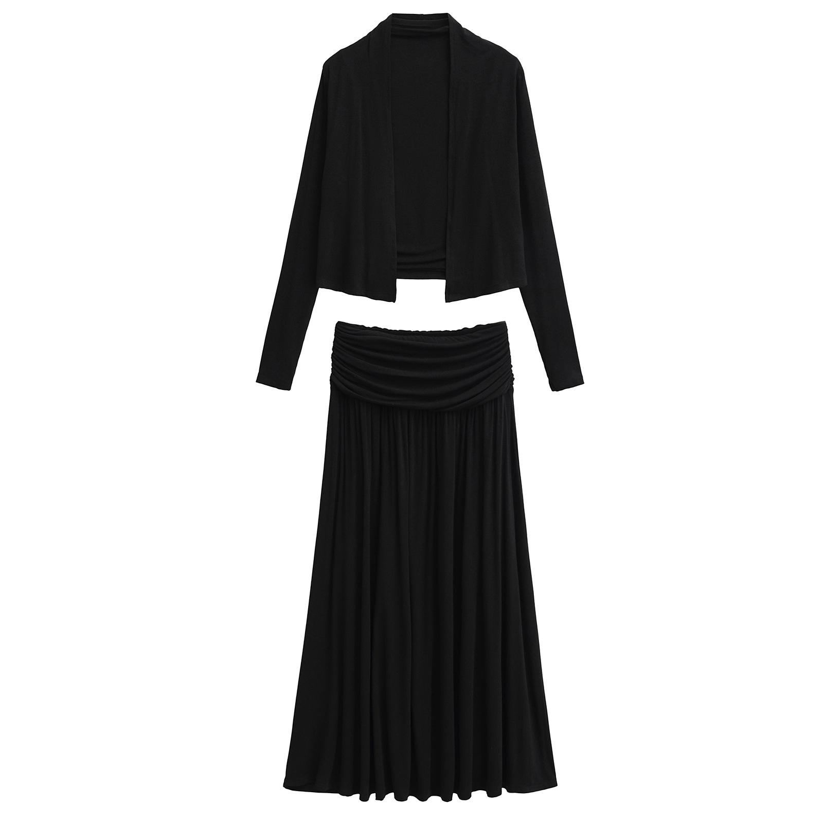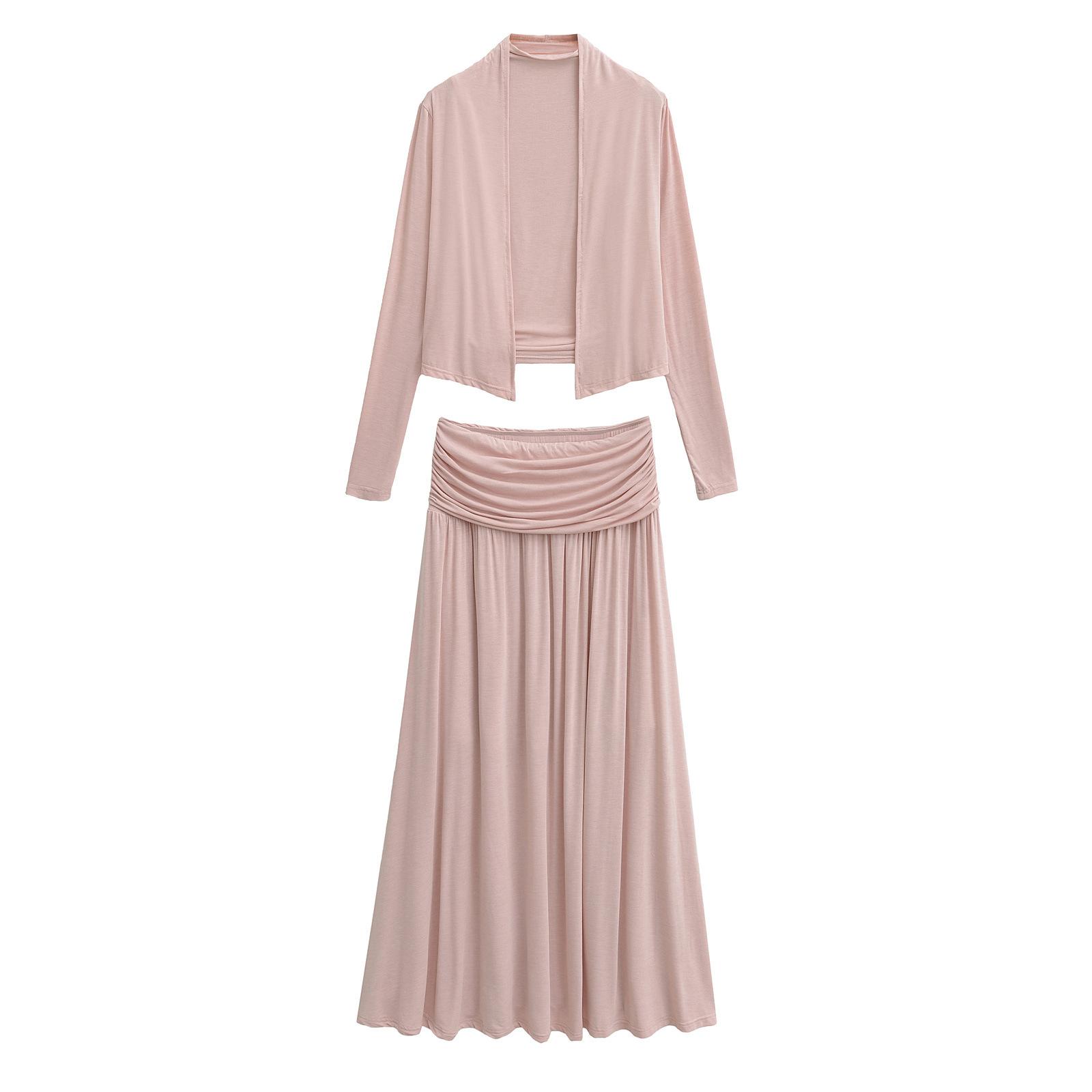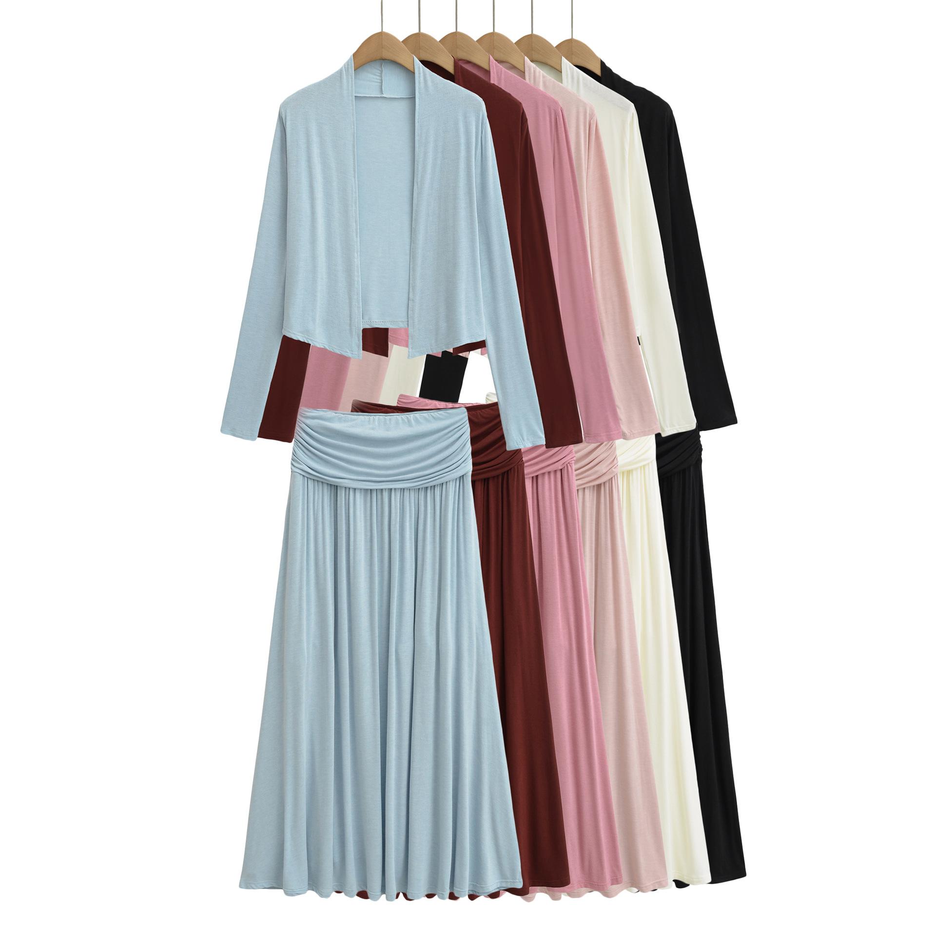 Set de Tres Piezas de Protección Solar de Verano 2025 Nuevo Top Chaleco de Cuello Medio Alto + Cárdigan de Manga Larga + Falda Media de Cintura Elástica