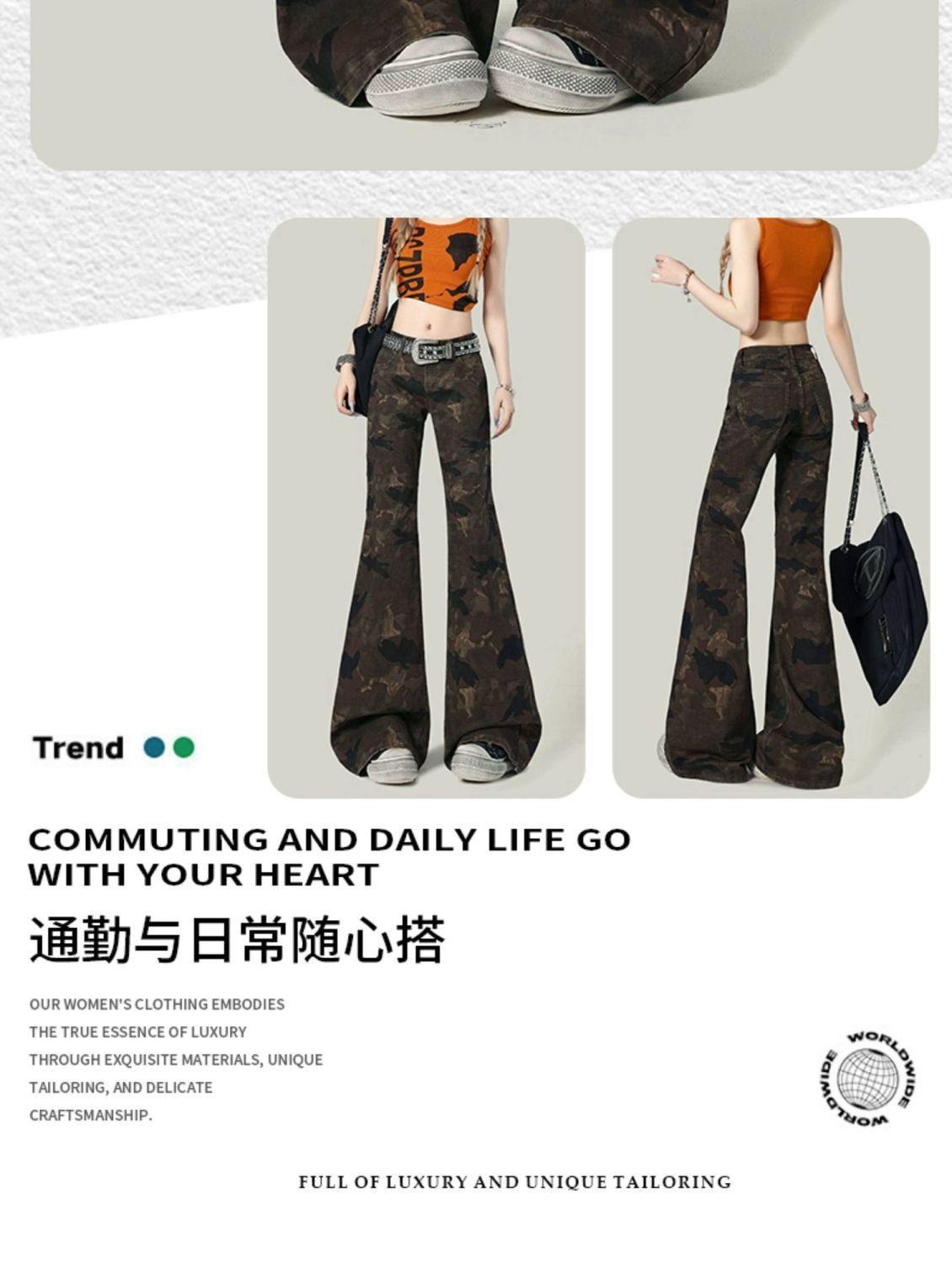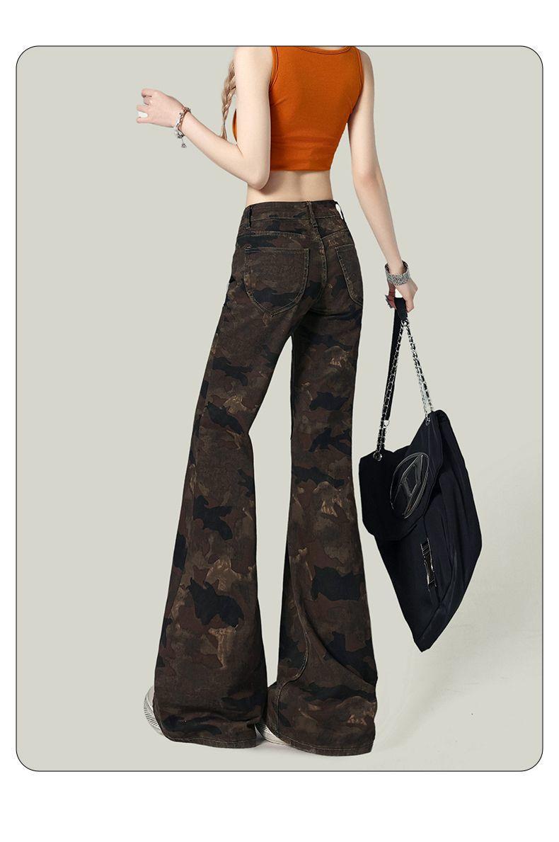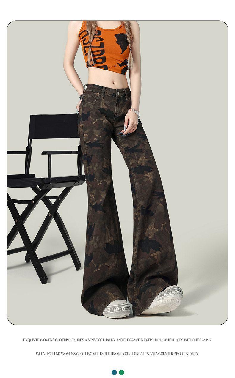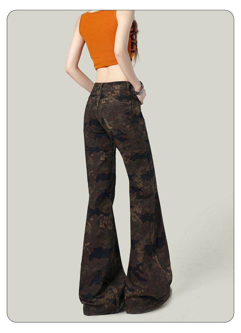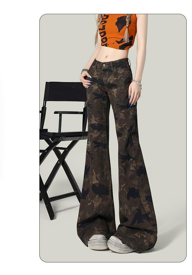 Jeans Acampanados Micro de Camuflaje para Mujer 2025 Nuevo Primavera y Verano Elásticos Drapeados Look Adelgazante Americano Sexy Pantalones Largos hasta el Piso