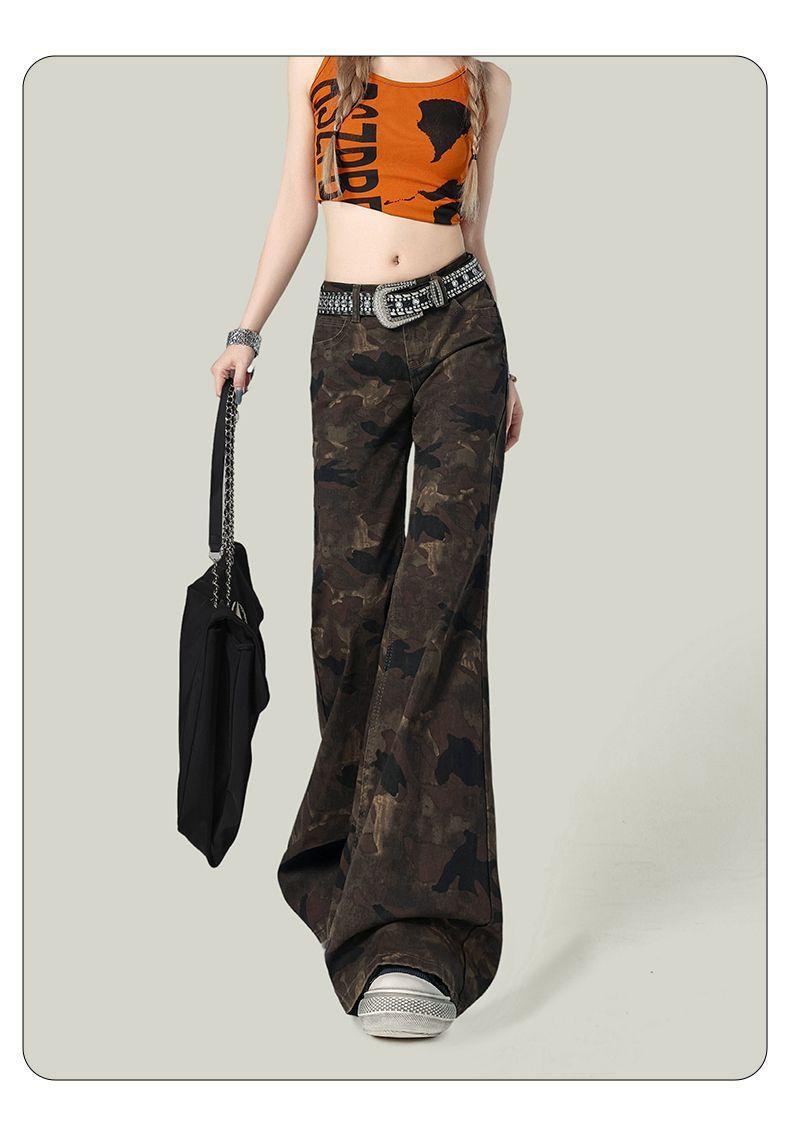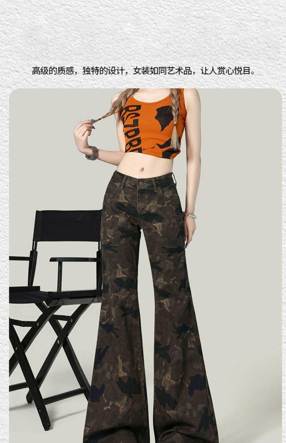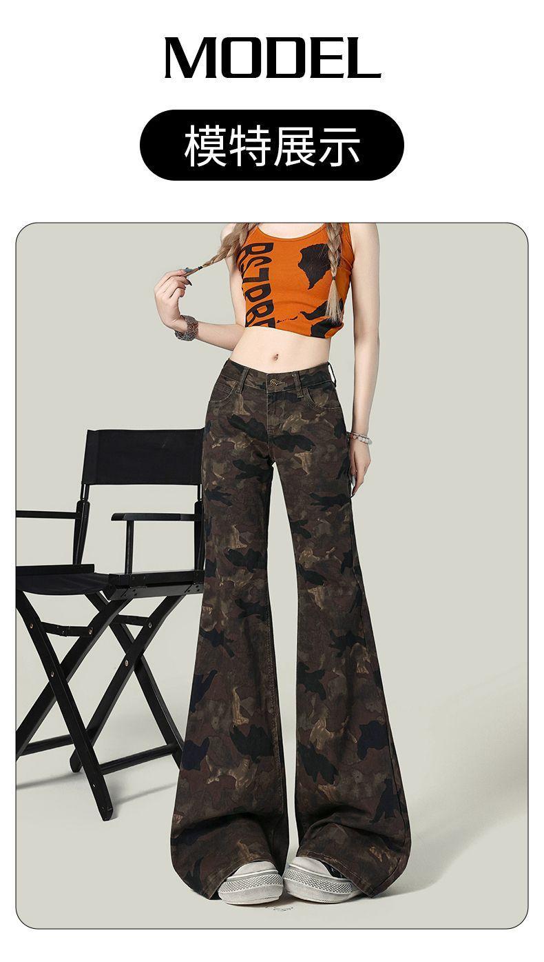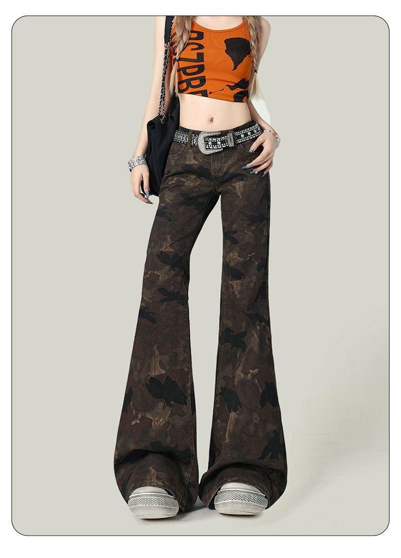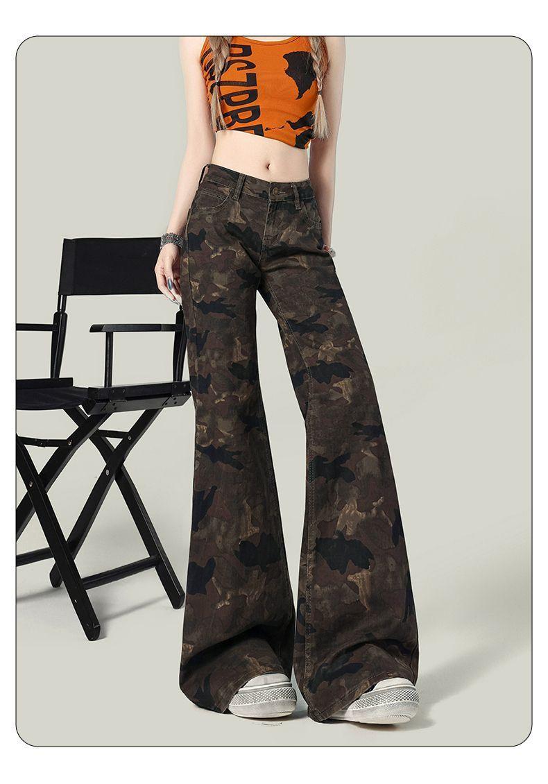 Jeans Acampanados Micro de Camuflaje para Mujer 2025 Nuevo Primavera y Verano Elásticos Drapeados Look Adelgazante Americano Sexy Pantalones Largos hasta el Piso