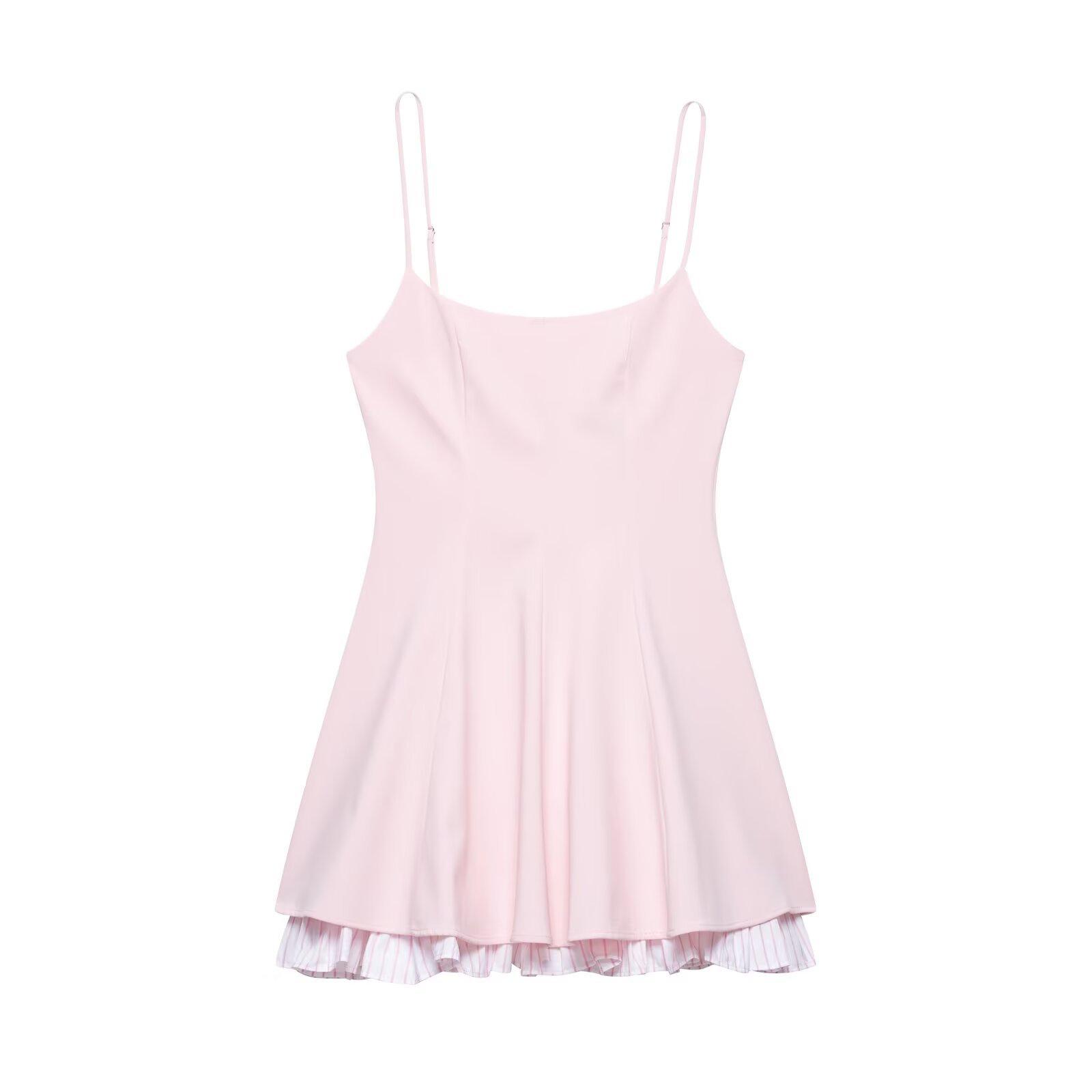 Vestido Corto de Tirantes con Empalme de Rayas Nuevo de Primavera 2025 Ropa de Mujer Transfronteriza Europea y Americana W085 245559