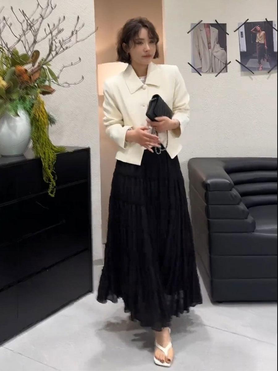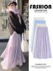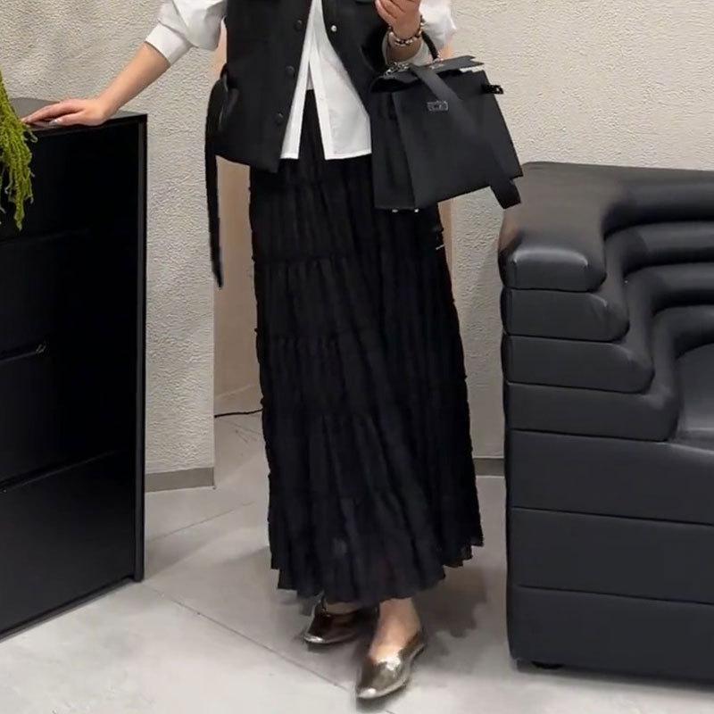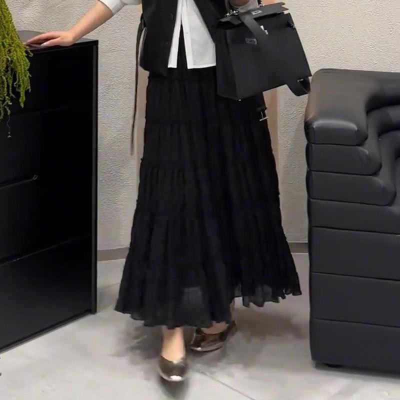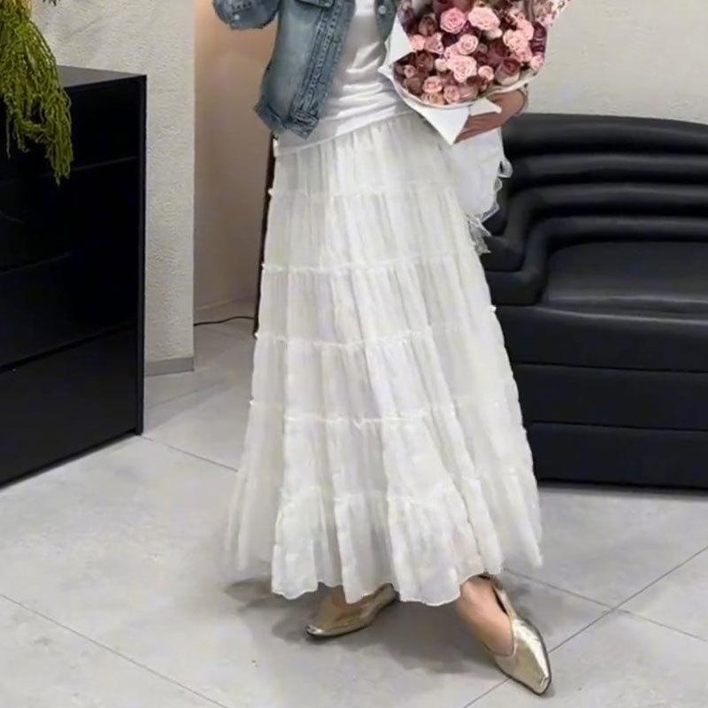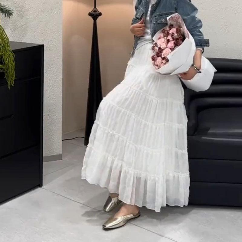 Primavera 2025 Nuevo Estilo Francés Largo Medio Elegante Capas Plisadas Nube Borde Oreja de Madera Falda de Encaje Pastel para Mujer