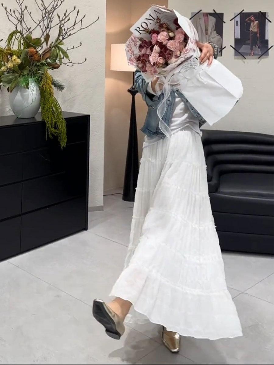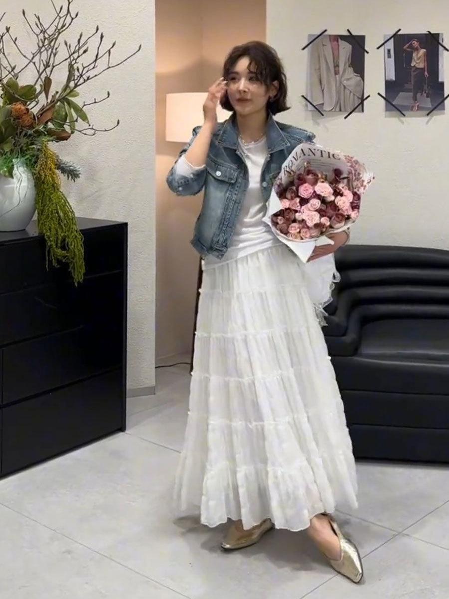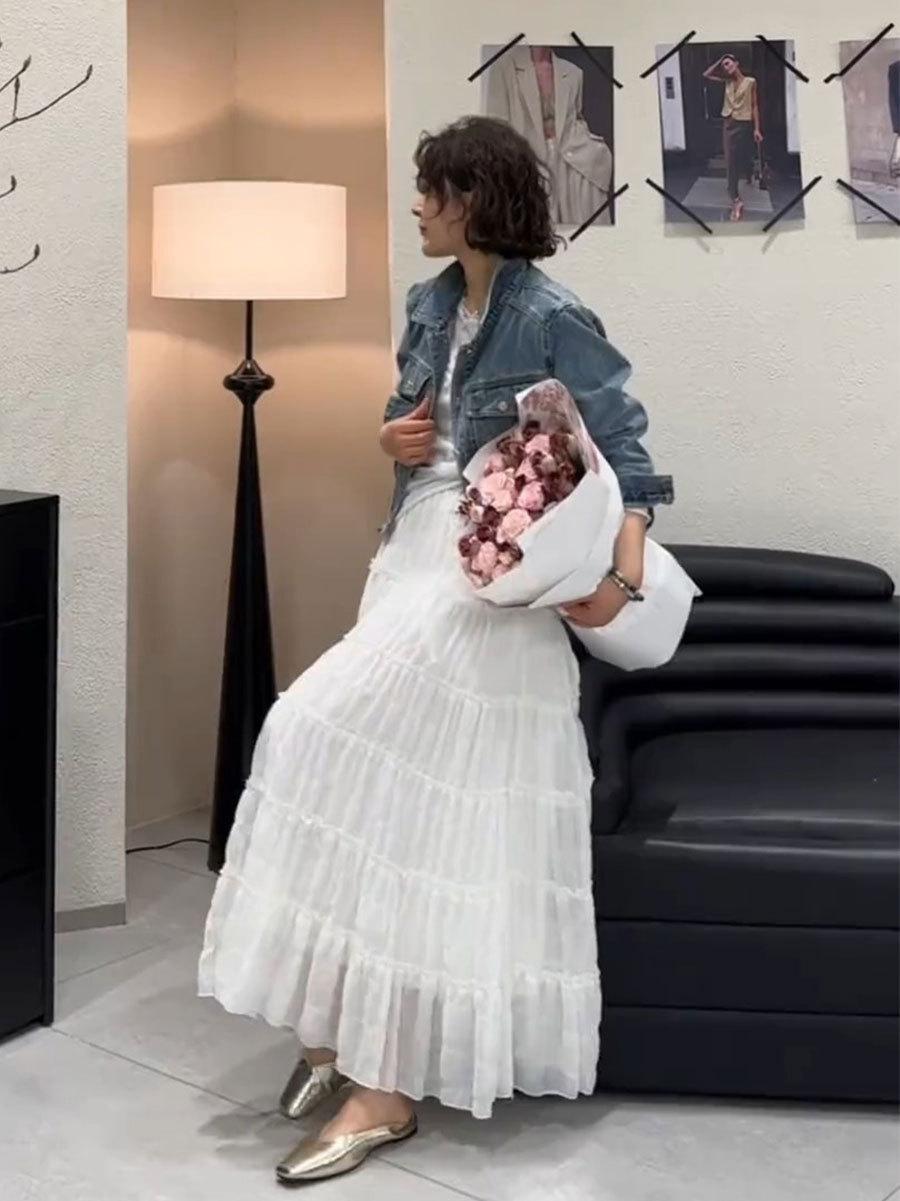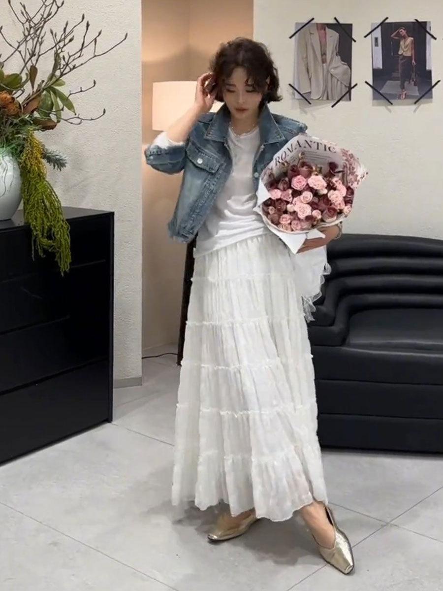 Primavera 2025 Nuevo Estilo Francés Largo Medio Elegante Capas Plisadas Nube Borde Oreja de Madera Falda de Encaje Pastel para Mujer
