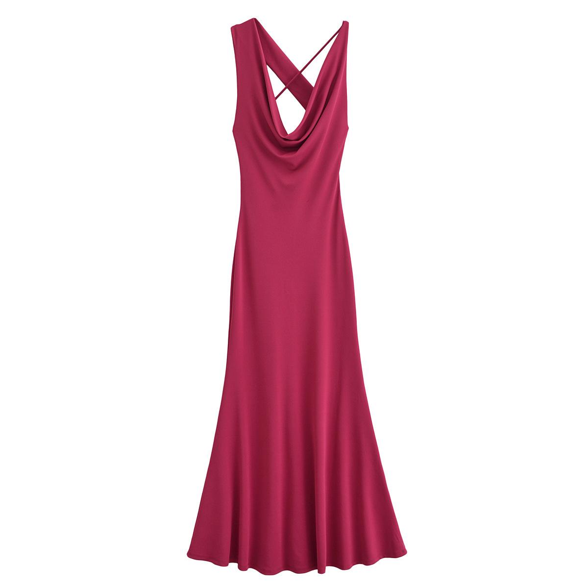 Exportación Transfronteriza Ropa de Mujer 2025 Verano Estilo Europeo y Americano Cuello Oscilante Diseño Cruzado Sin Espalda Vestido con Tirantes para Mujer E52585