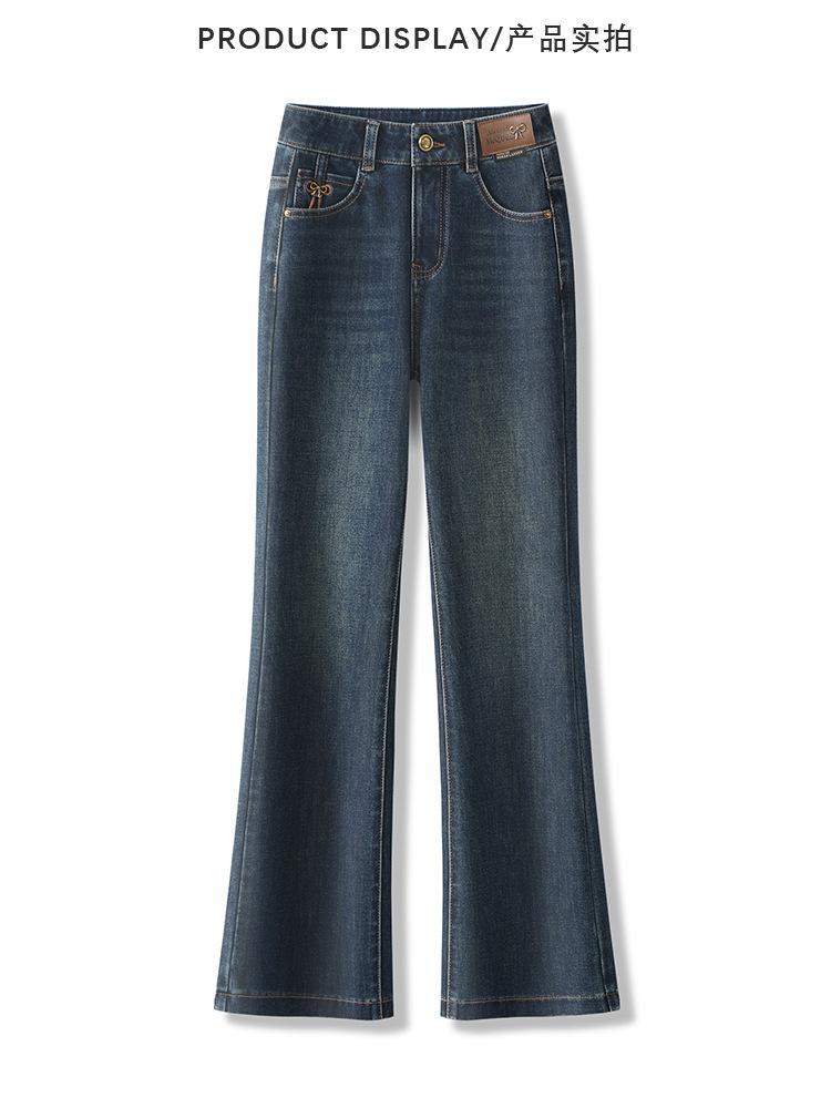 Pantalones Acampanados de Mezclilla para Mujer Primavera Nuevo Pantalón de Cintura Alta Ajustado para Mujeres Pequeñas Combinación Total Ajustado Casual Pantalones de Herradura para Mujer