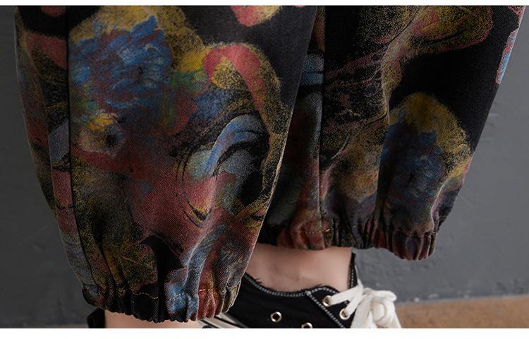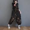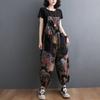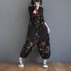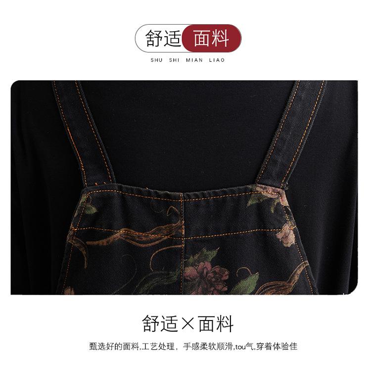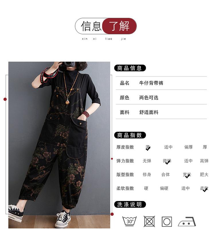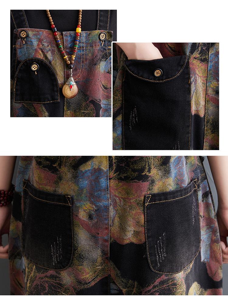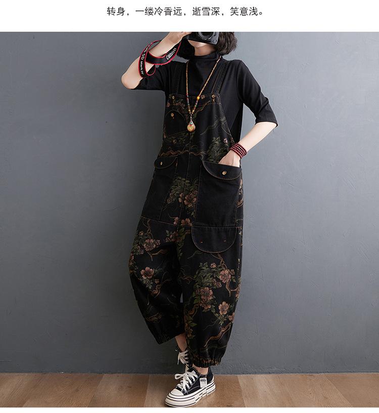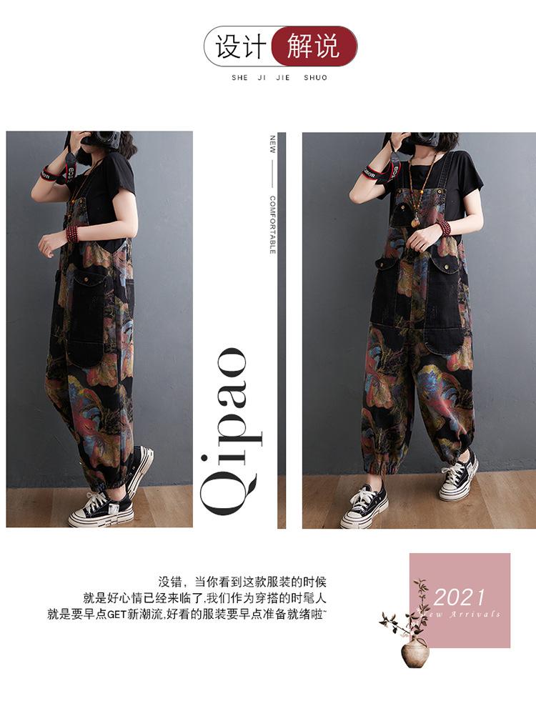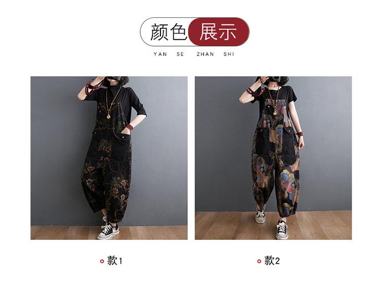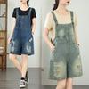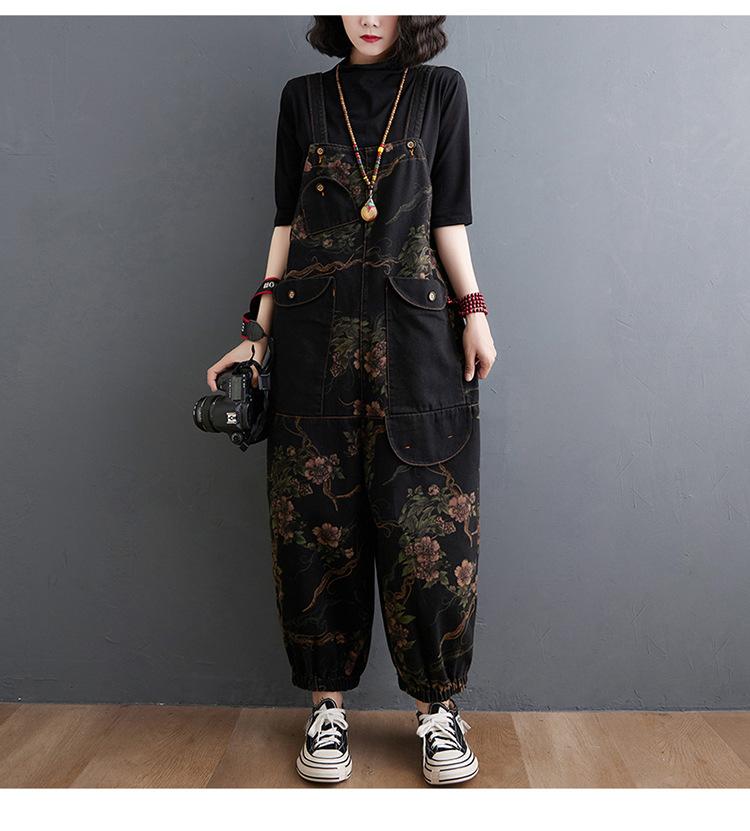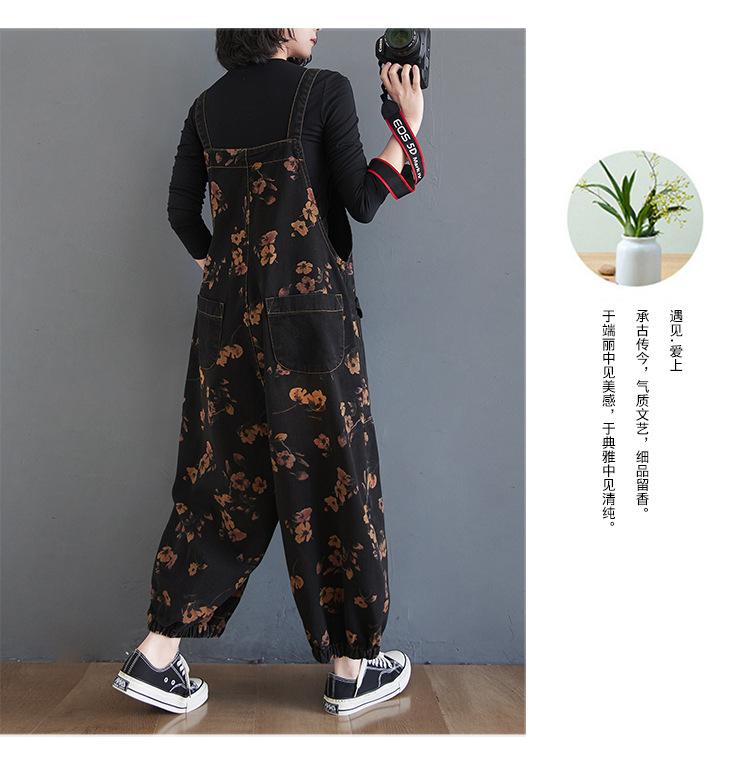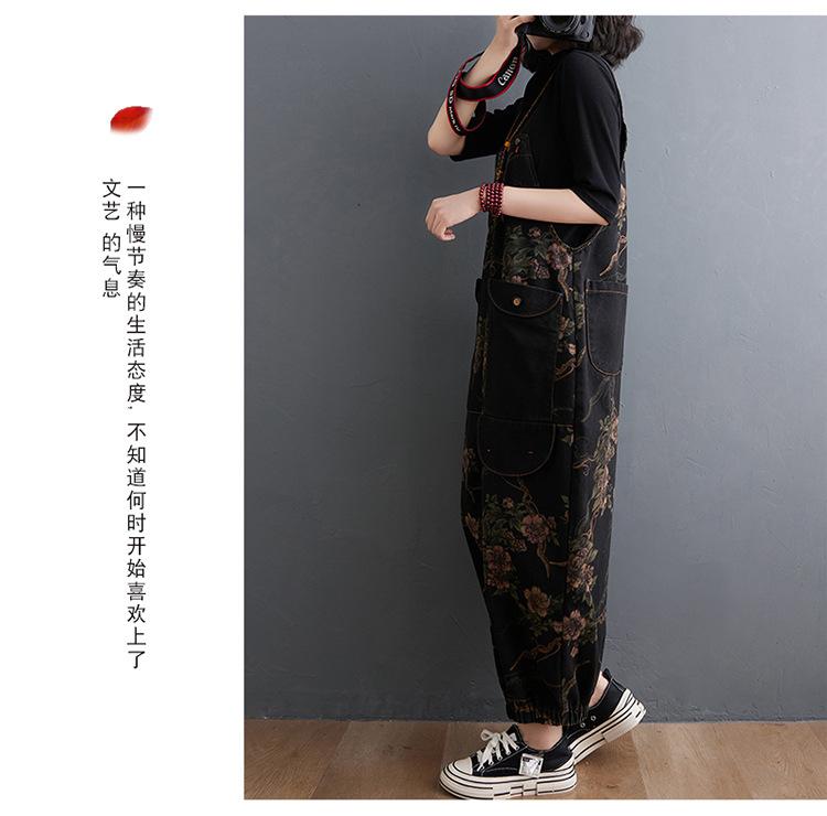 Overol de mezclilla de verano para mujer de talla grande, holgado, estampado, con bolsillo grande, entrepierna caída, pantalones harem casuales