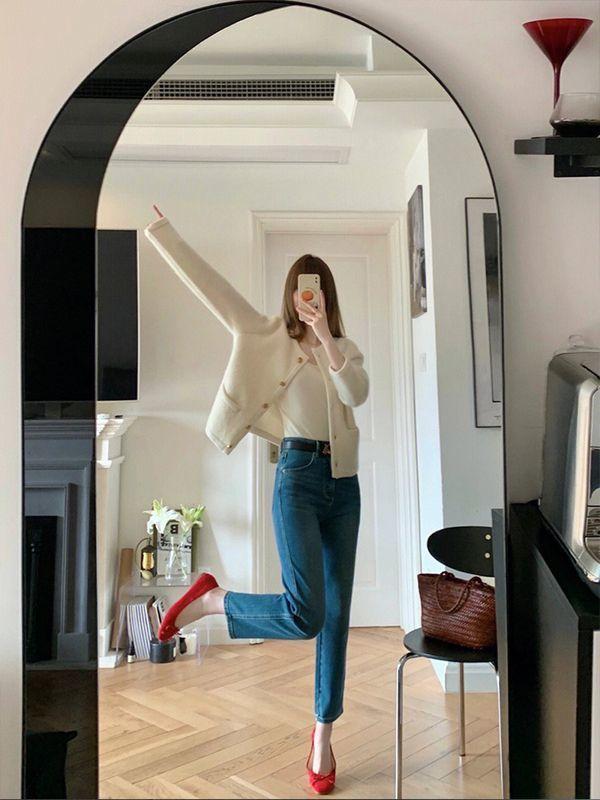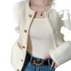 Abrigo Corto Estilo Chanel Blanco para Mujer Otoño de Alta Gama Cálido y Suave Estilo Elegante Socialité Suéter de Punto Cárdigan