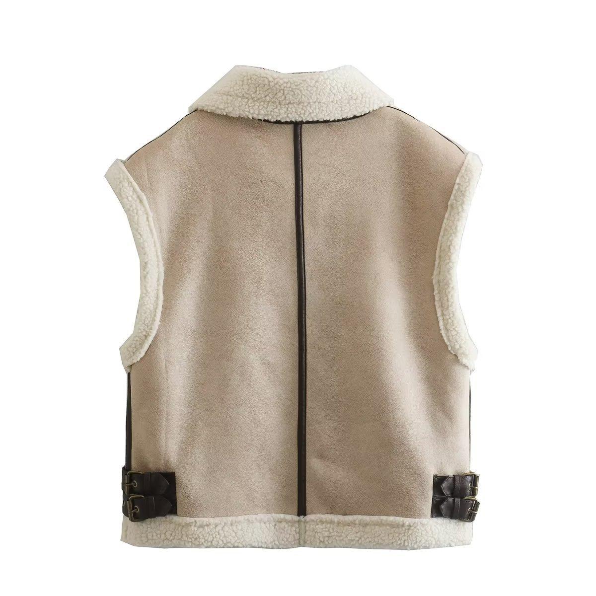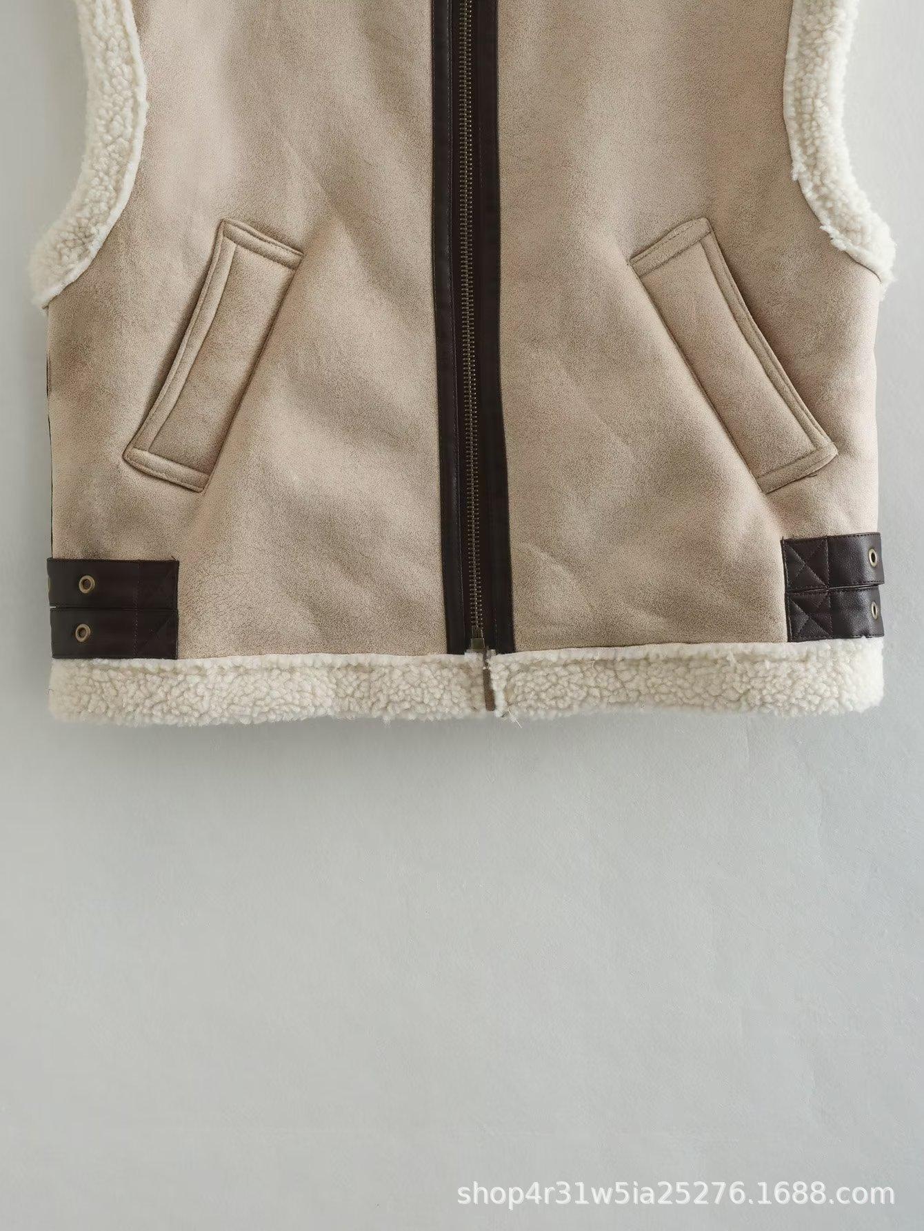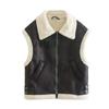 Venta al por mayor transfronteriza estilo europeo y americano 2023 Otoño Nuevo piel sintética sin mangas costuras chaleco abrigo