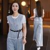 Traje casual de talla grande 2025 Nuevo Verano Chaleco para mujer chica gordita Cubriendo Carne Delgado Pantalones de Pierna Ancha Conjunto de Tres Piezas
