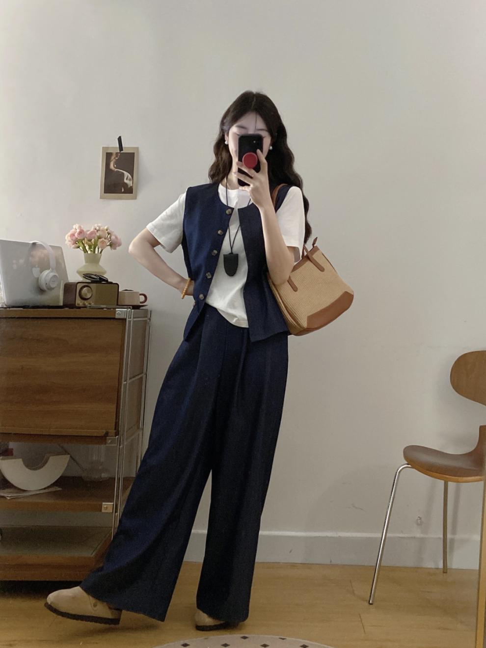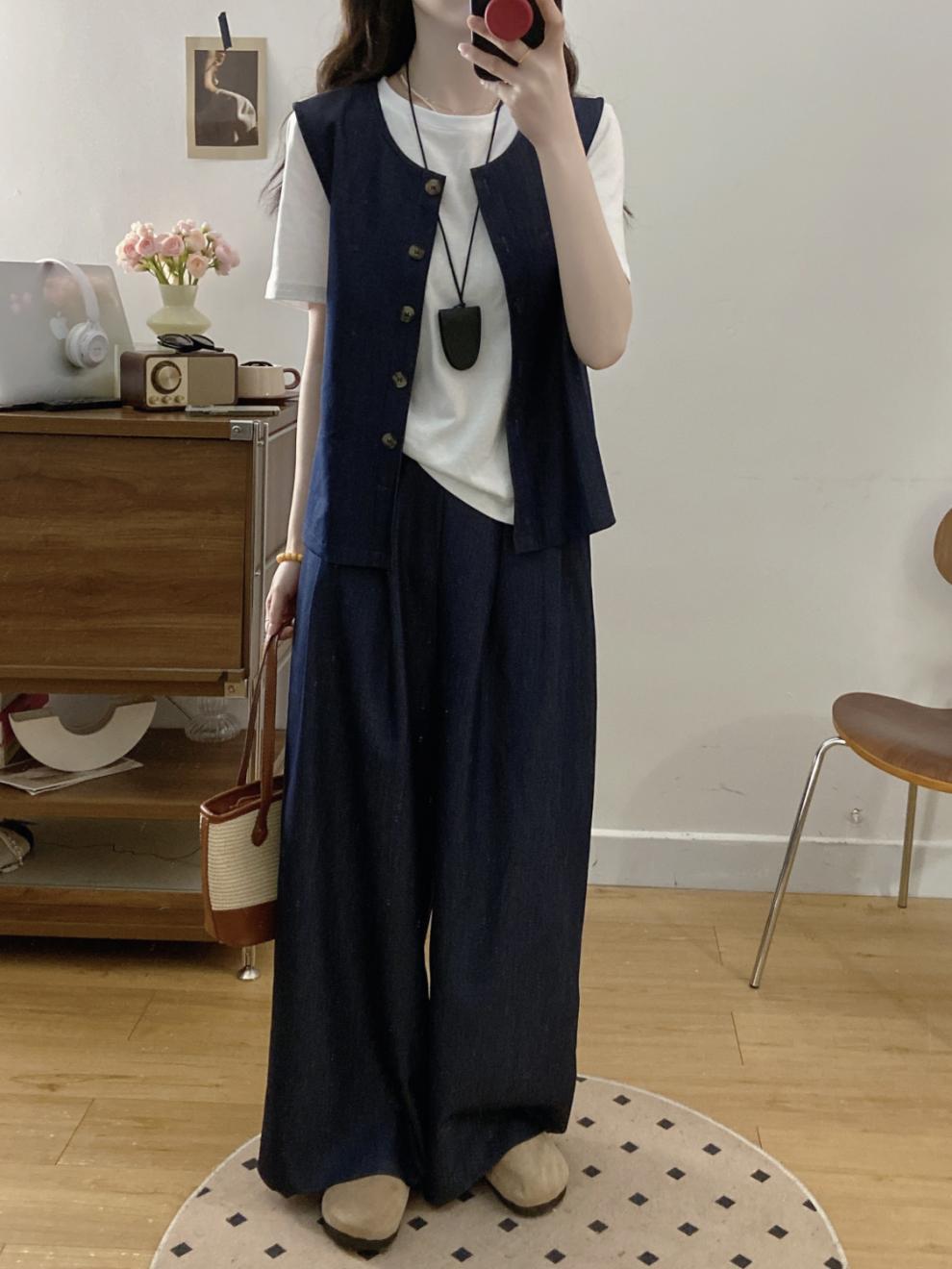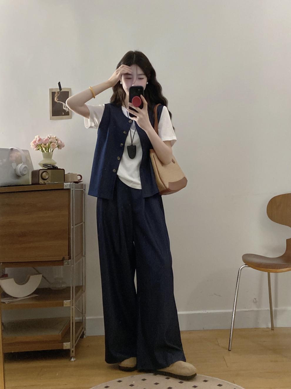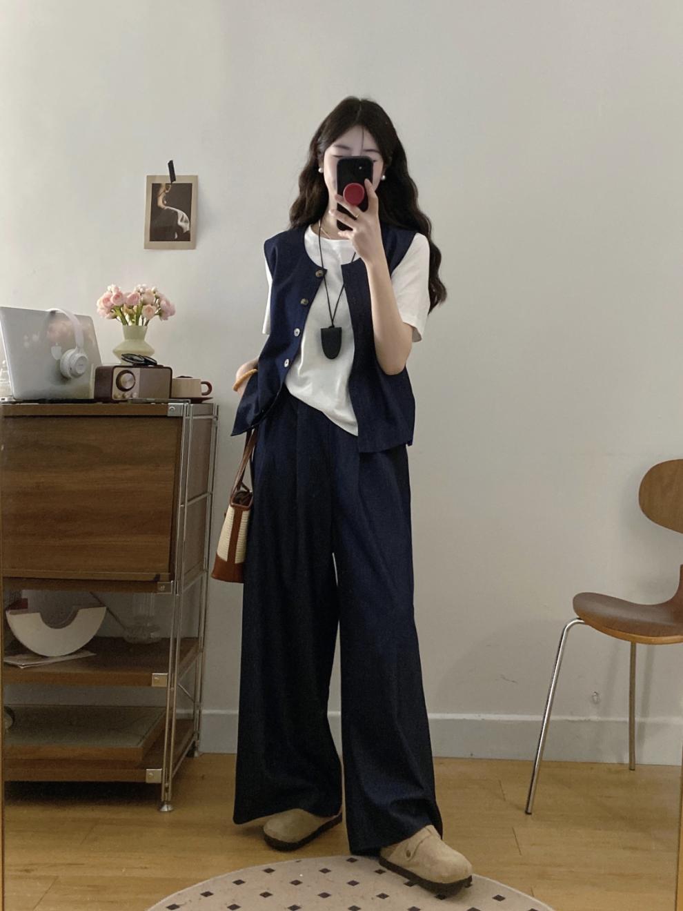 T-shirt [huaduoduo selection], Vest + wide-leg pants [two-piece set], T-shirt + vest + wide-leg pants [three-piece set]