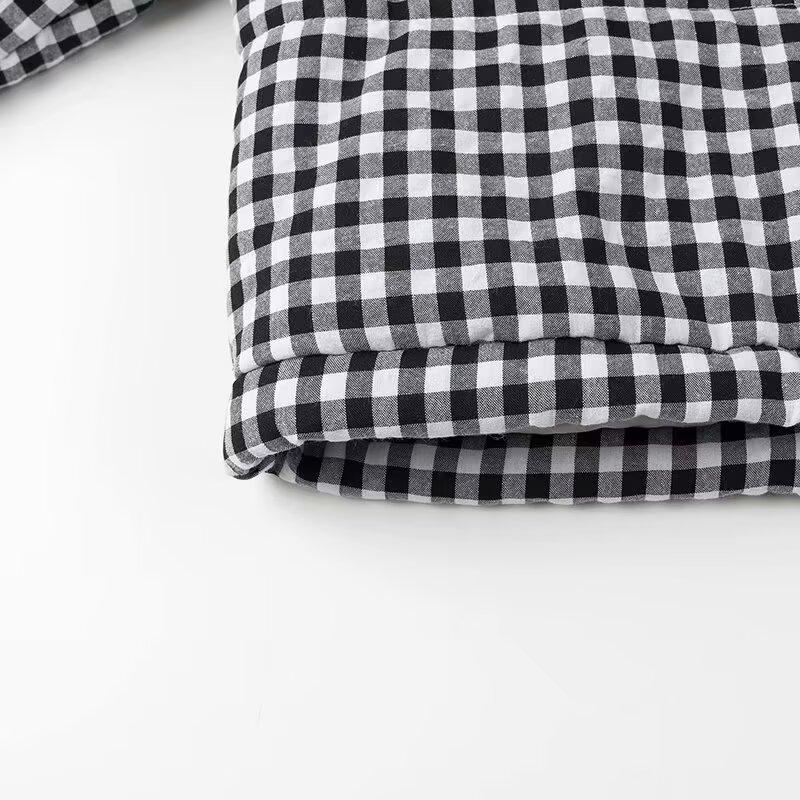 Ropa de Otoño para Mujer 2024 Nuevo Estilo Europeo y Americano Moda Simple Versátil Encaje Cuadros Algodón Abrigo