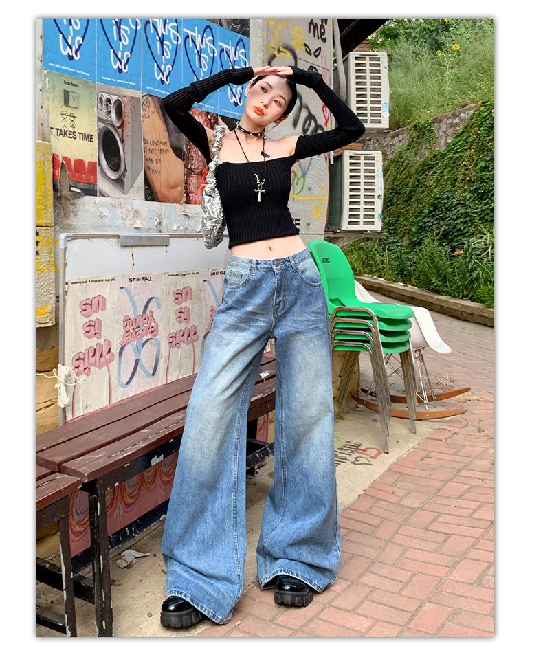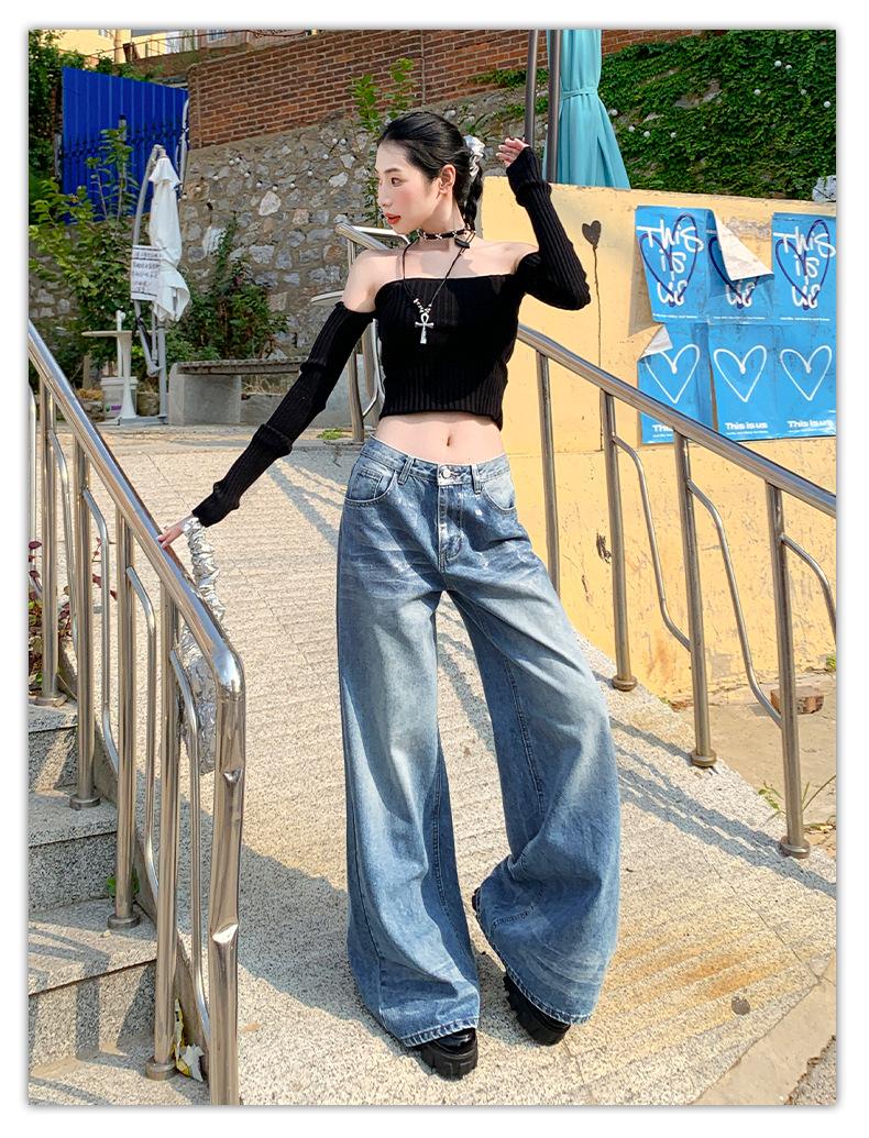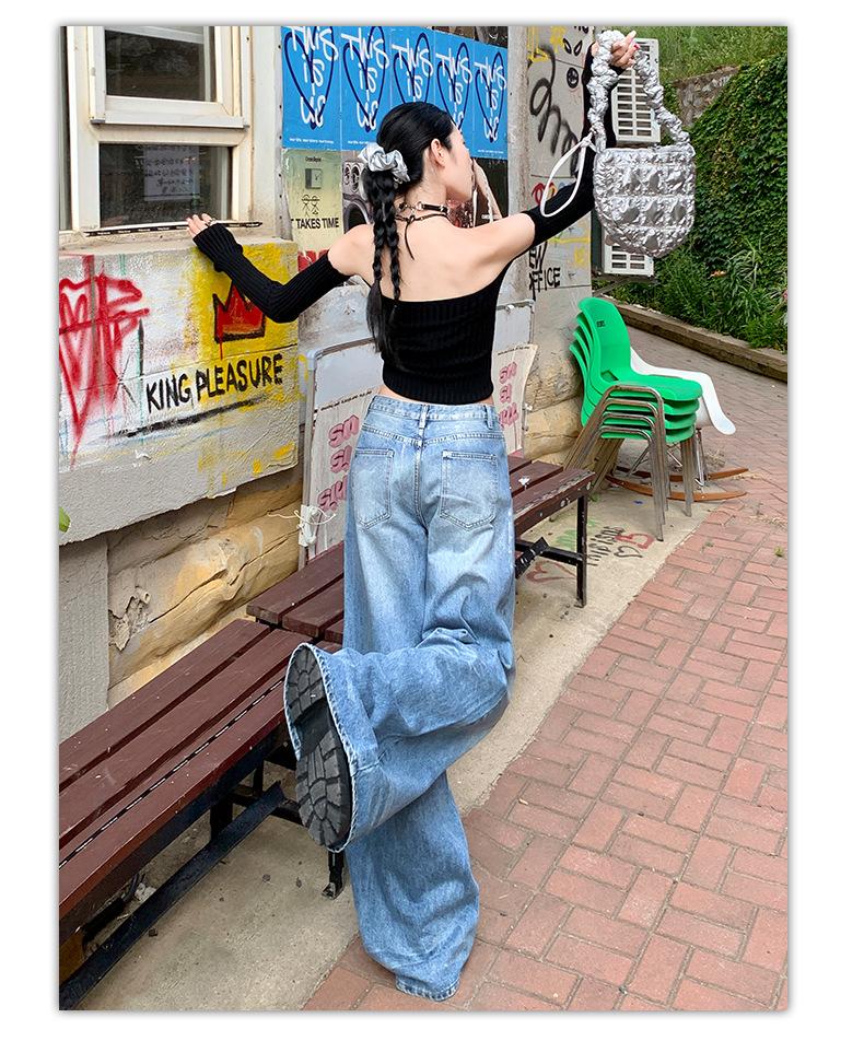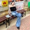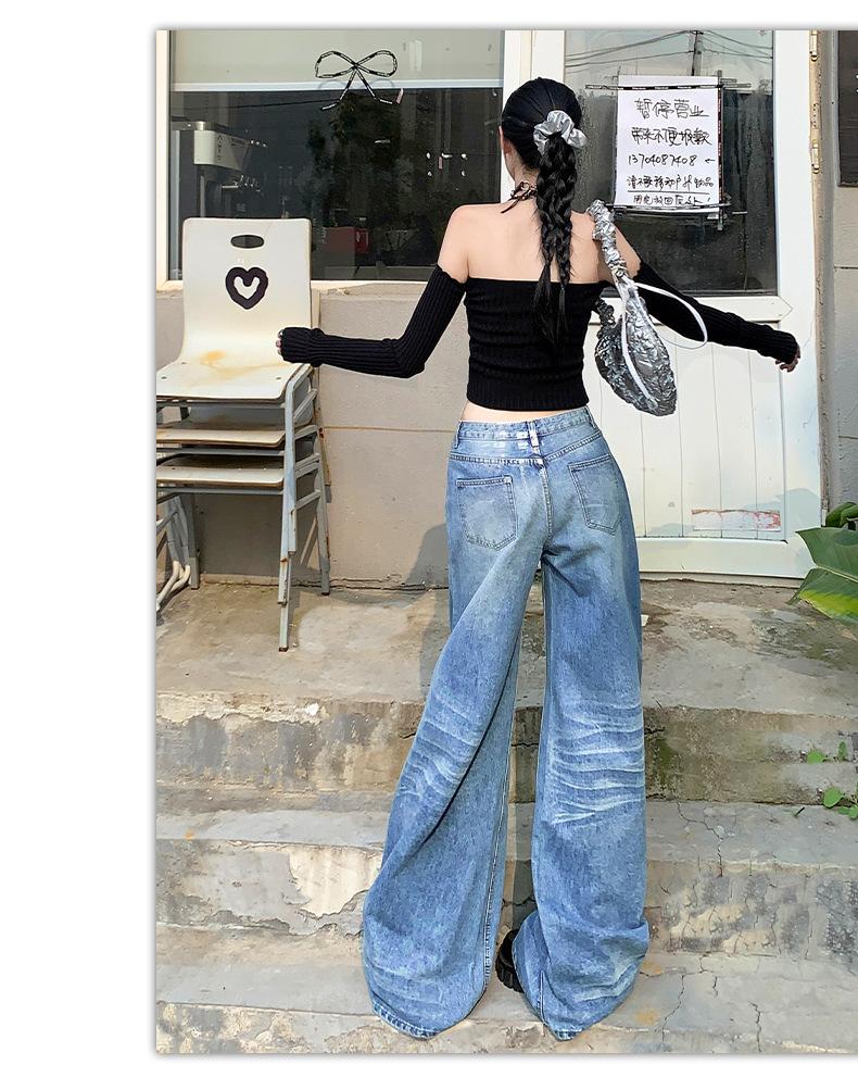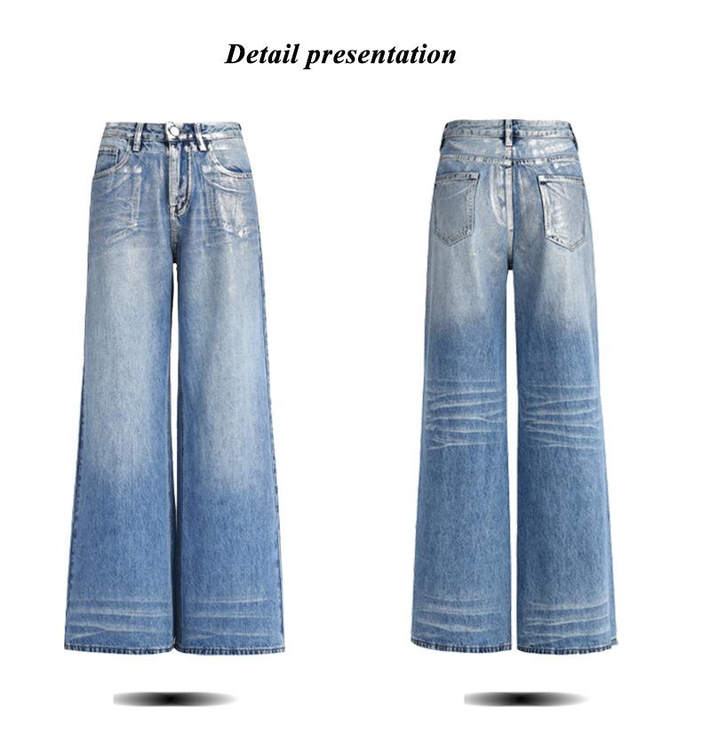 ¡24º día! Tyrande | Retro Americano Textura Plata Caliente Diseño Popular Pantalones Rectos Azules Spandex