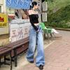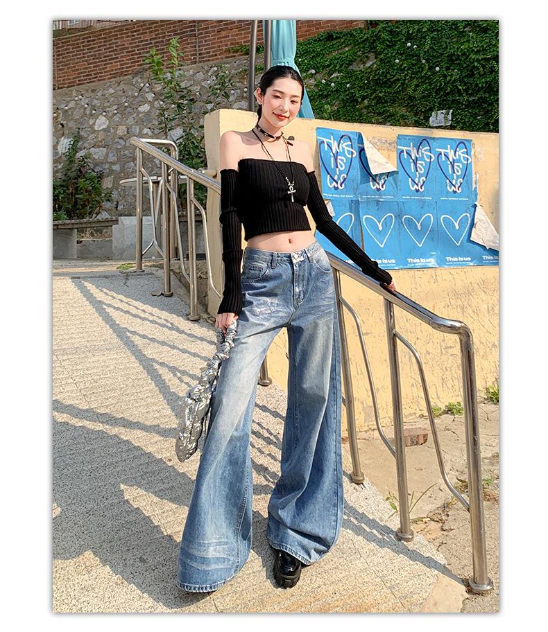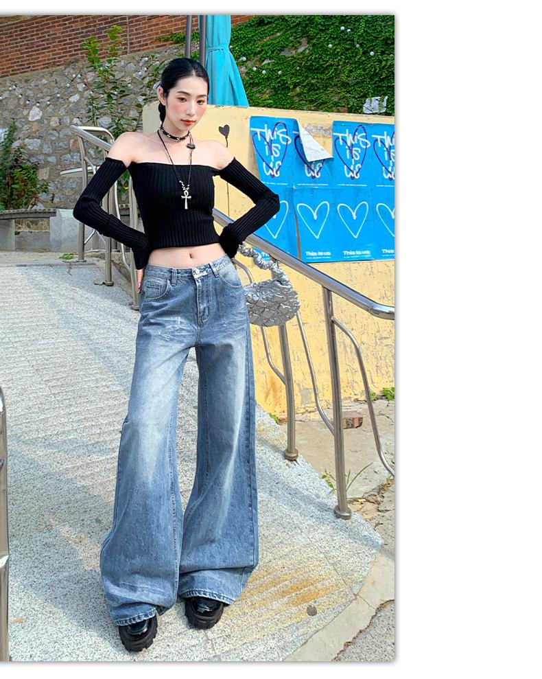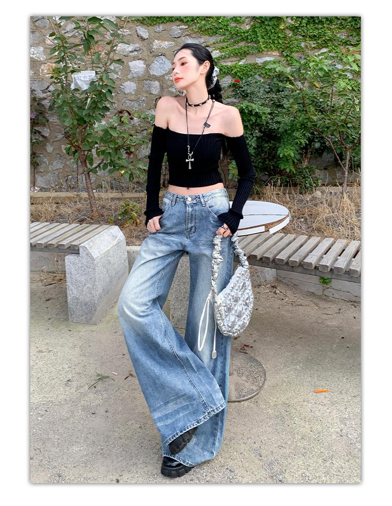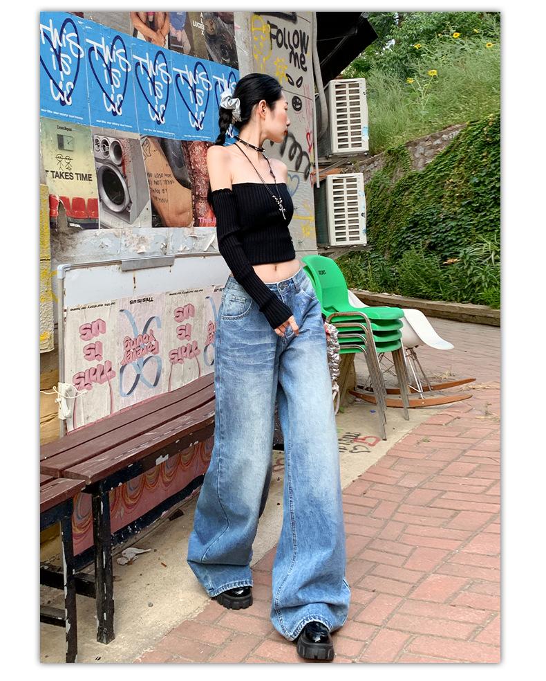 ¡24º día! Tyrande | Retro Americano Textura Plata Caliente Diseño Popular Pantalones Rectos Azules Spandex