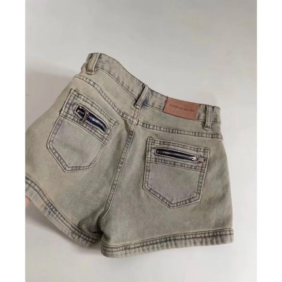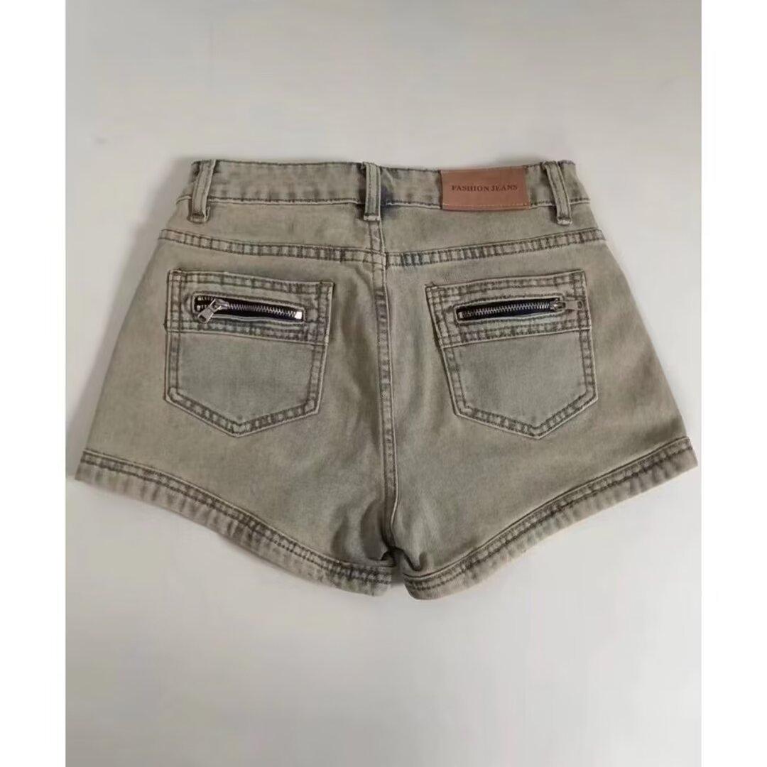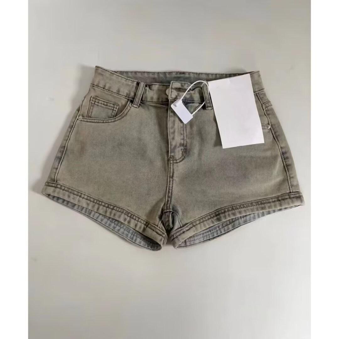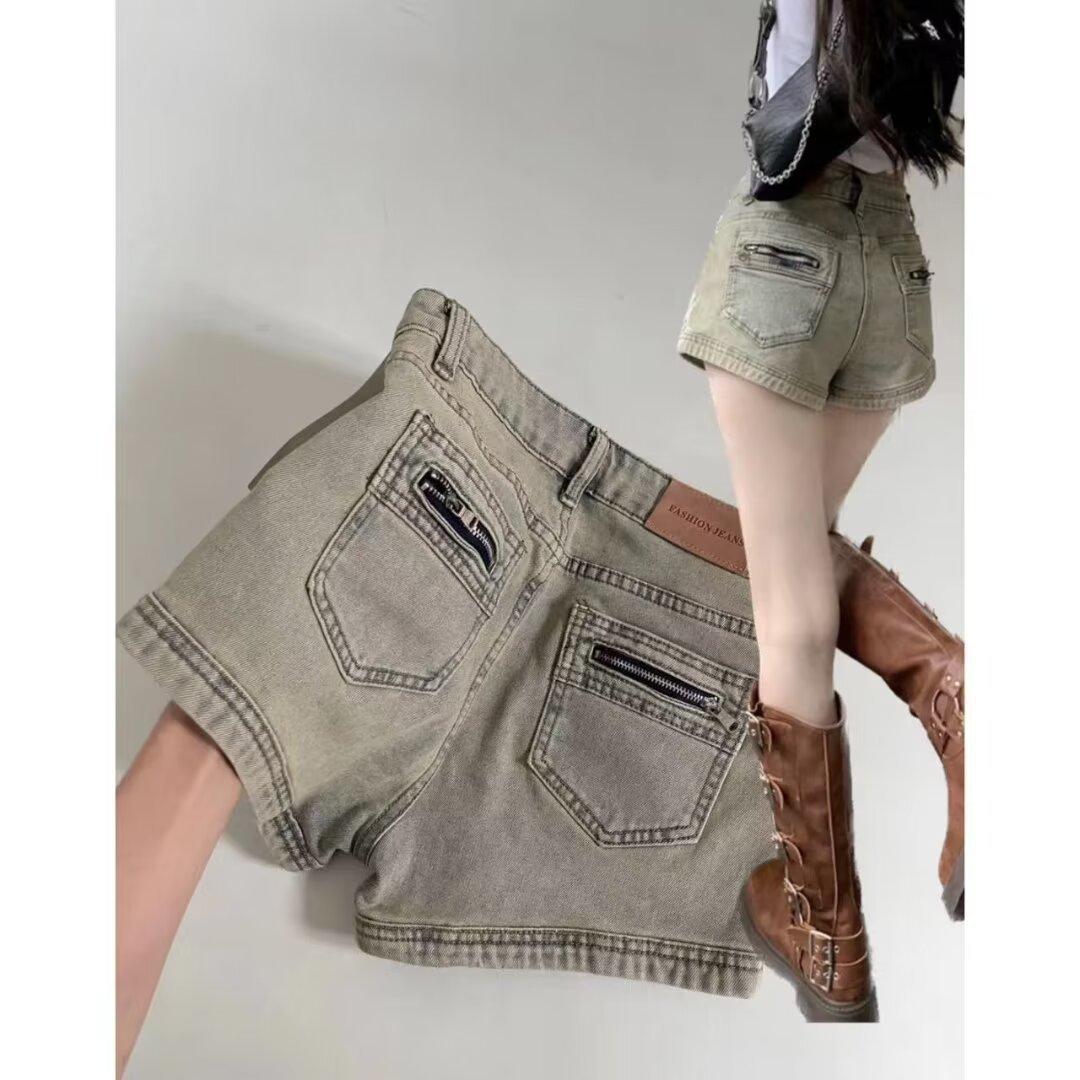Pantalones cortos vaqueros estilo americano para mujer, de cintura alta, elásticos, adelgazantes, rectos, estilo A, para verano de 2024