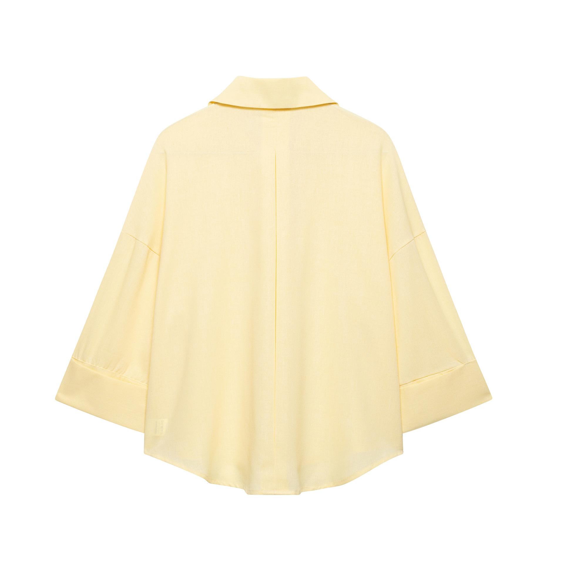 Ropa Europea y Americana Transfronteriza 2025 Nuevo Estilo de Verano Camisa Casual de Solapa de Manga Ancha Simple y a la Moda 3602710