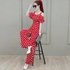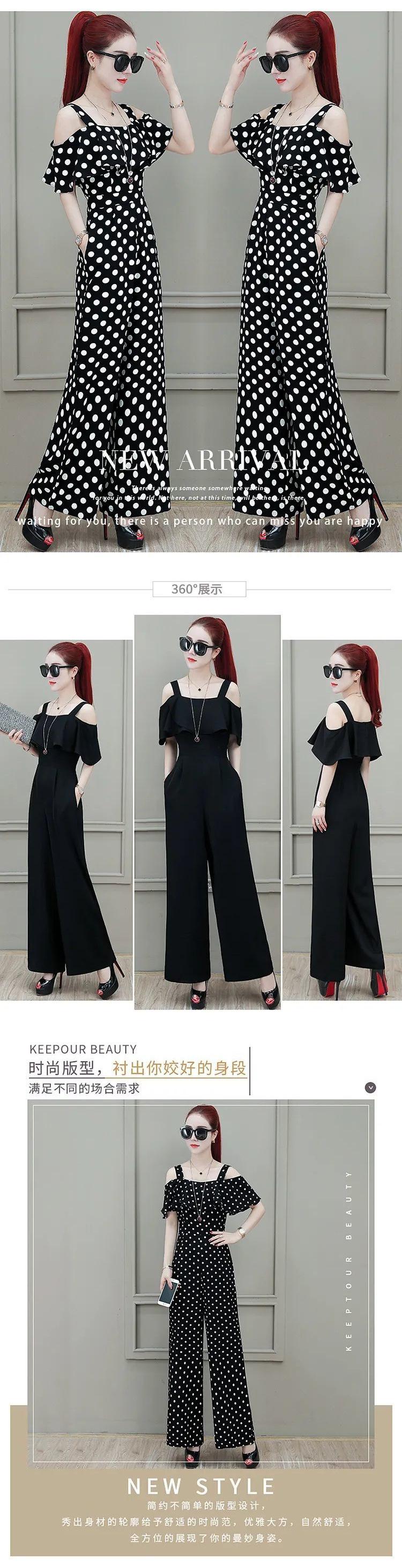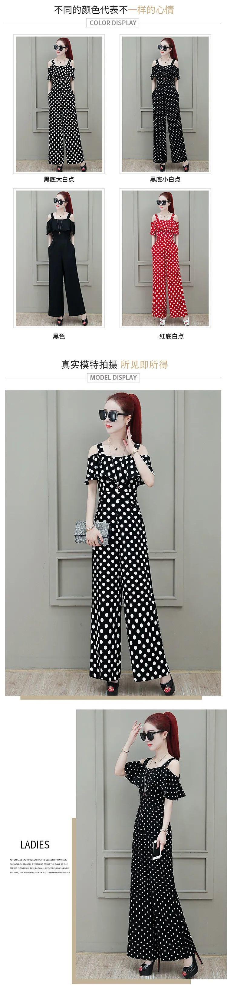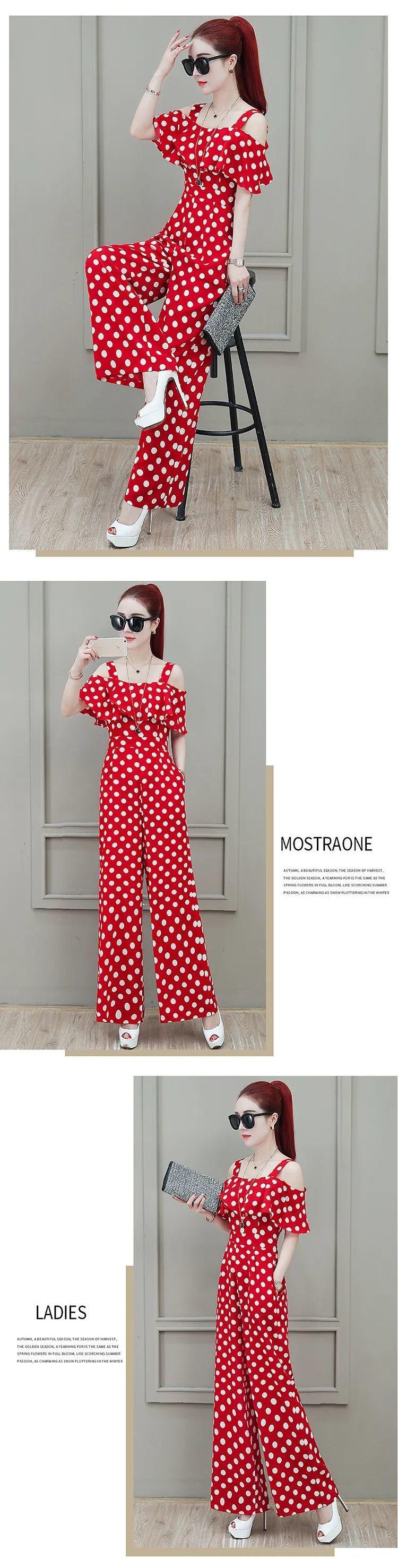 Mono Holgado de Tirantes de Cintura Alta para Mujer Verano 2025 Mono de Chifón con Hombros Descubiertos Pantalones de Lunares de Pierna Ancha