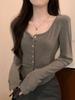 Playera de Manga Larga Entallada con Cintura Ceñida 2024 Cárdigan de Otoño Top de Moda Nicho Sexy Ins