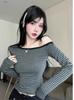 2024 Nuevo Diseño Sensual Hombro Descubierto Rayado Manga Larga Camiseta Otoño Temprano Nicho Ajustado Adelgazante Hombro Top Ins