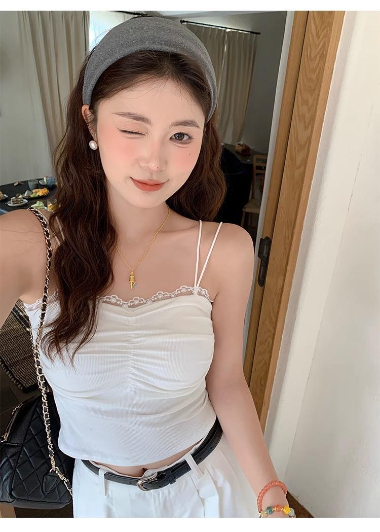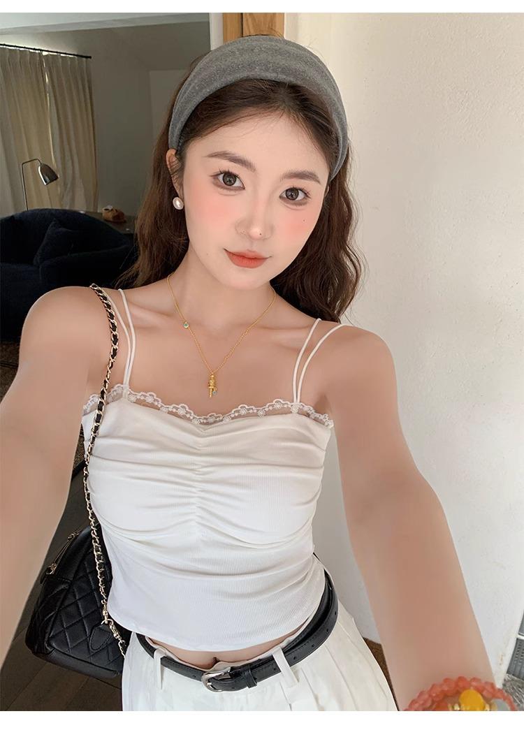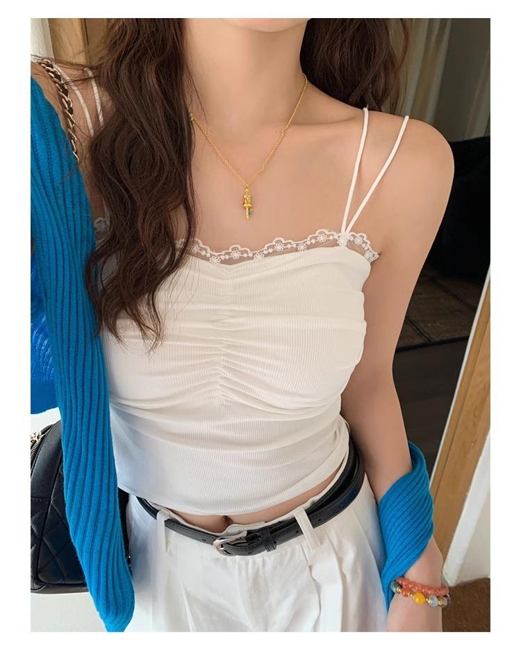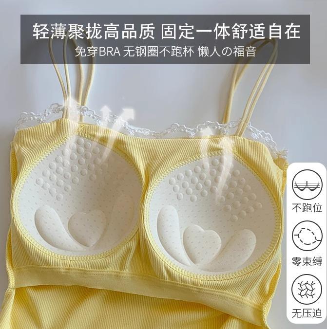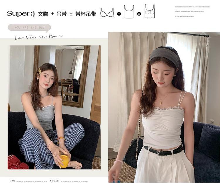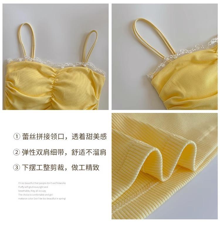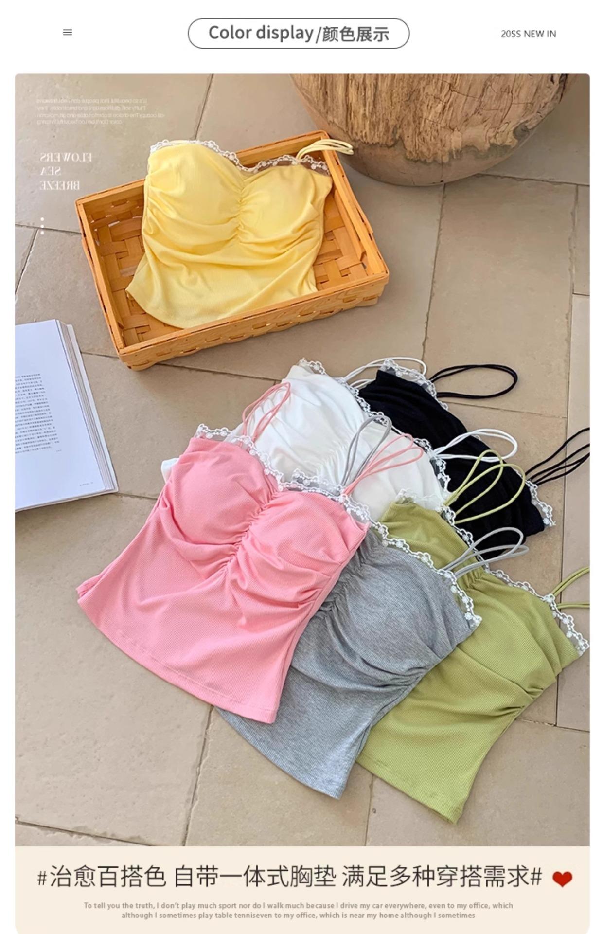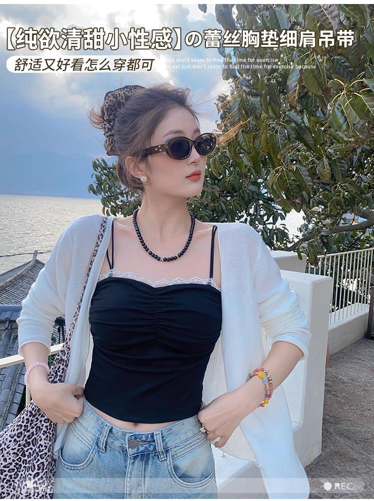 Camisola de Encaje con Almohadillas para el Busto para Mujer, Nuevo Estilo de Verano 2025, Hermosa Prenda Interior, Top Exterior sin Mangas
