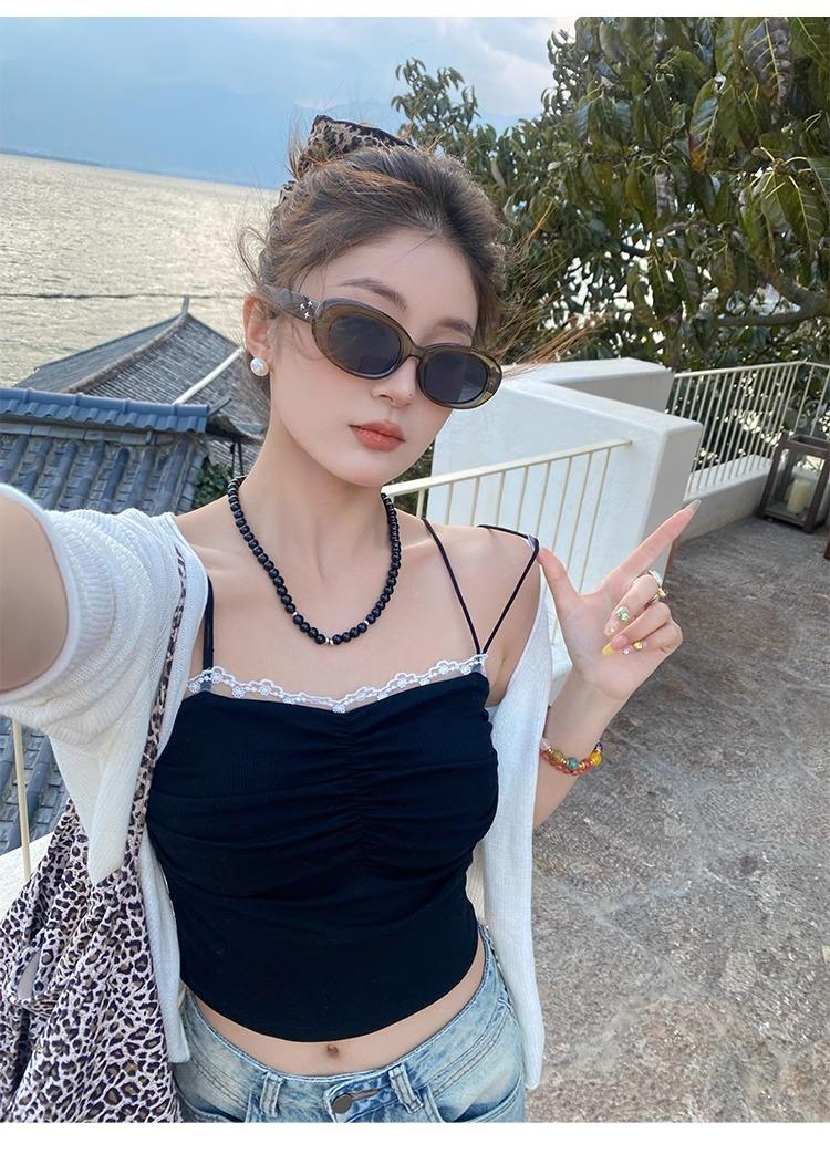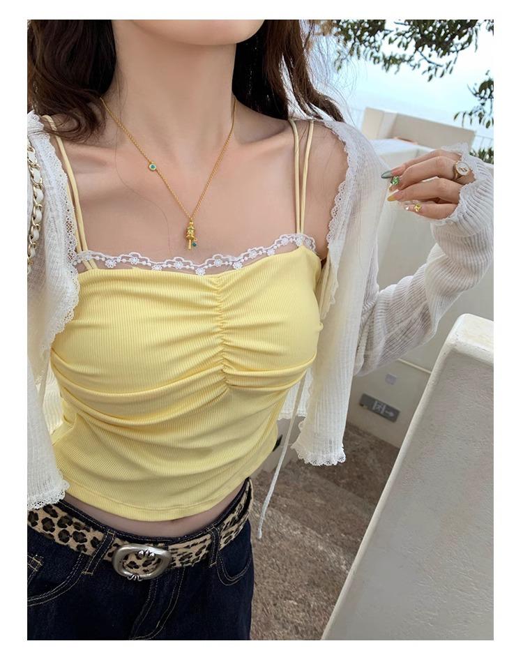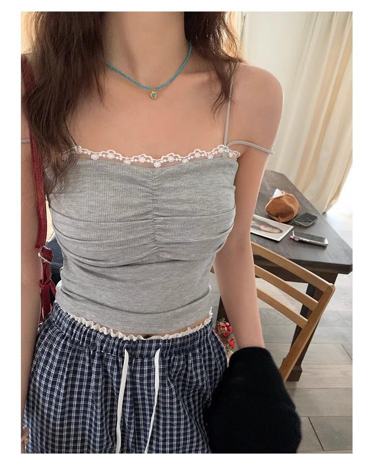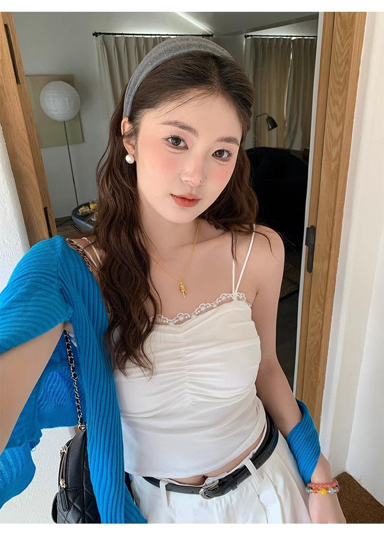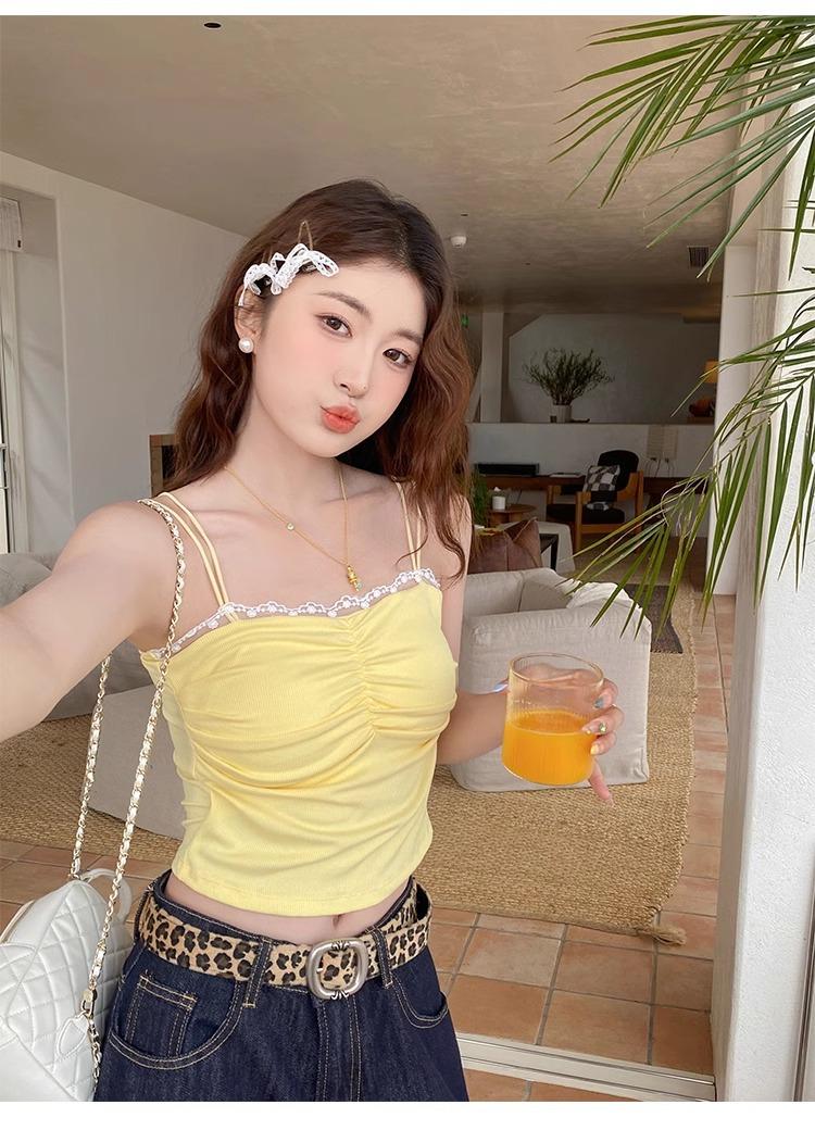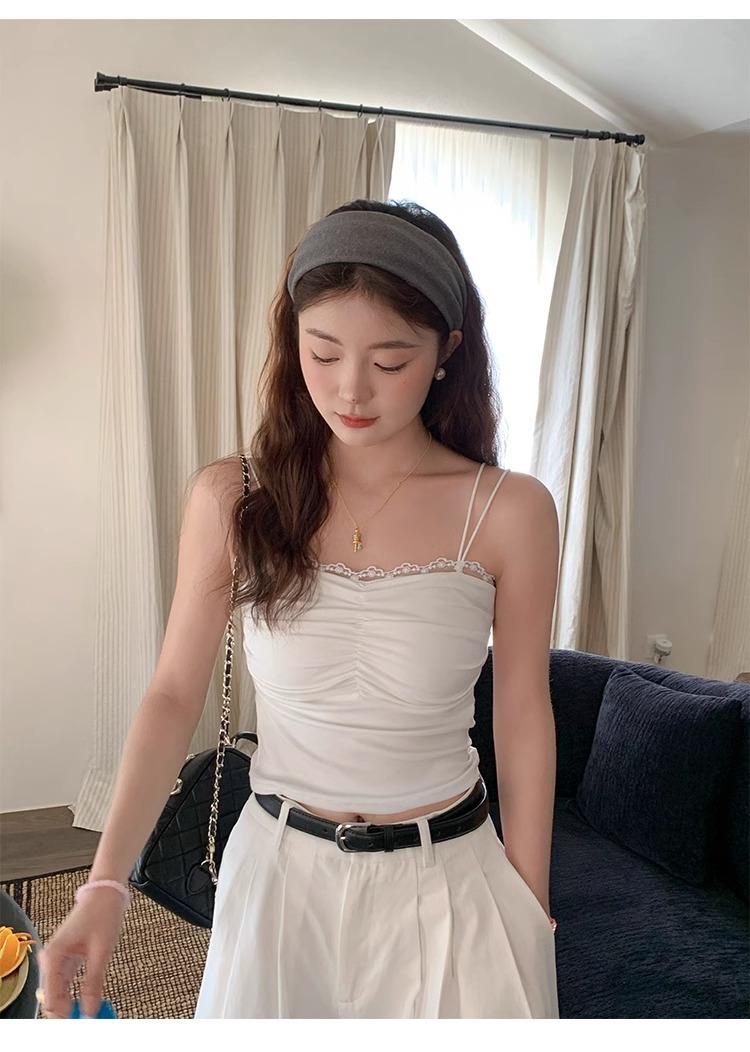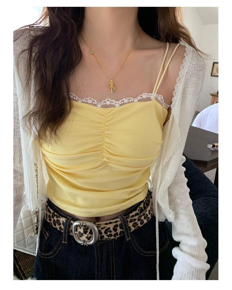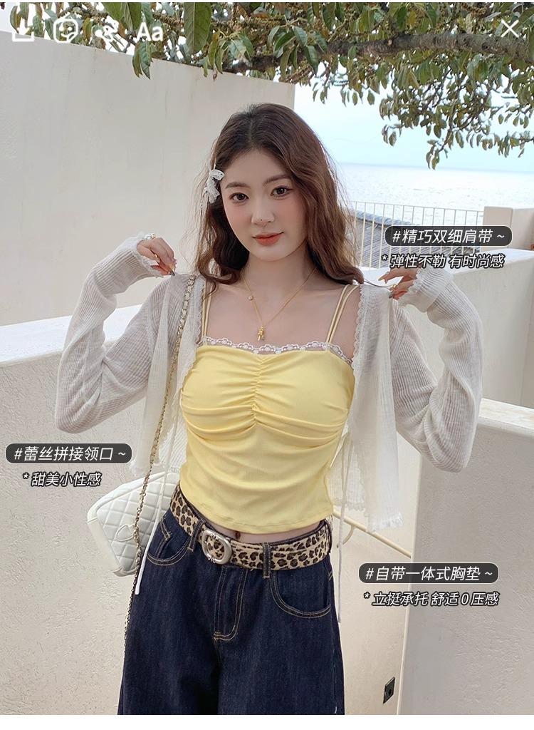 Camisola de Encaje con Almohadillas para el Busto para Mujer, Nuevo Estilo de Verano 2025, Hermosa Prenda Interior, Top Exterior sin Mangas