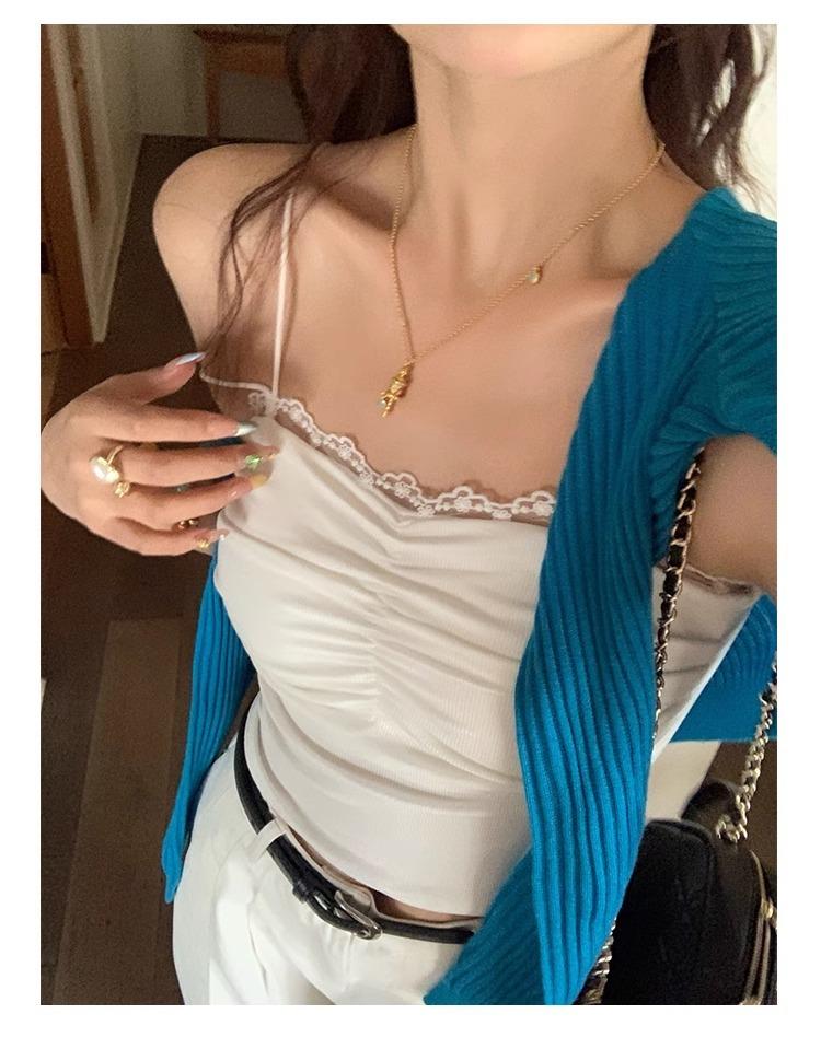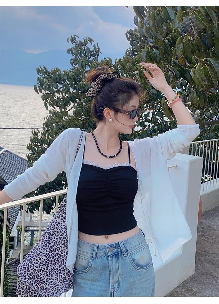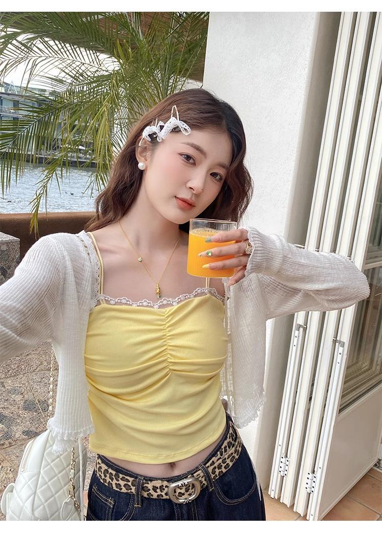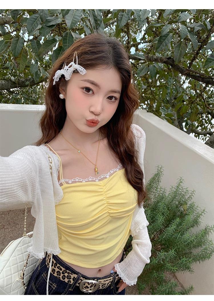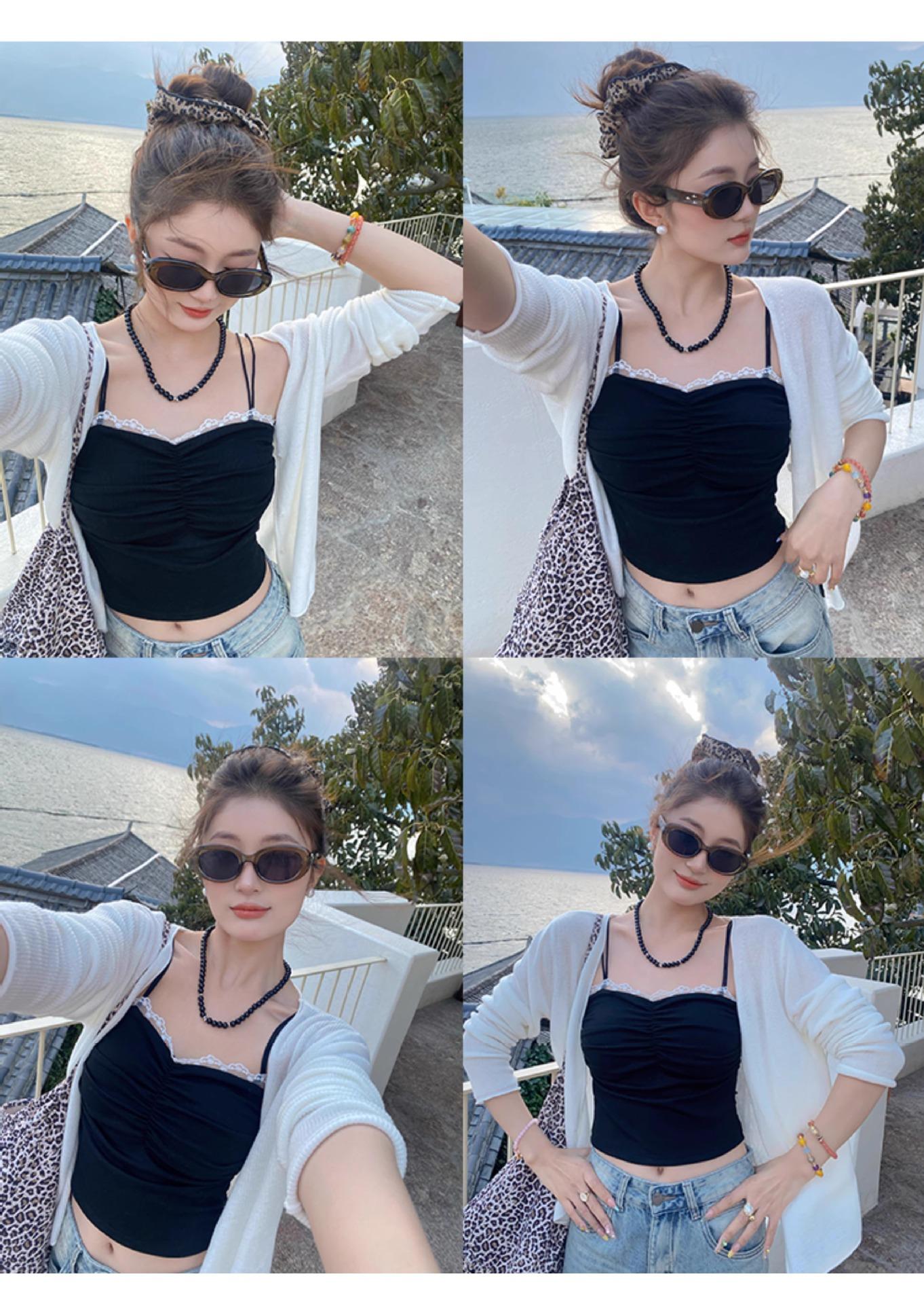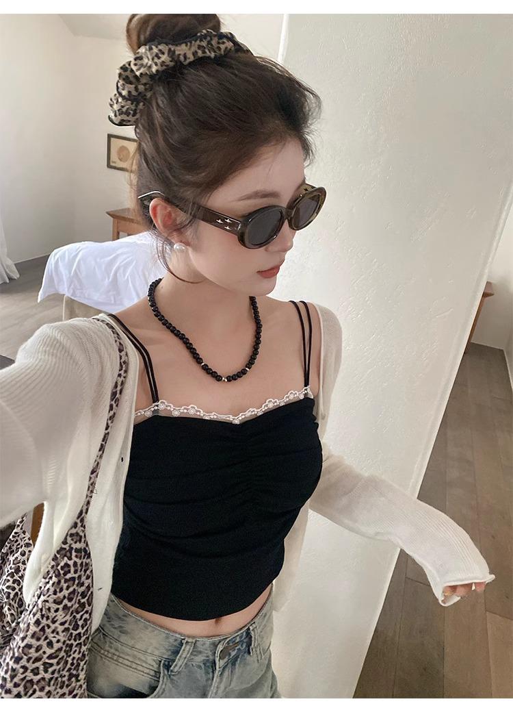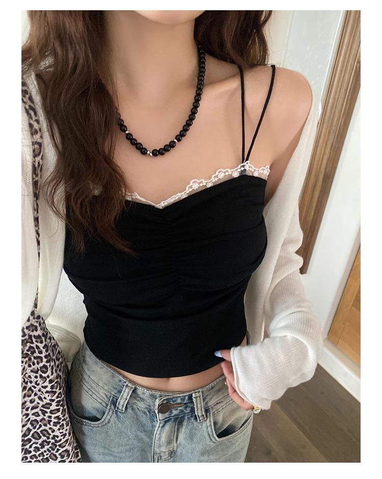 Camisola de Encaje con Almohadillas para el Busto para Mujer, Nuevo Estilo de Verano 2025, Hermosa Prenda Interior, Top Exterior sin Mangas