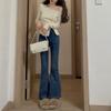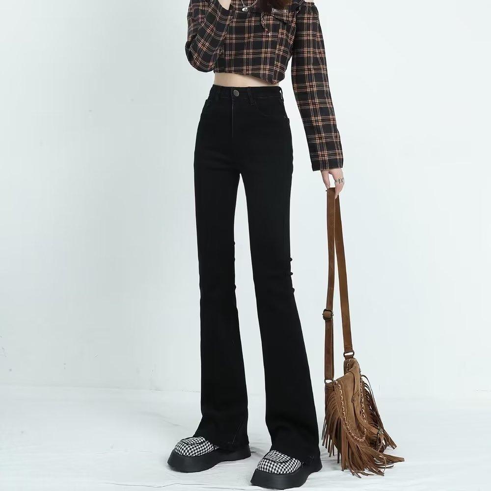 Retro Azul Micro La Jeans Mujer Primavera 2024 Negro Elástico Cintura Alta Adelgazante Ajustado Pantalón Recto