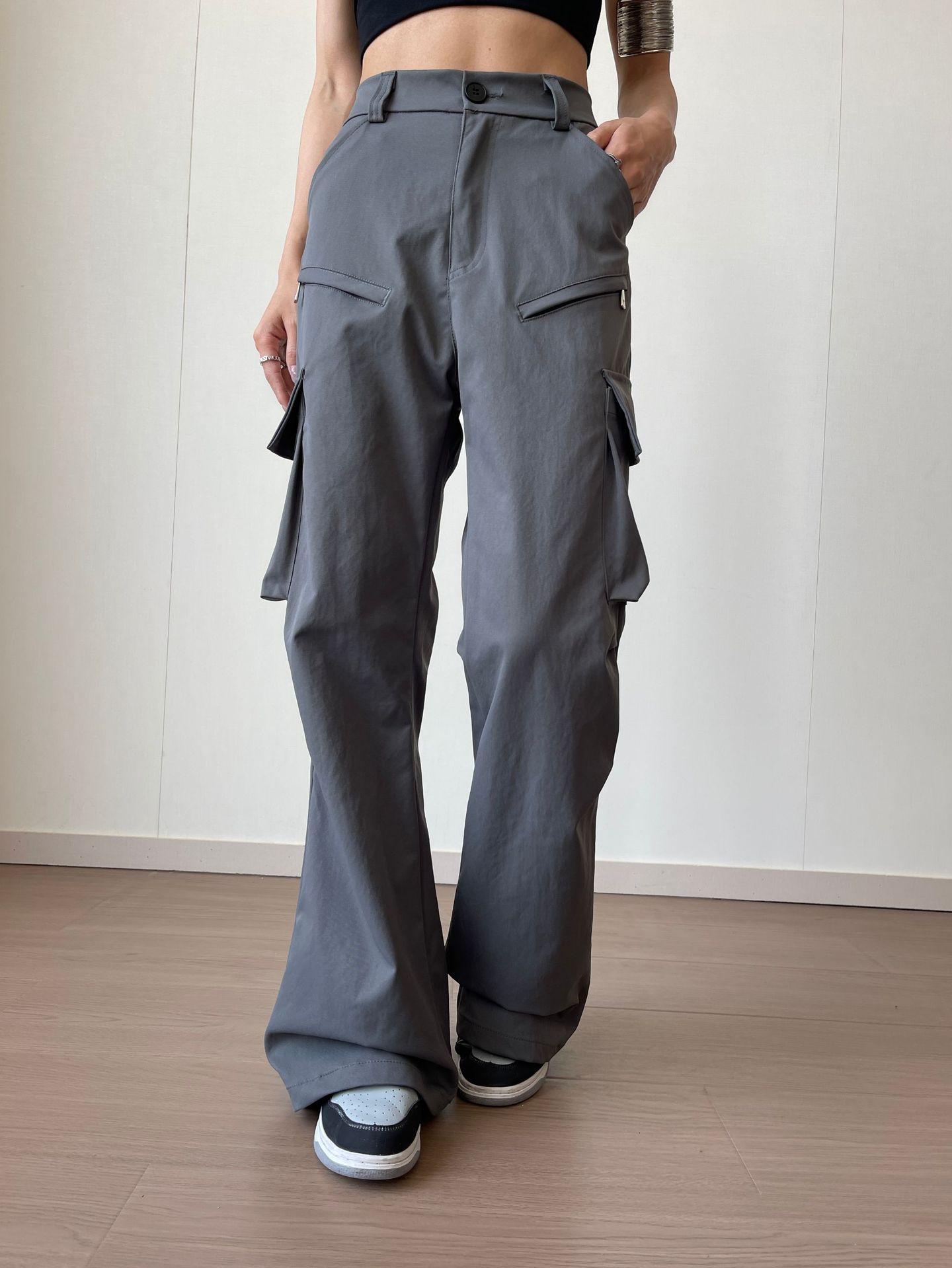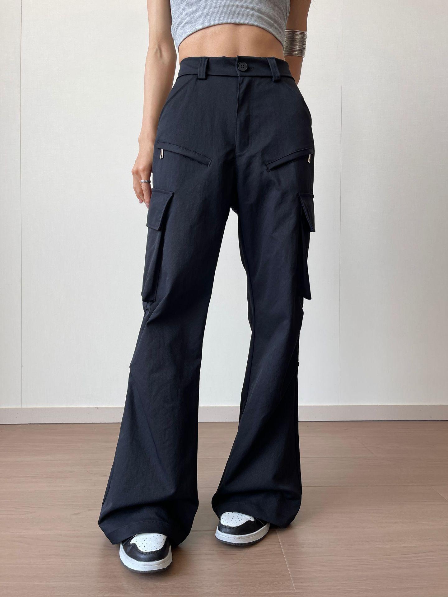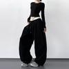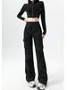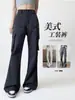 Pantalones Cargo Acampanados Negros para Mujer, Nuevo Estilo Primavera y Otoño 2025, Americano Retro Outdoor Sueltos Pierna Ancha Adelgazantes Casuales