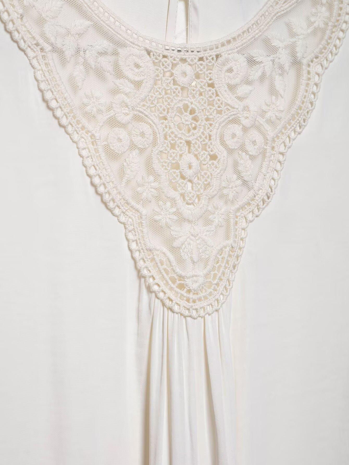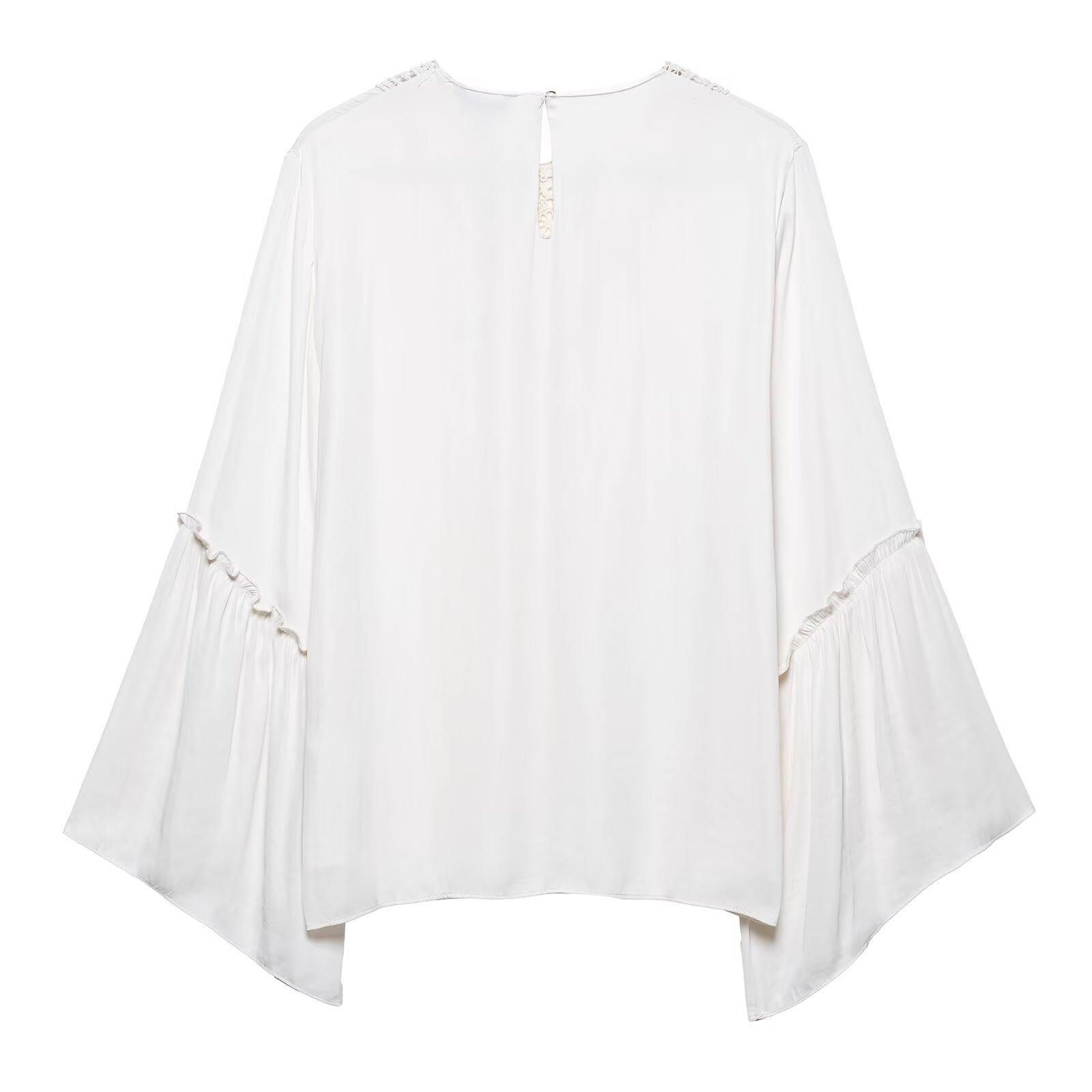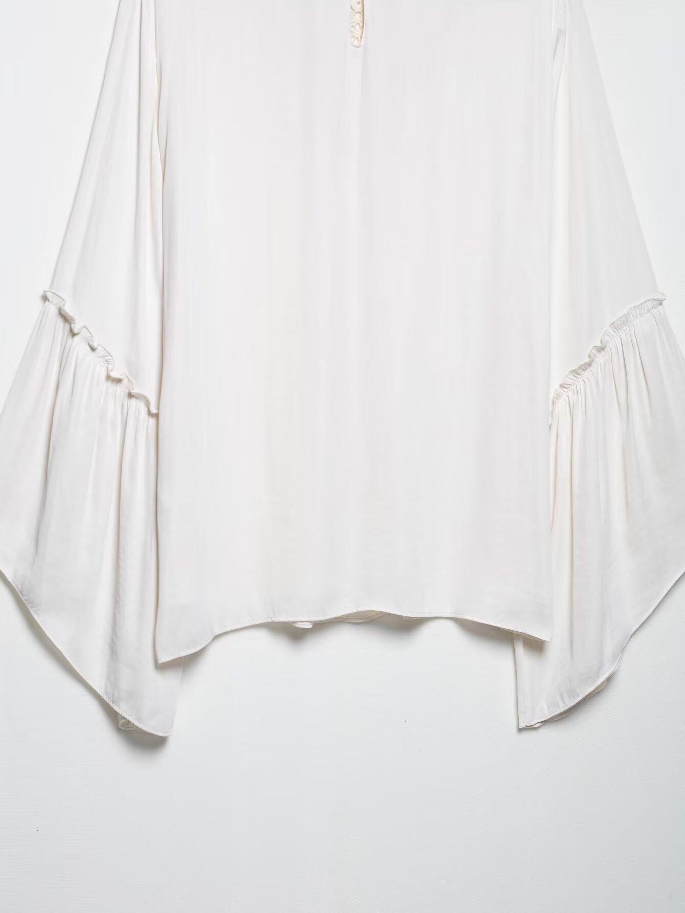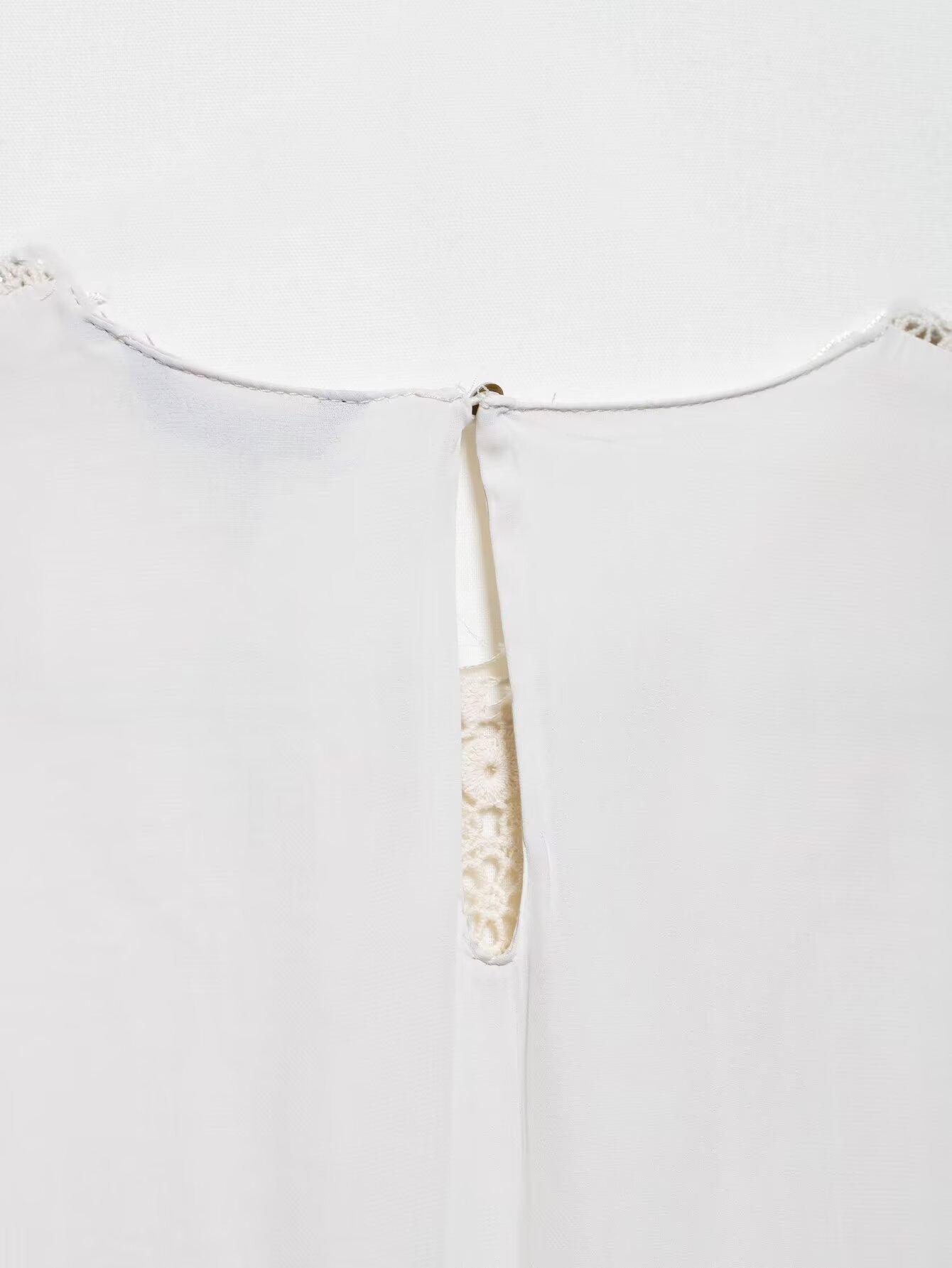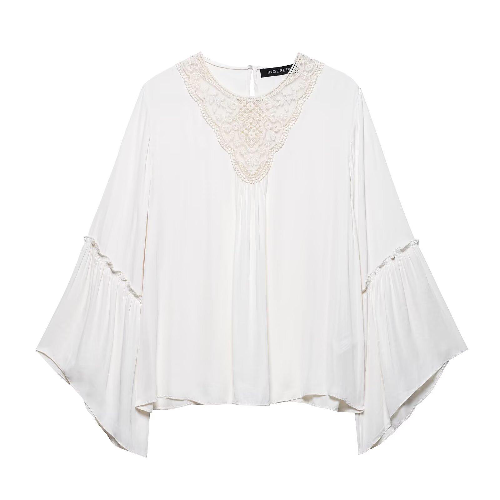 Ropa de Mujer de Exportación Transfronteriza Primavera y Verano 2025 Estilo Europeo y Americano Cuello en V Encaje Empalmado Camisa Plisada Drapeada para Mujer D6248520